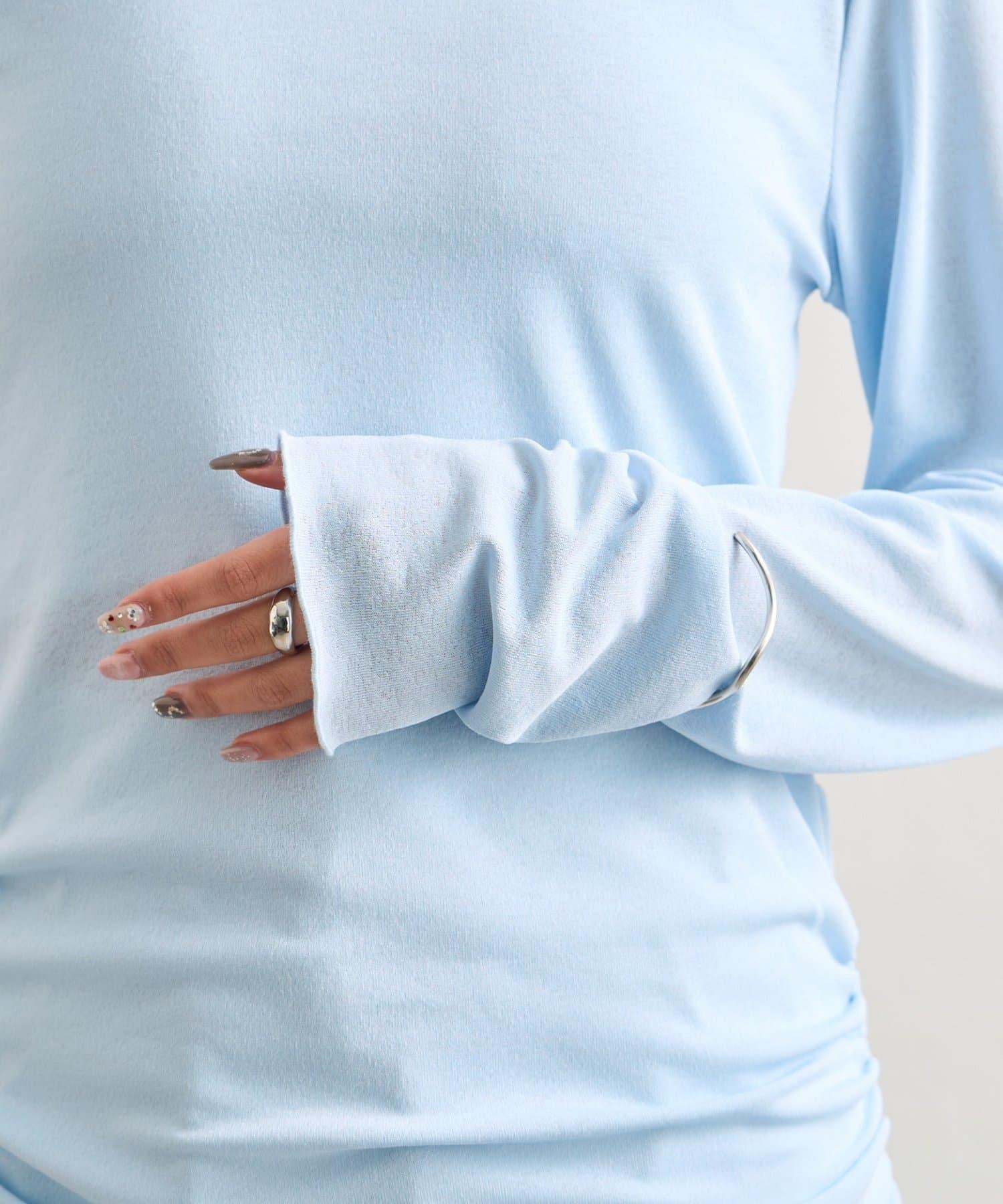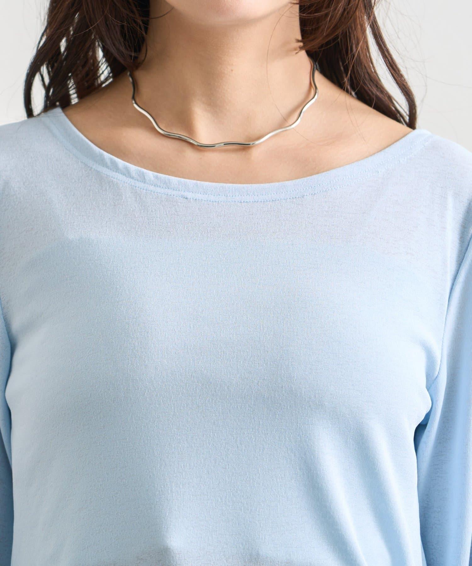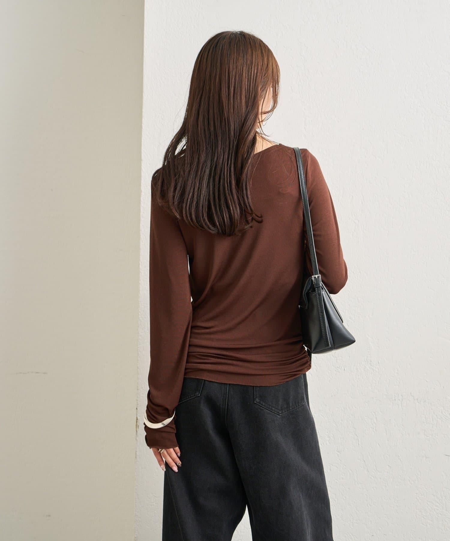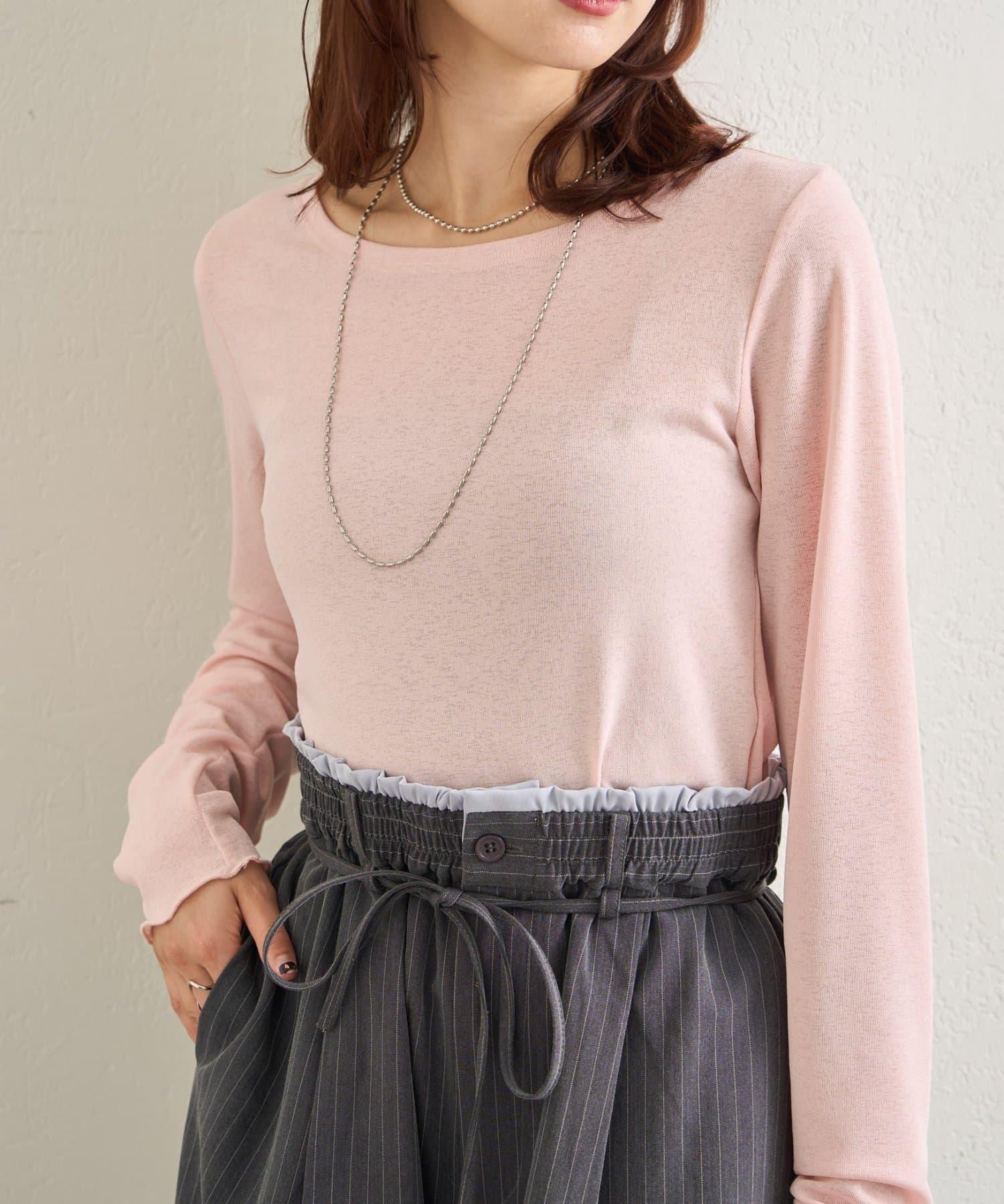 下襬褶皺透視長袖T恤