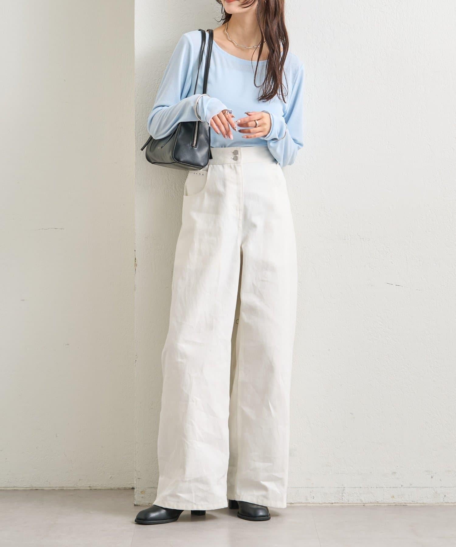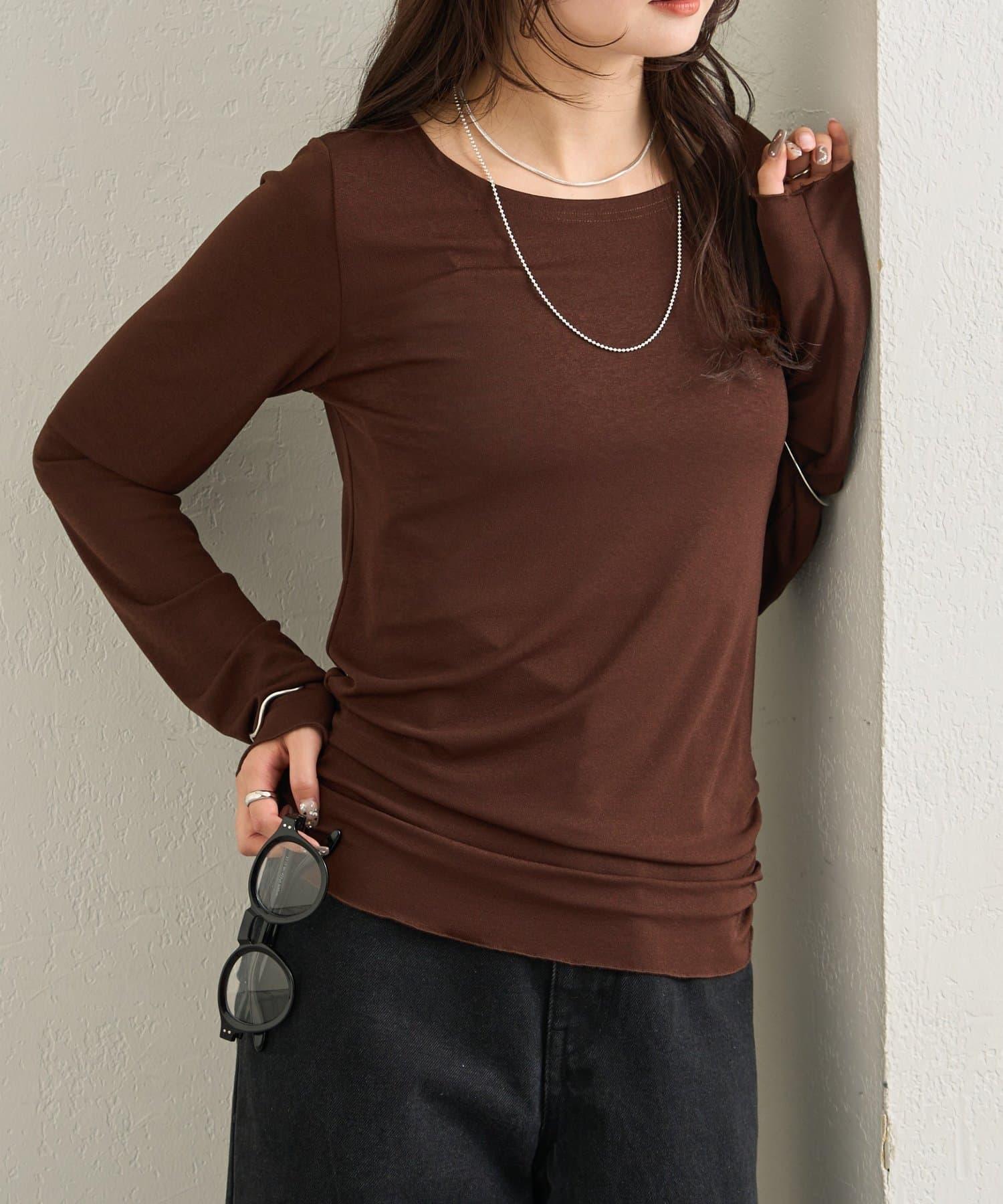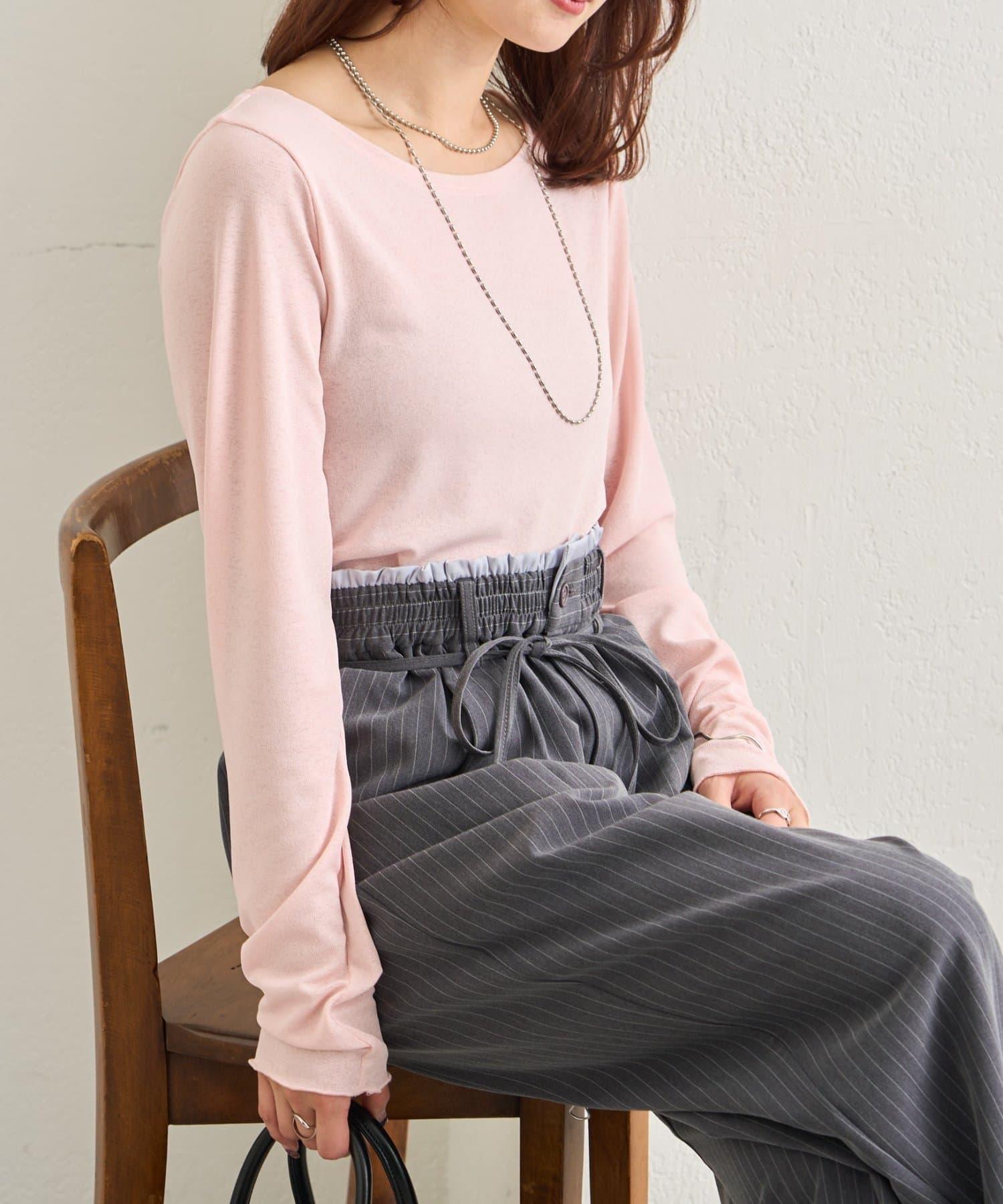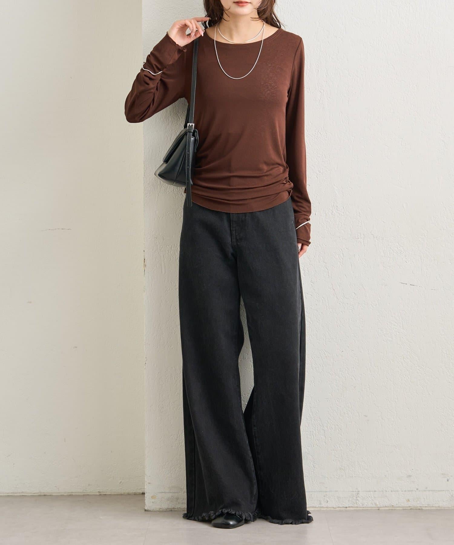 下襬褶皺透視長袖T恤