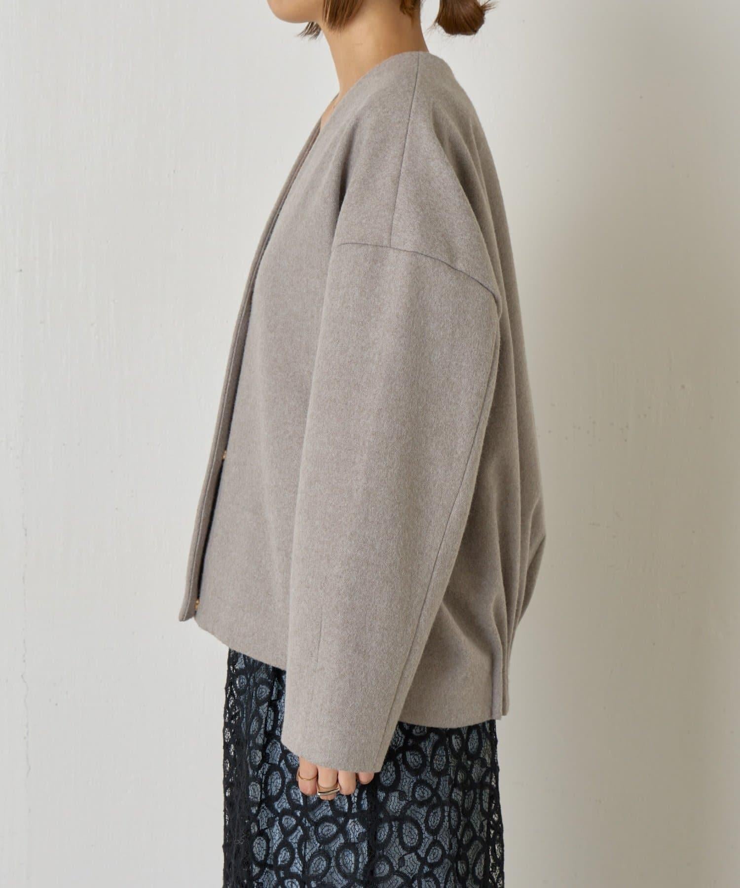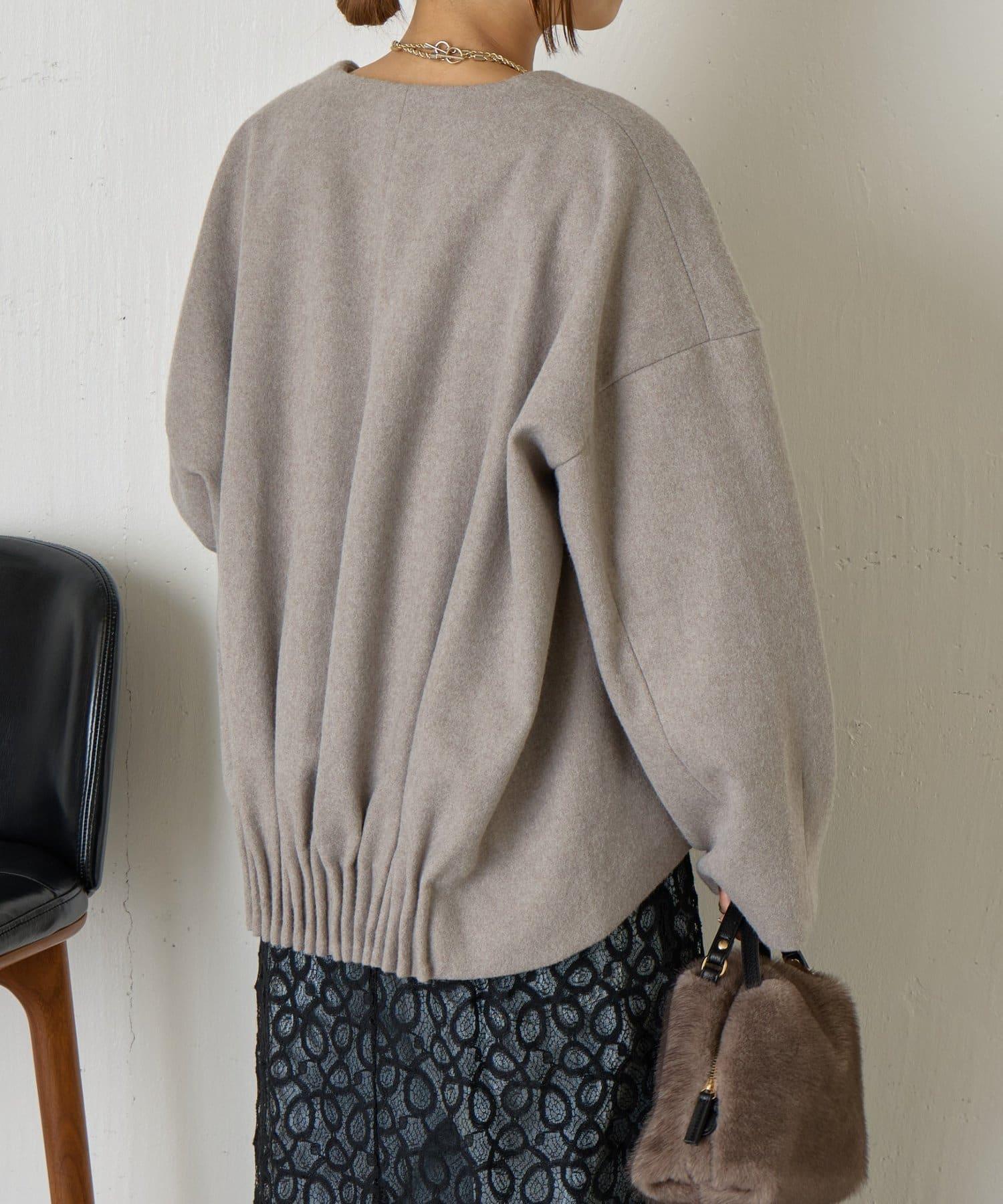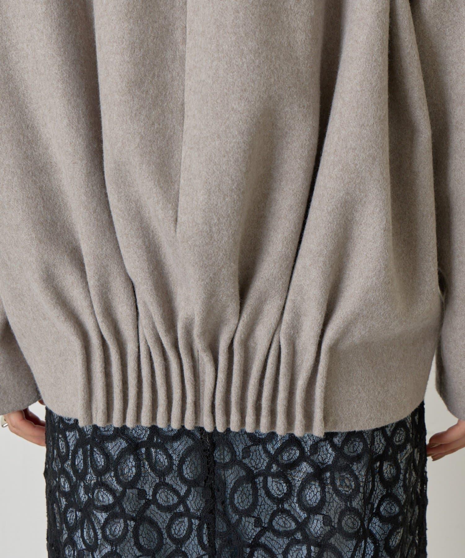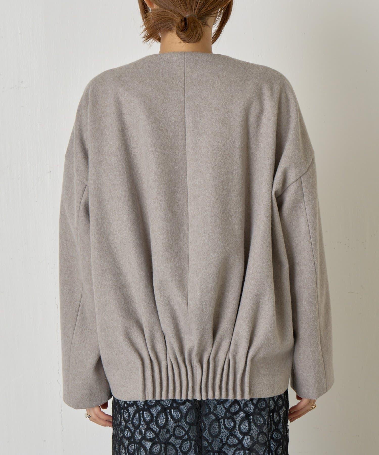 短款夾克,後襬採用褶襉設計,顯得乾淨利落。
