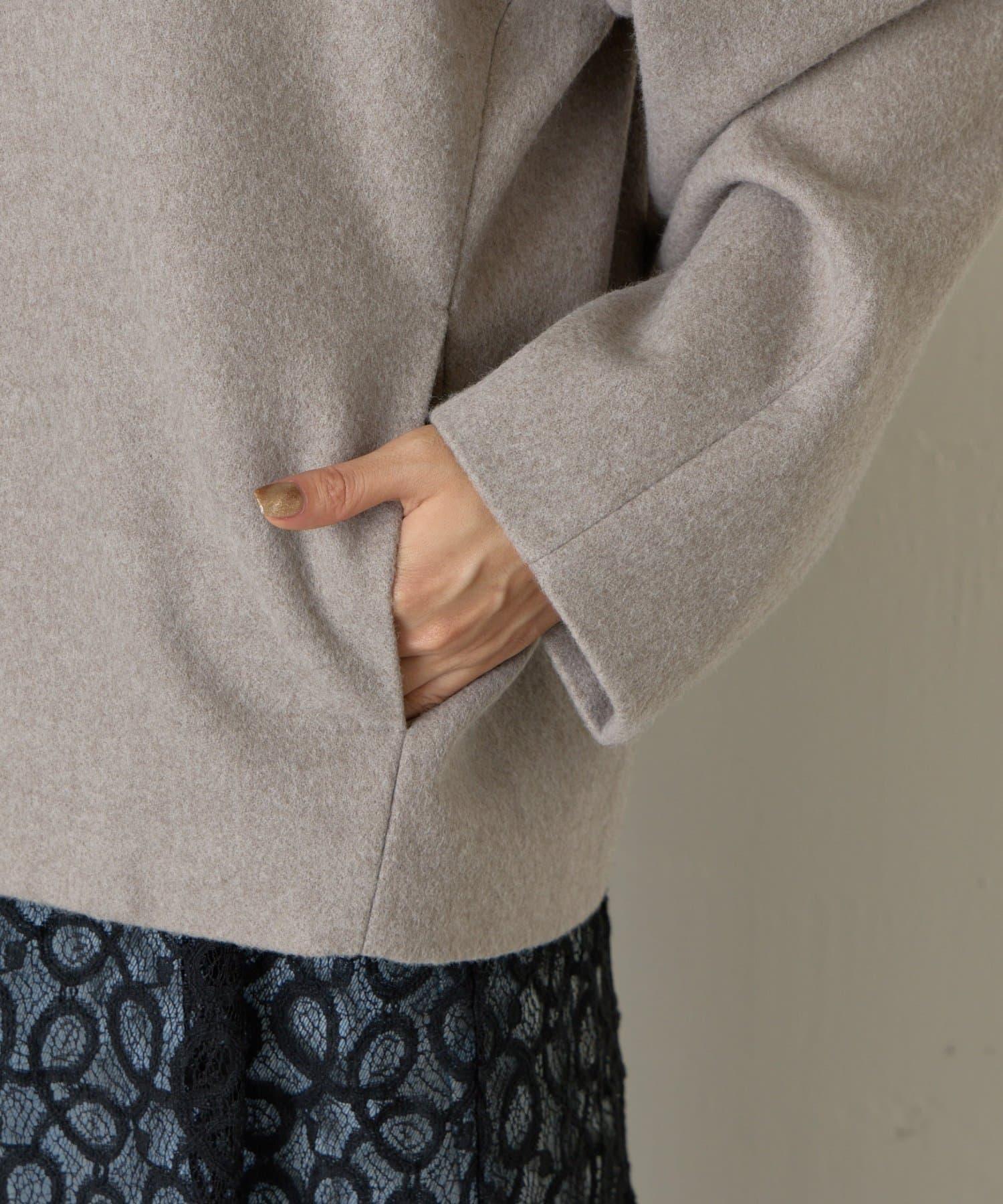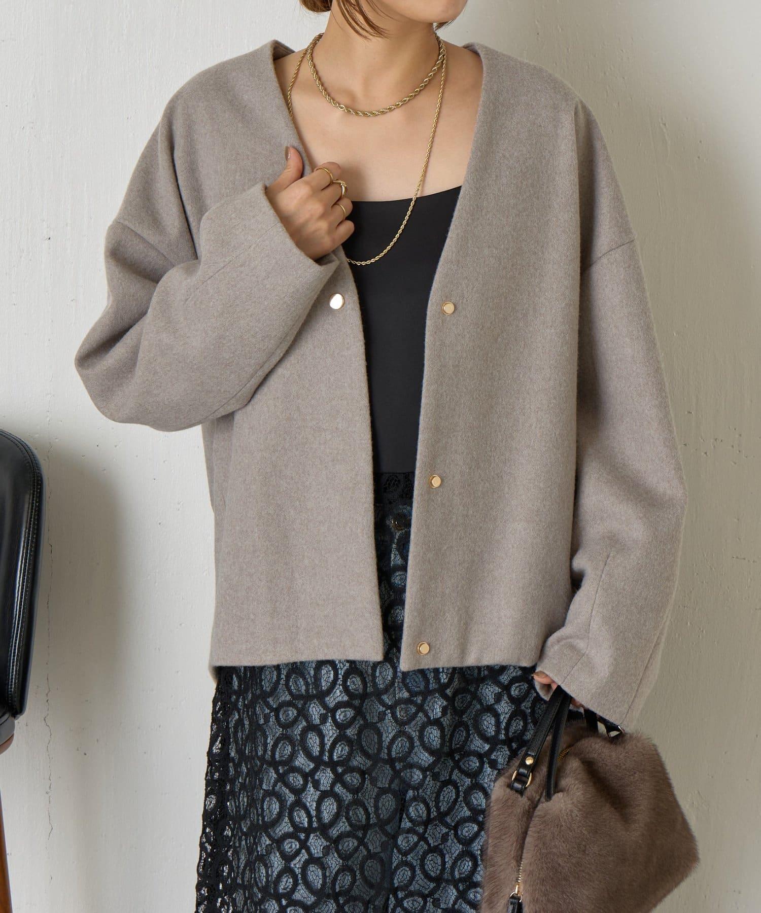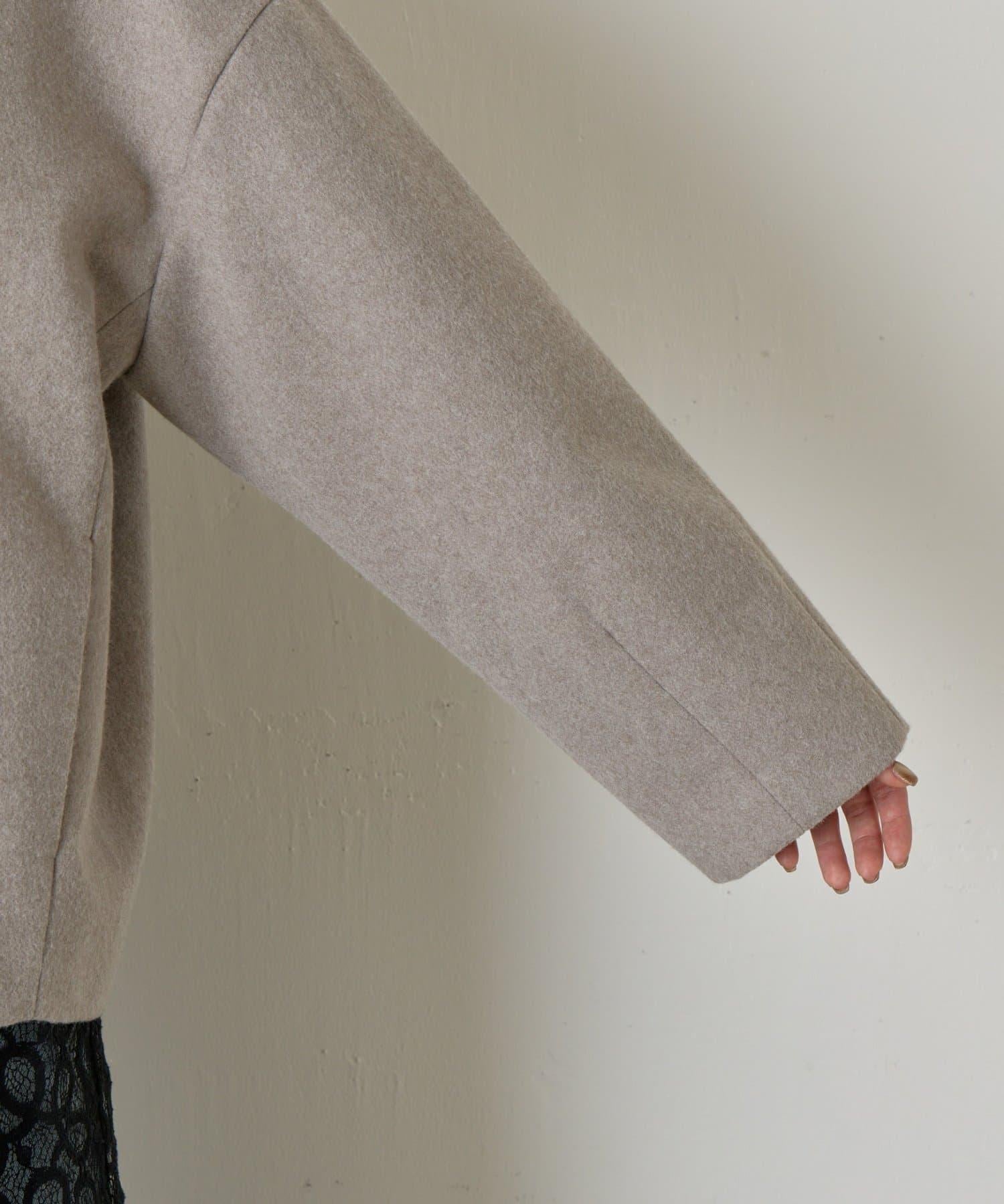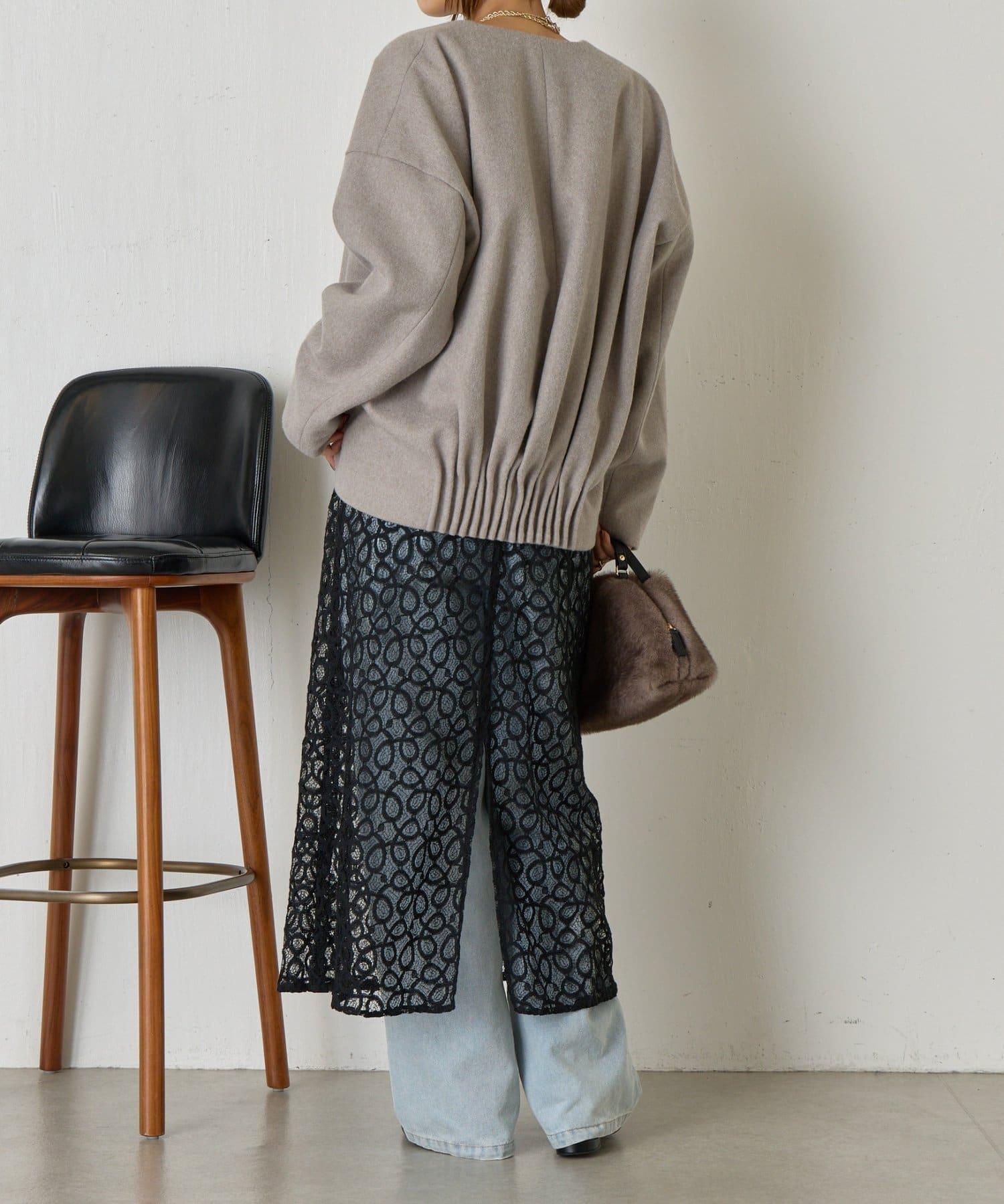 短款夾克,後襬採用褶襉設計,顯得乾淨利落。