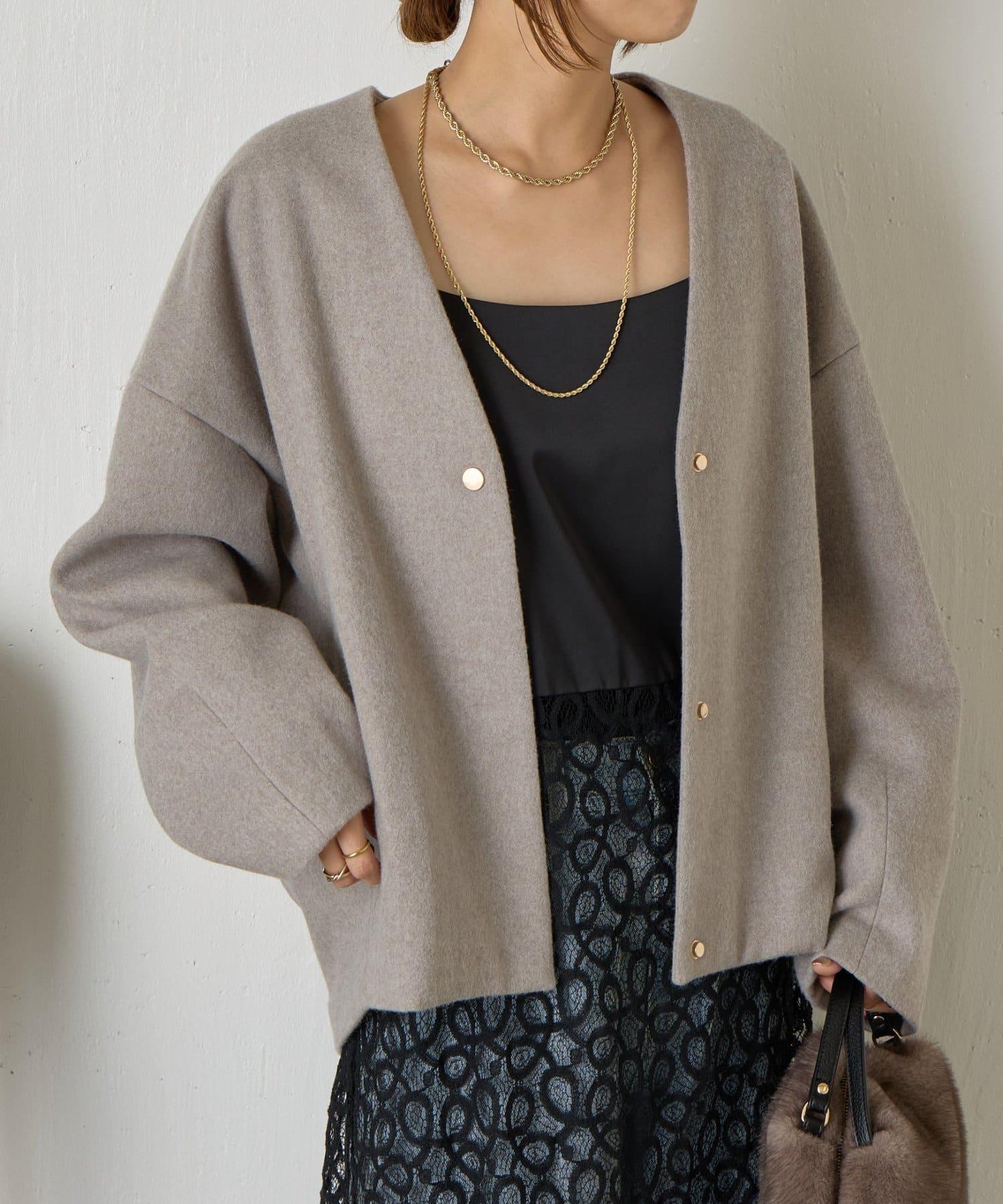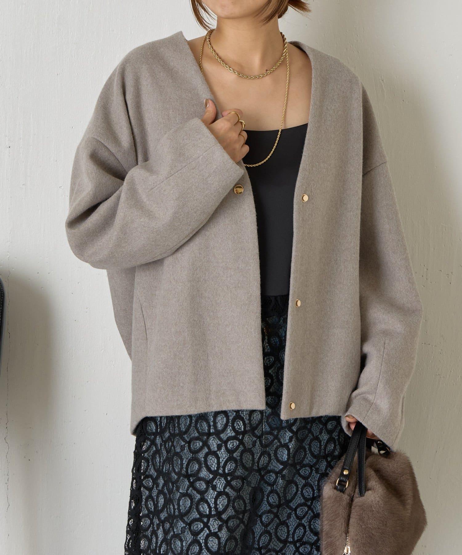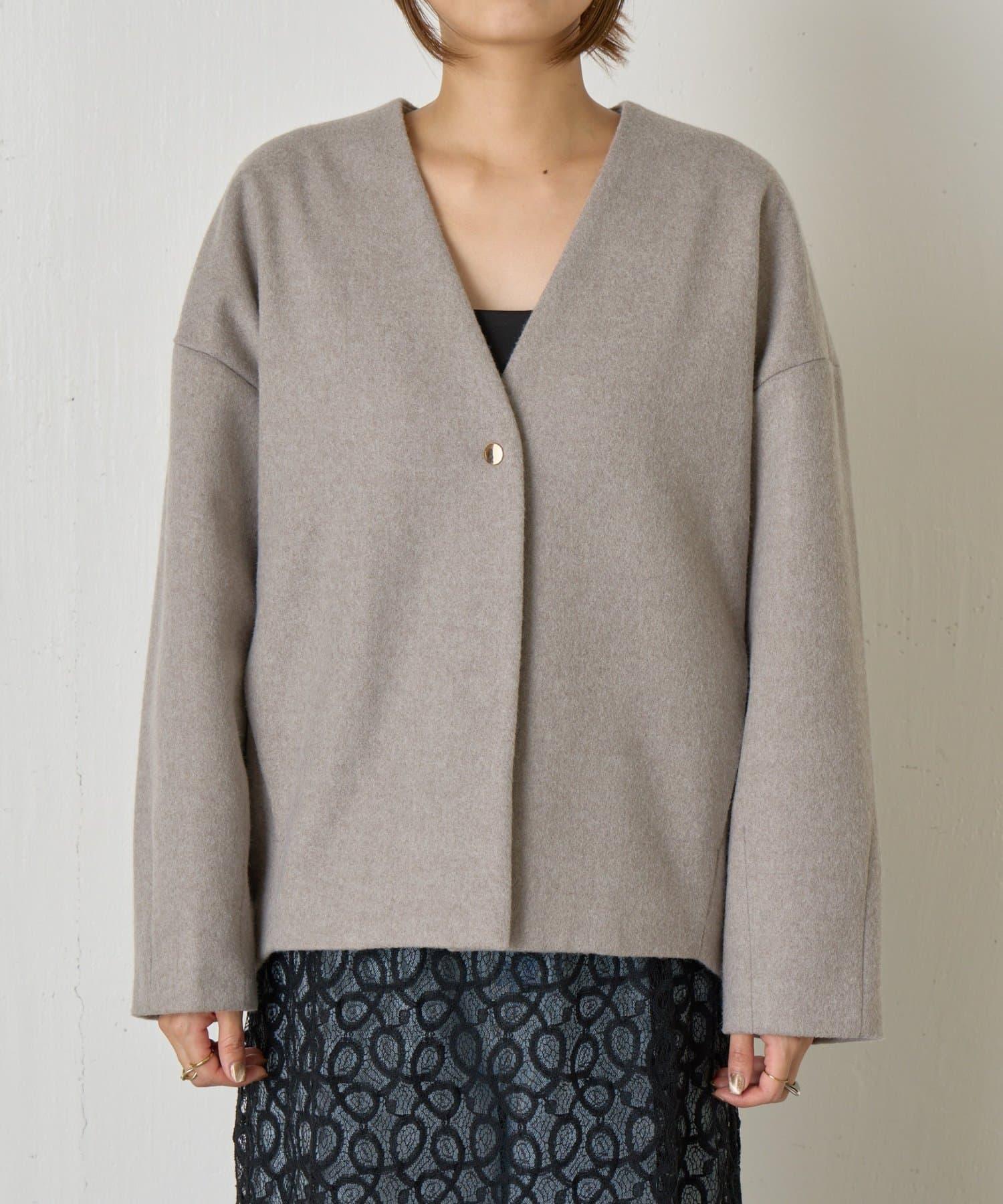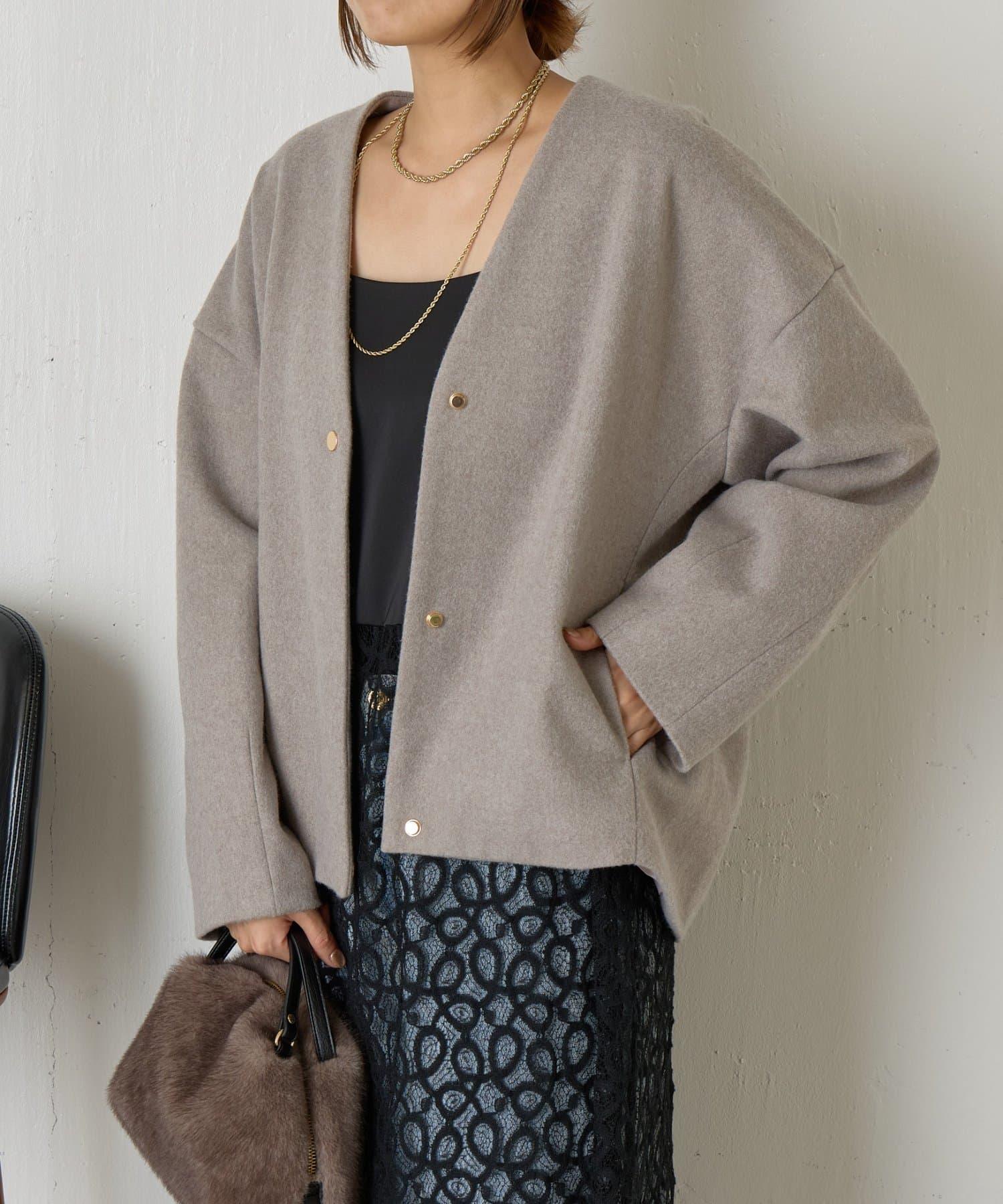 短款夾克,後襬採用褶襉設計,顯得乾淨利落。