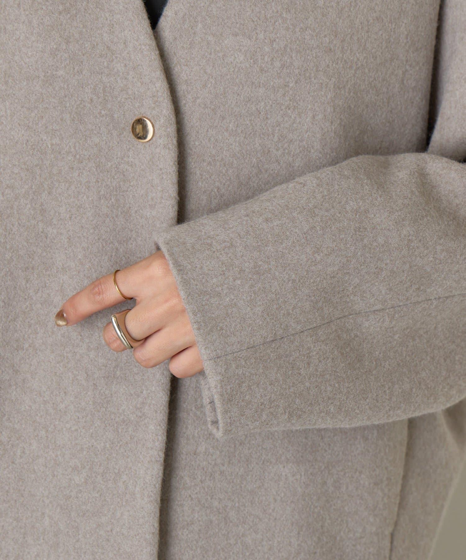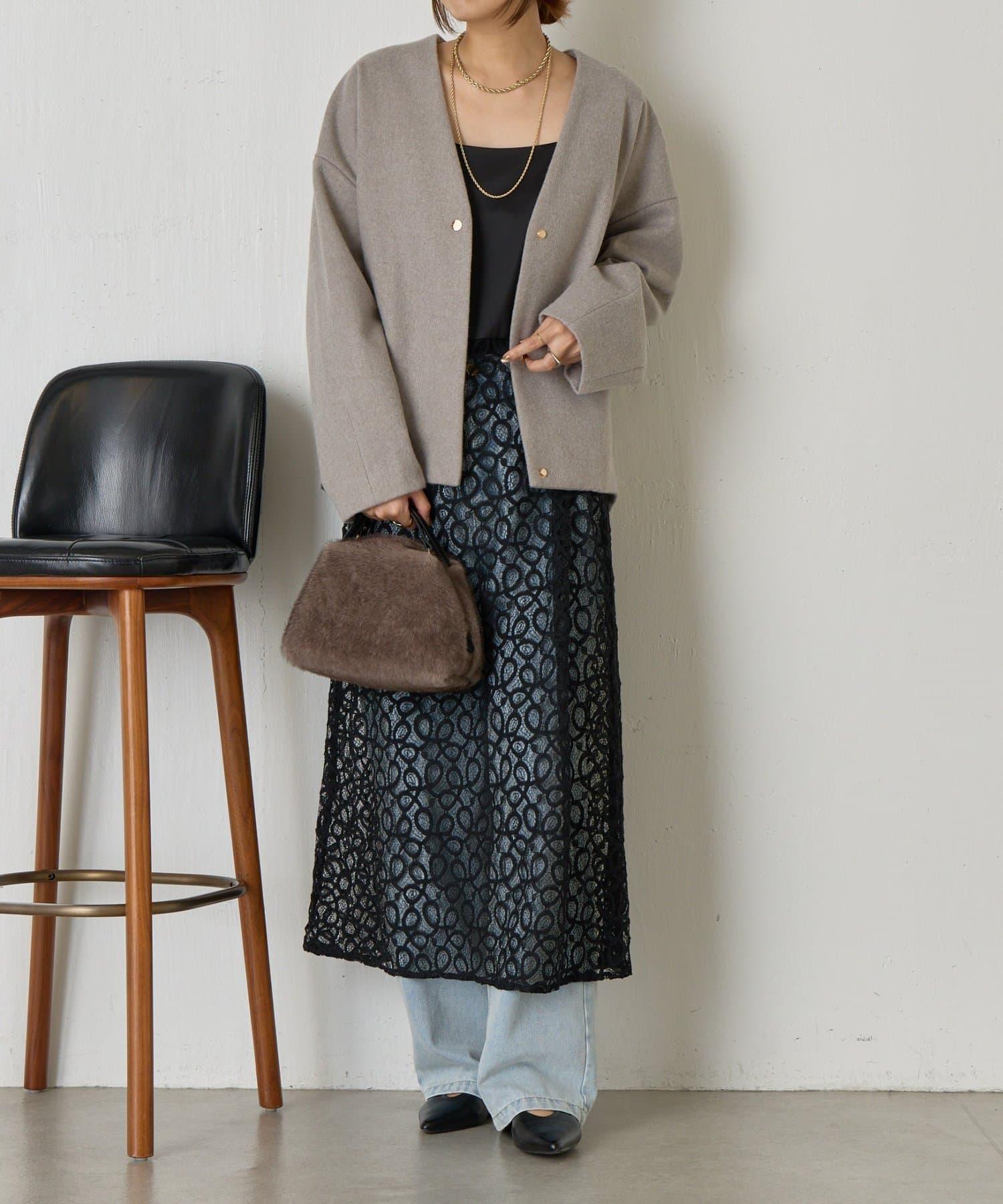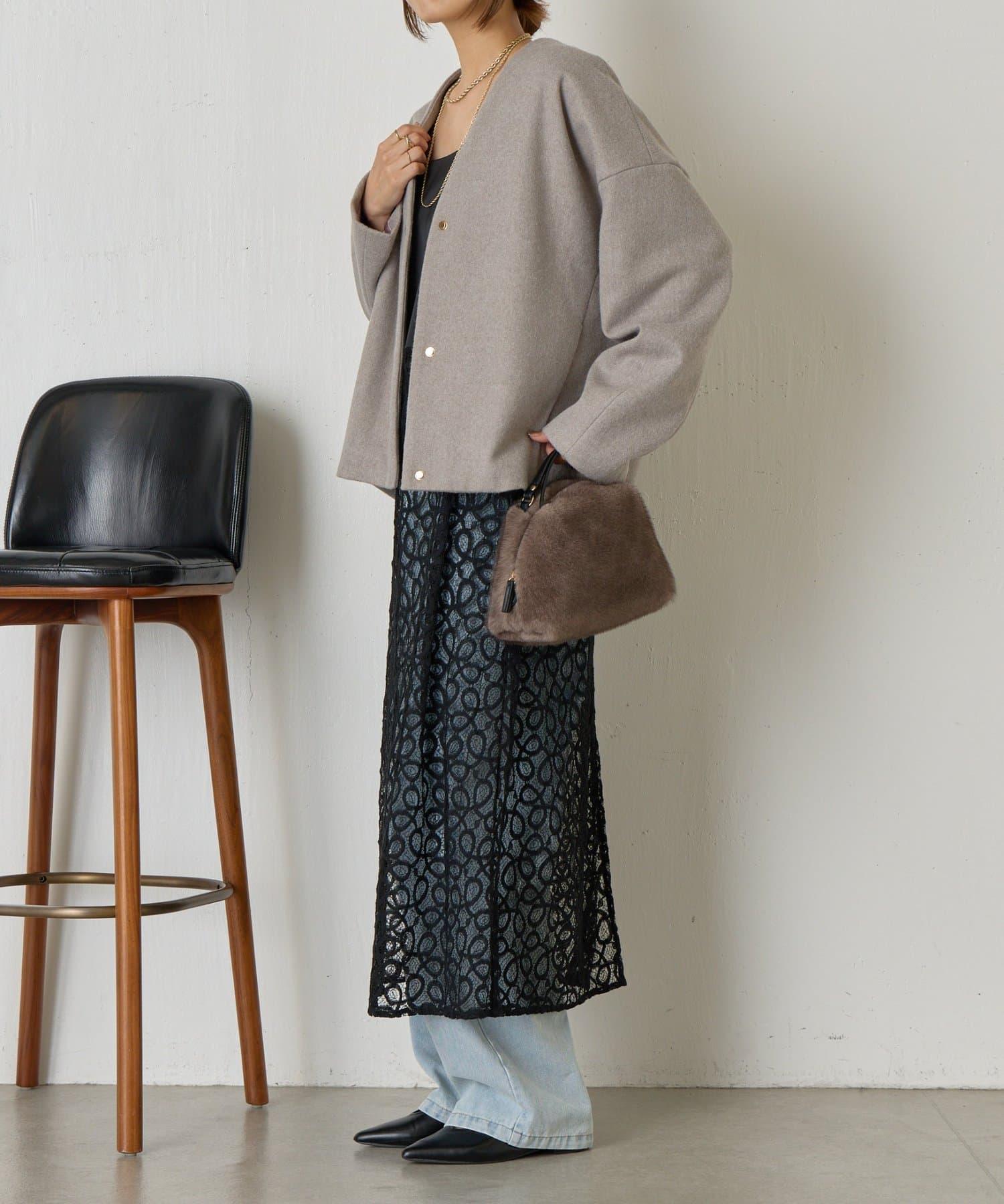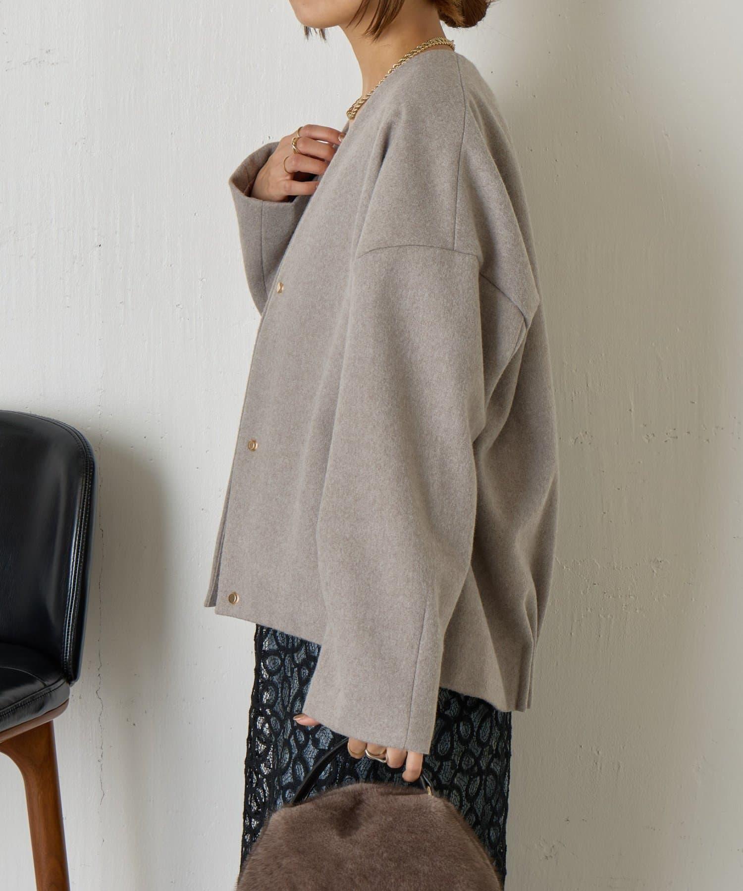 短款夾克,後襬採用褶襉設計,顯得乾淨利落。