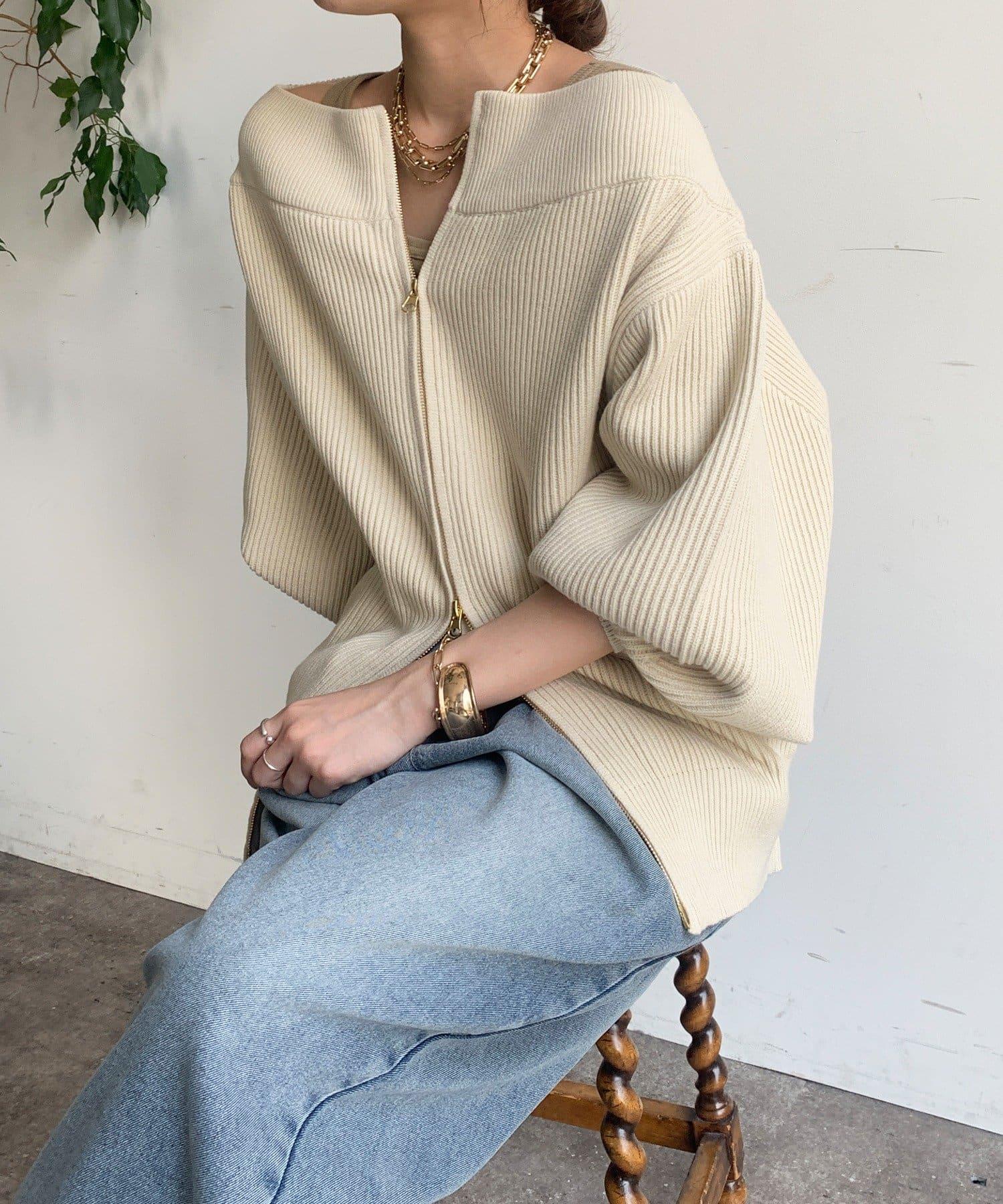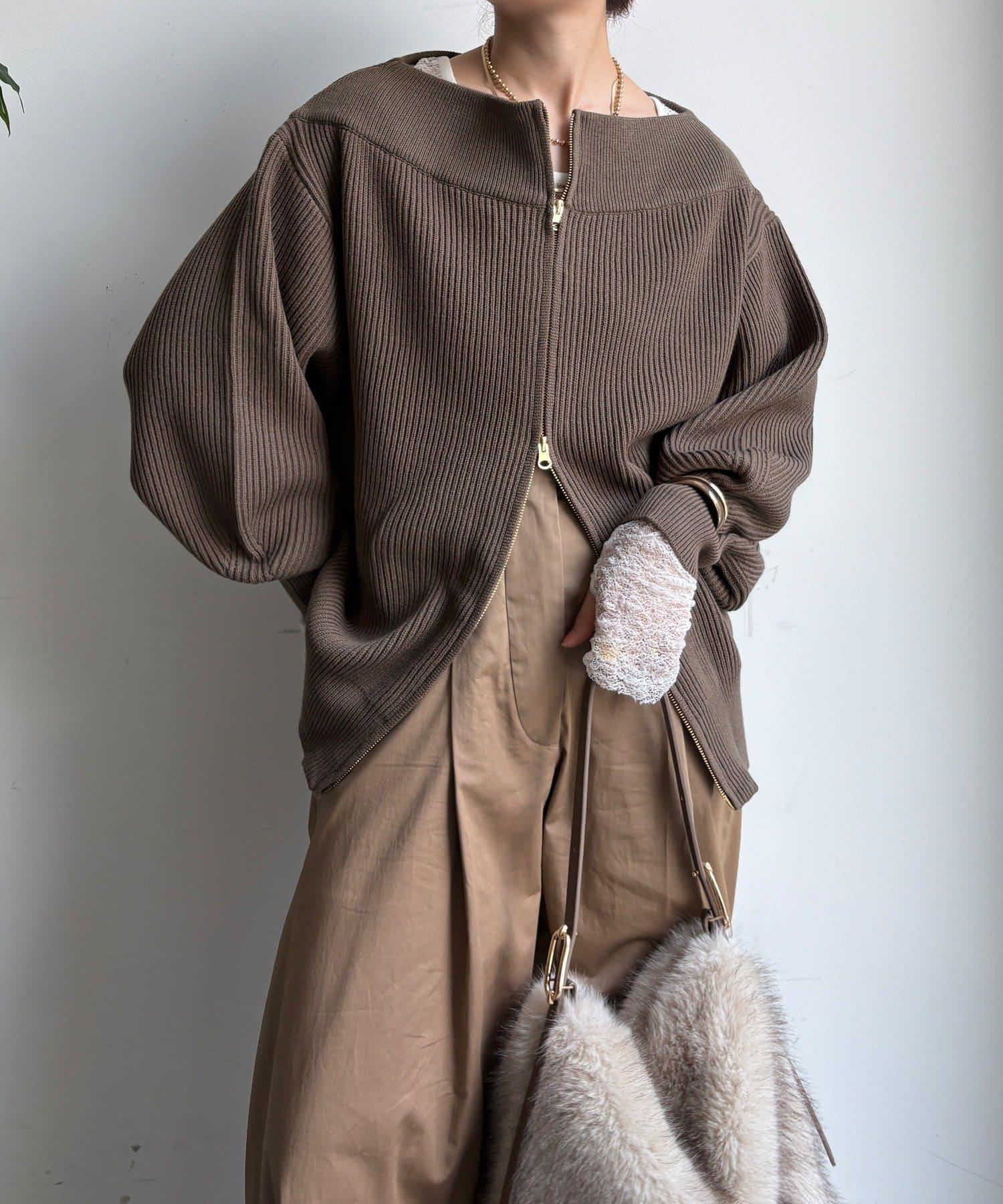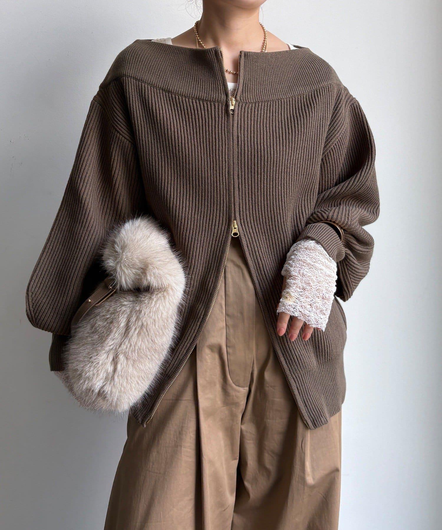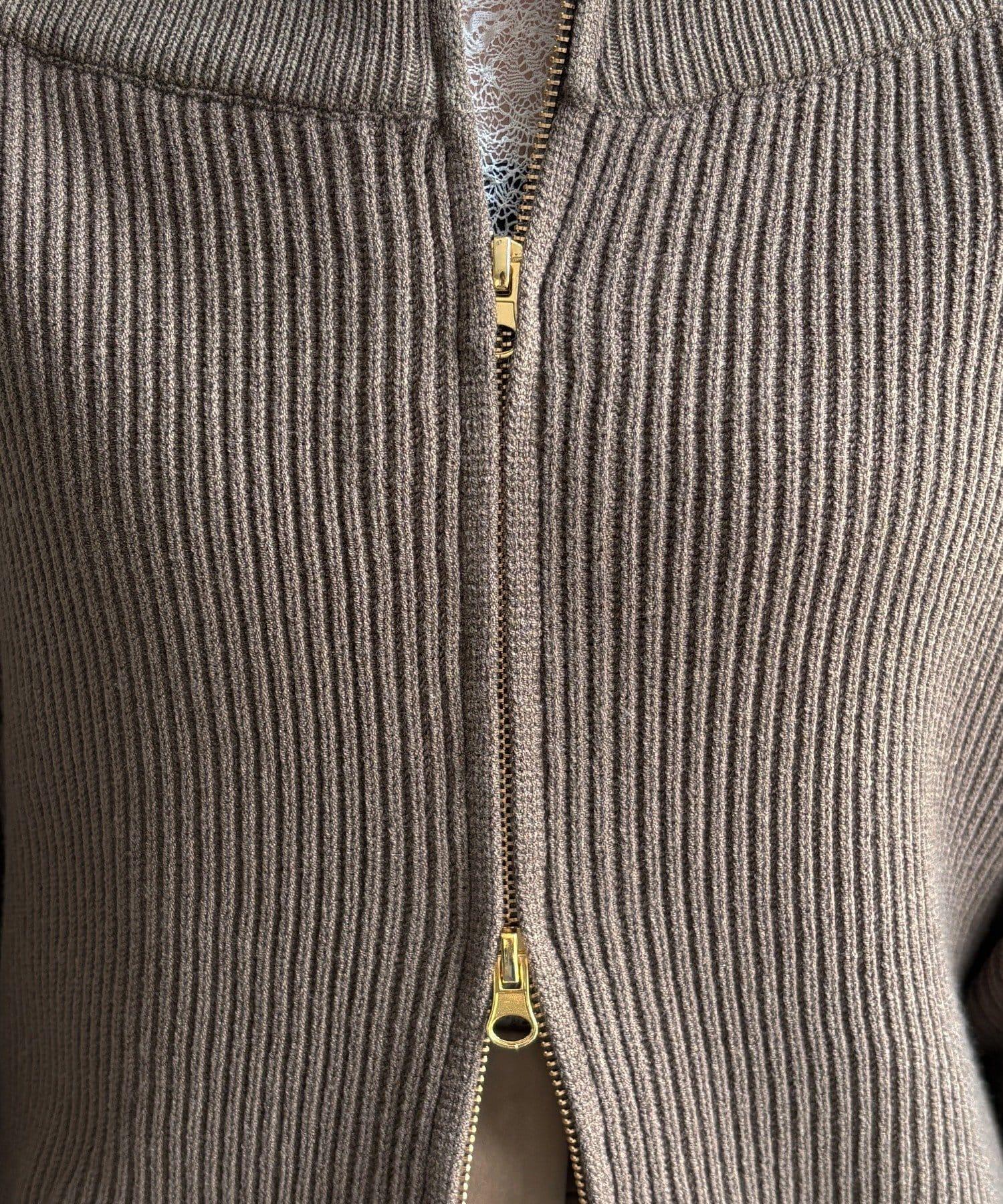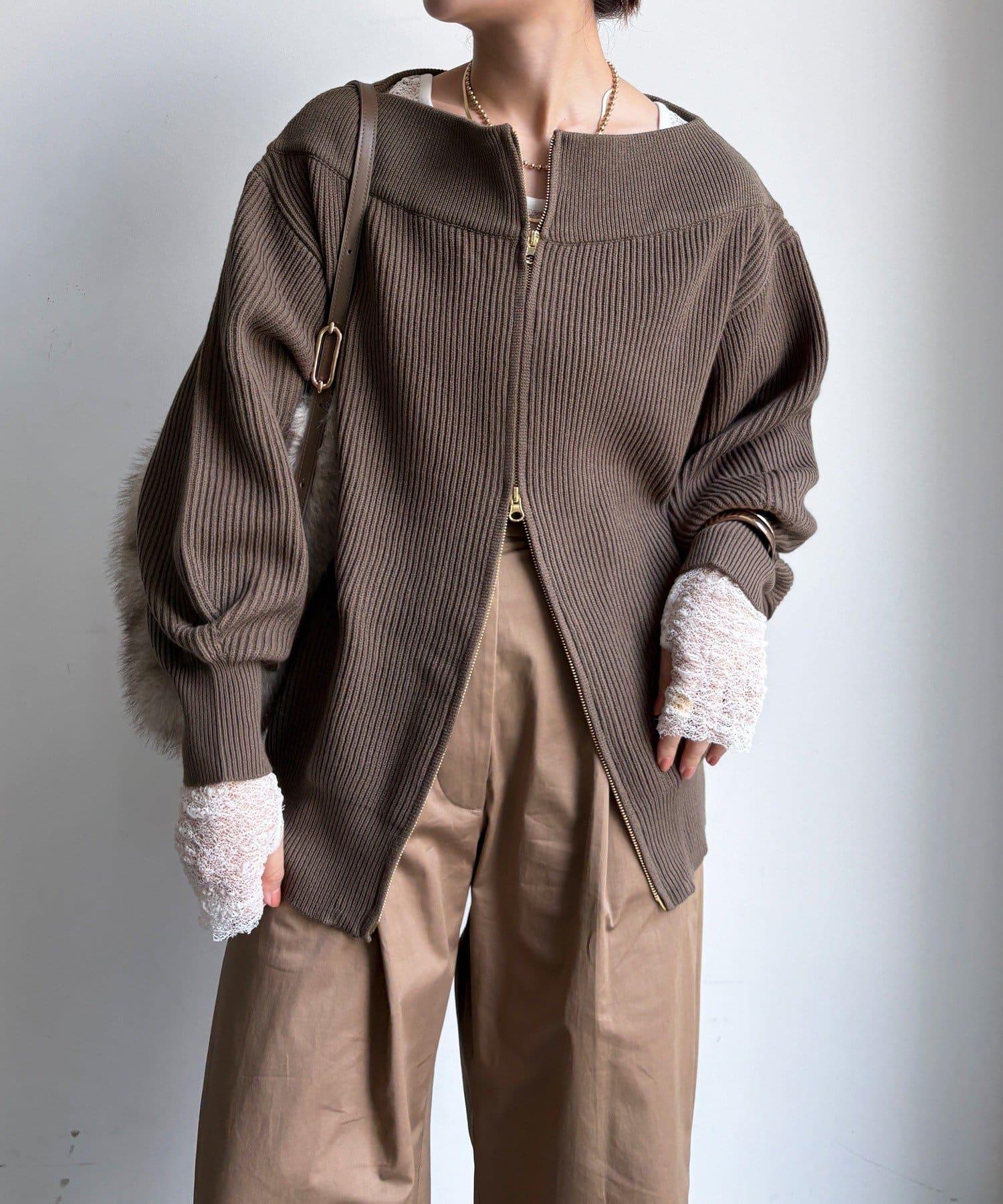 【不刺激皮膚的針織衫】前開拉鍊針織衫