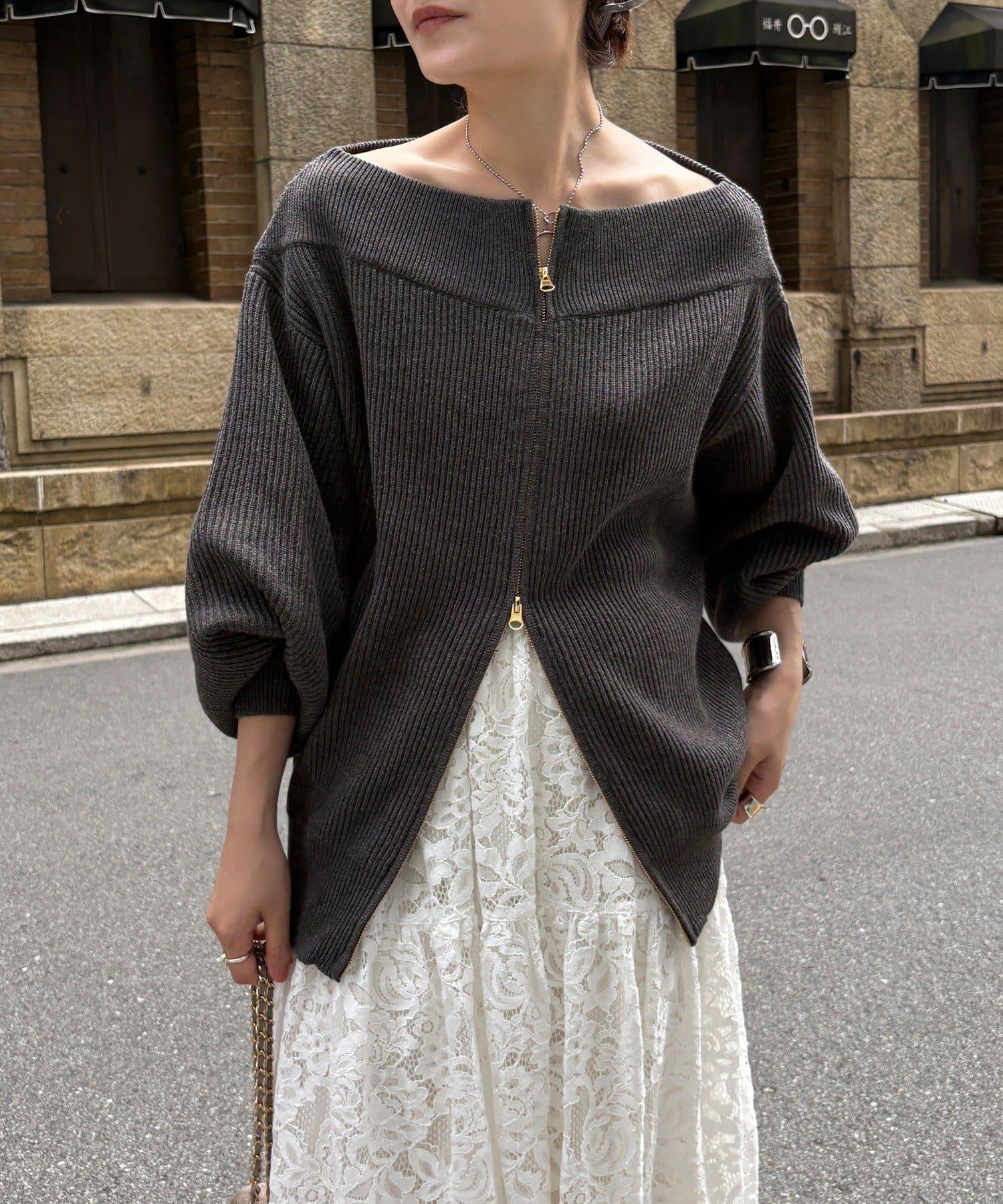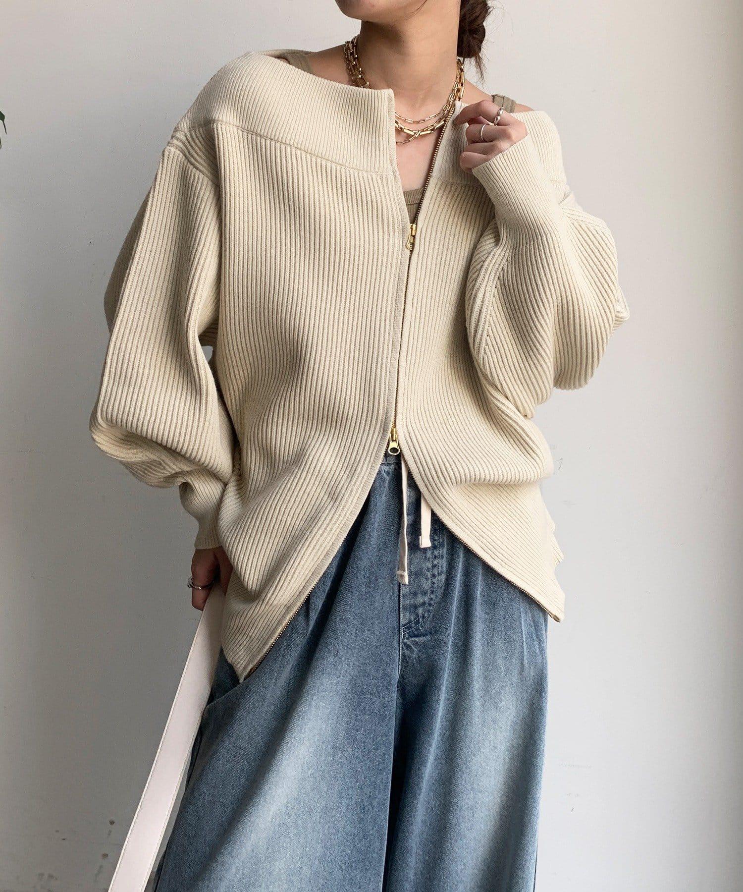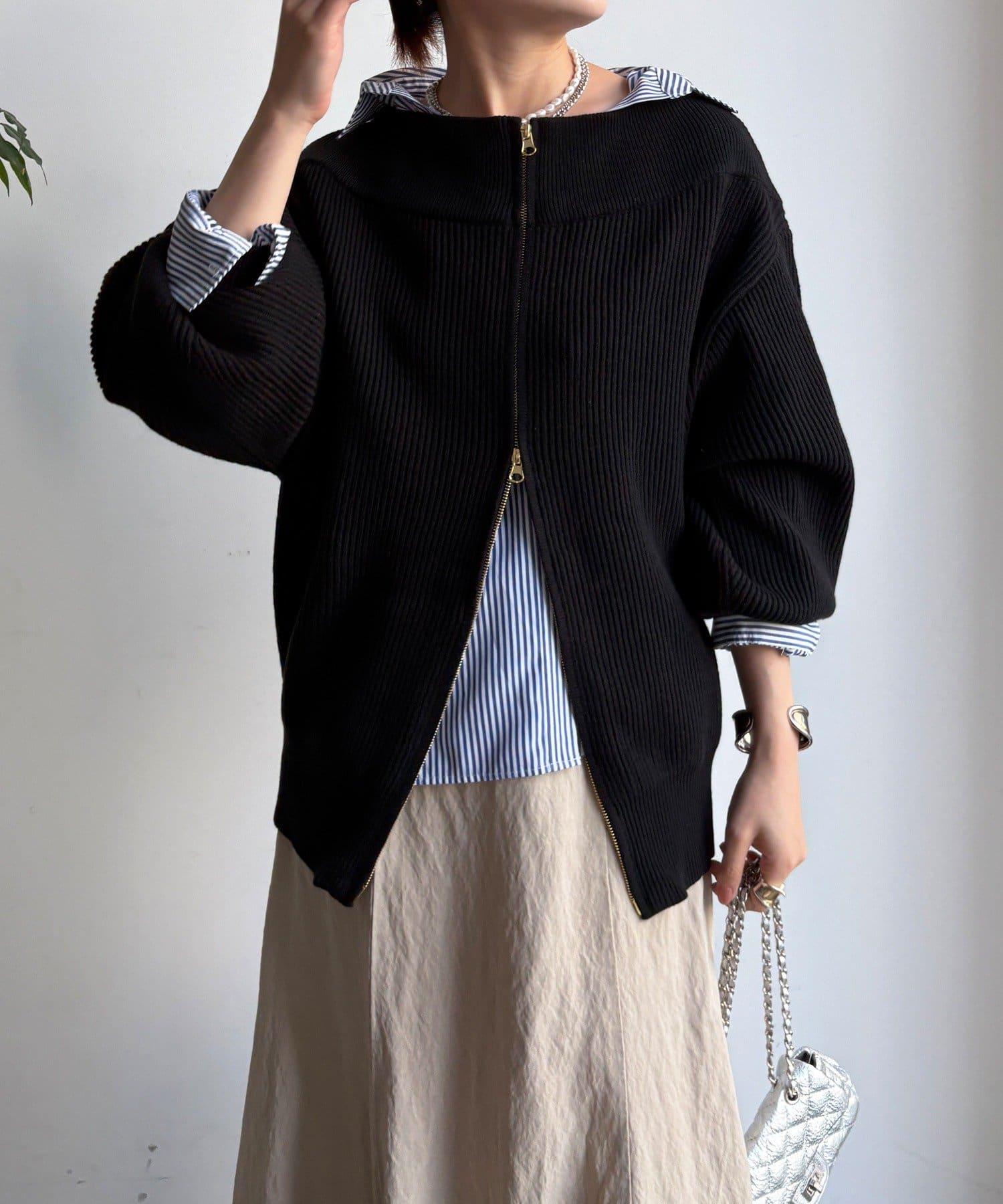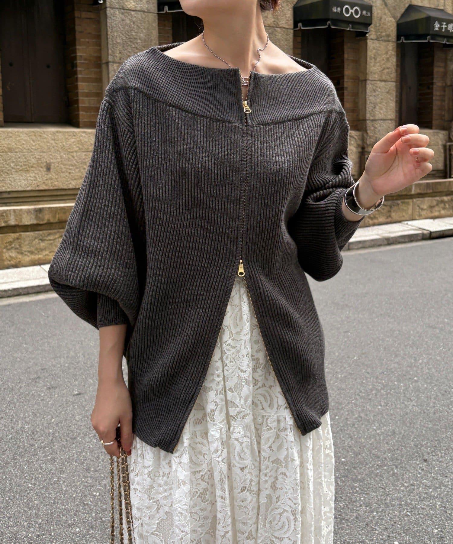 【不刺激皮膚的針織衫】前開拉鍊針織衫