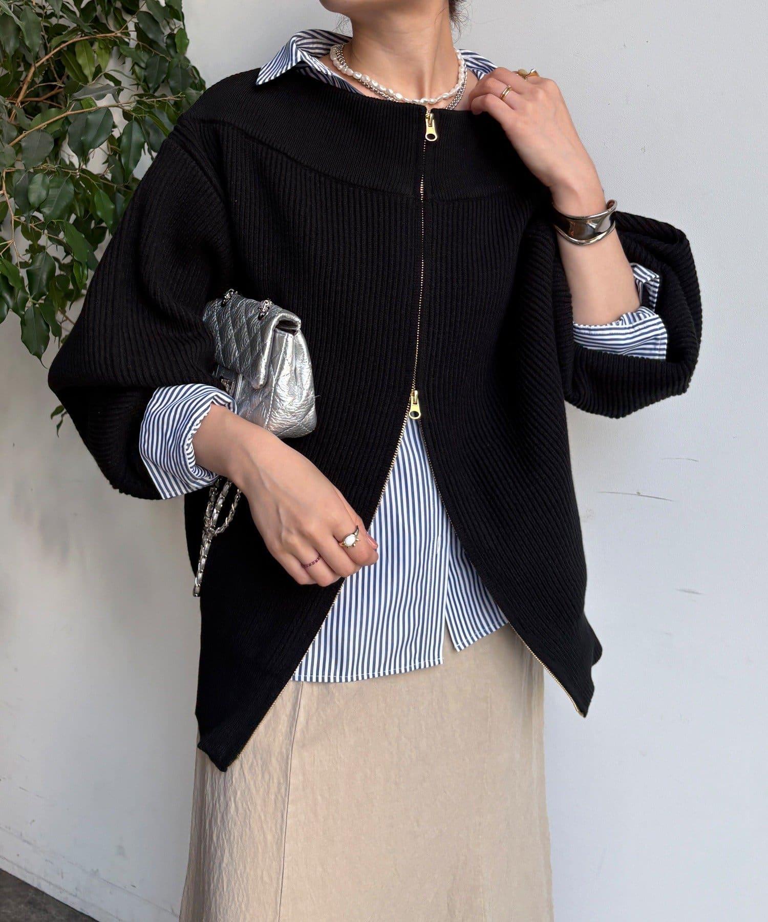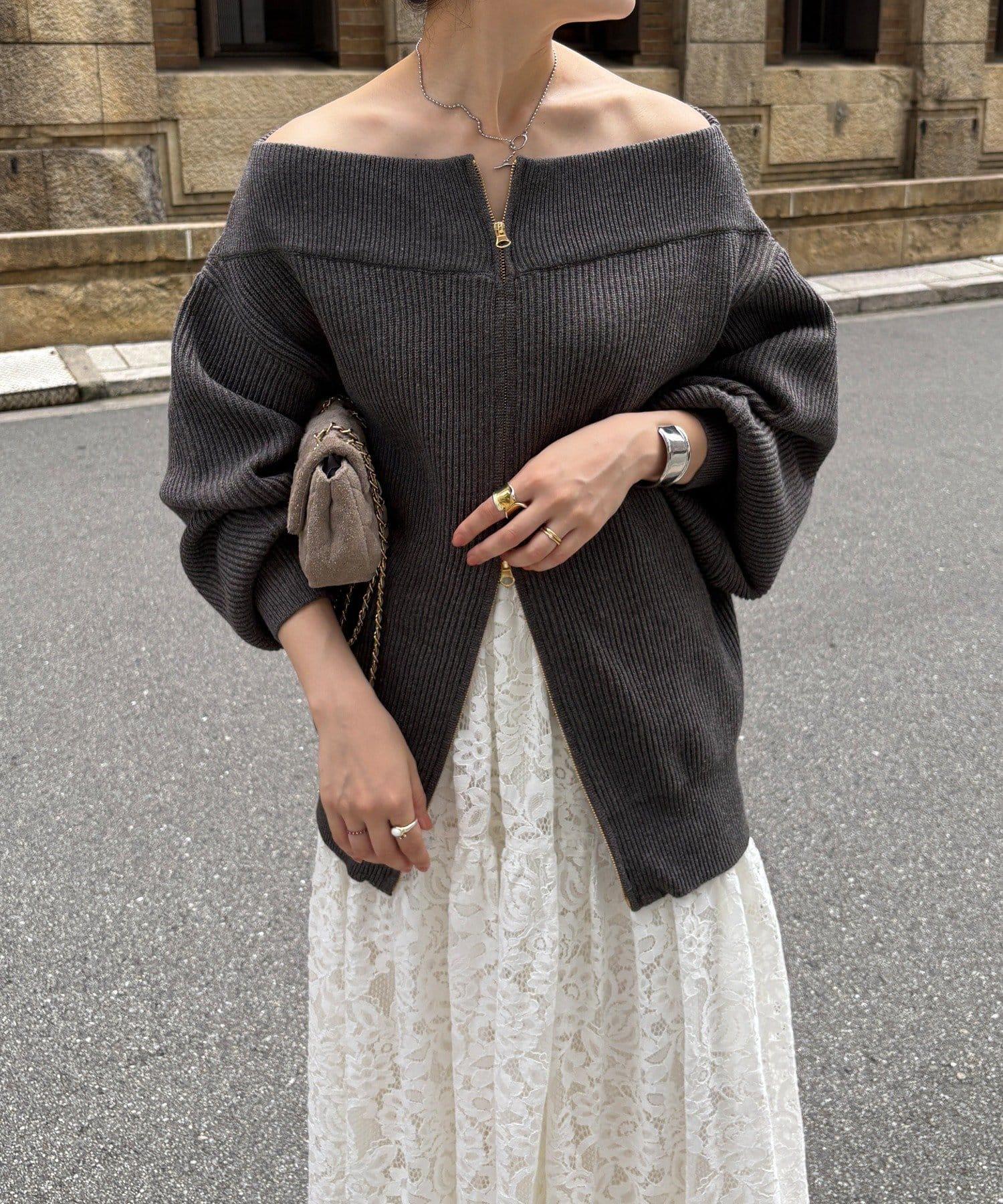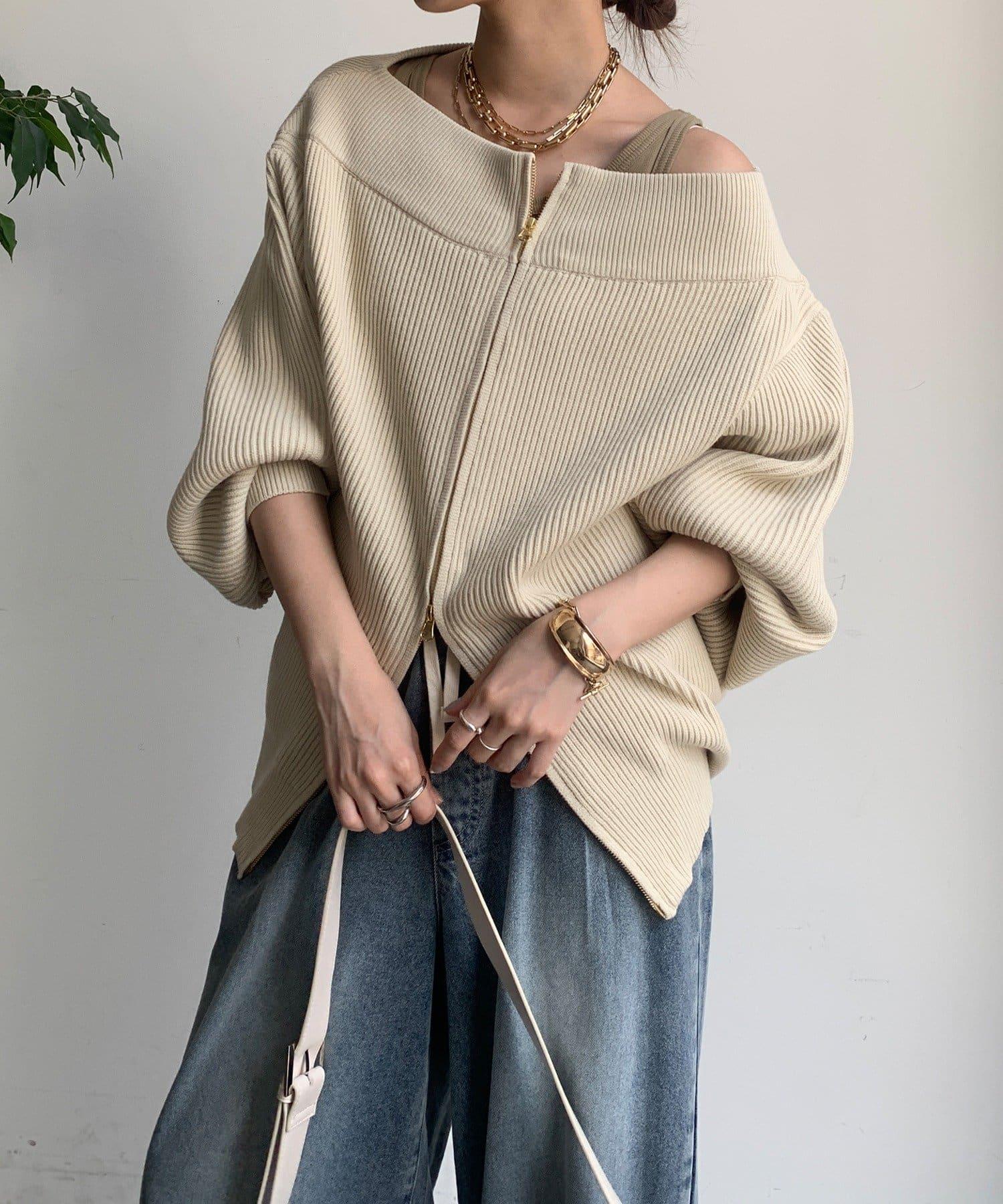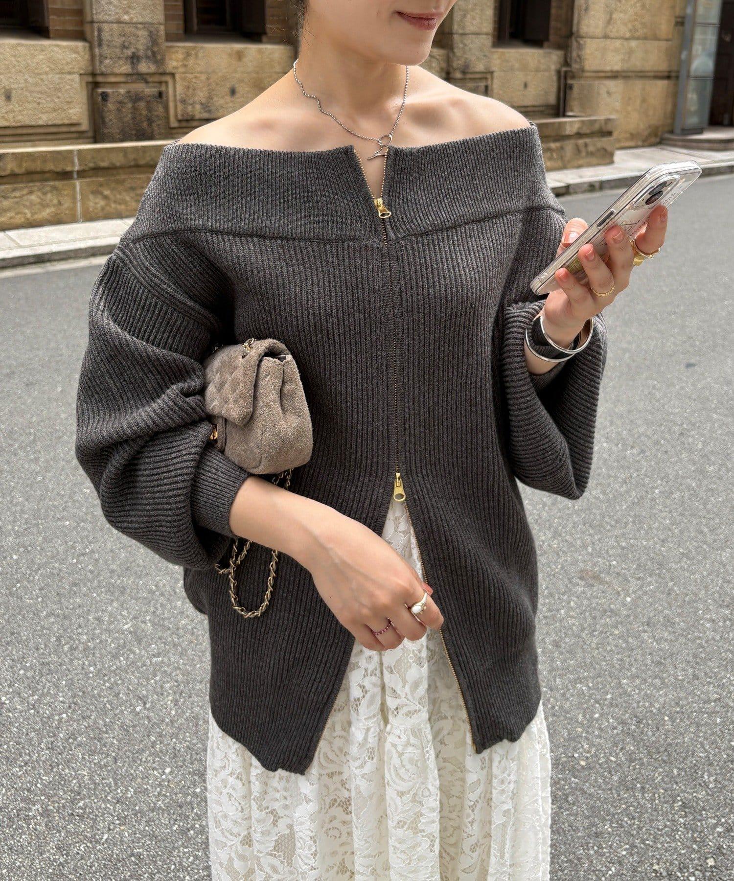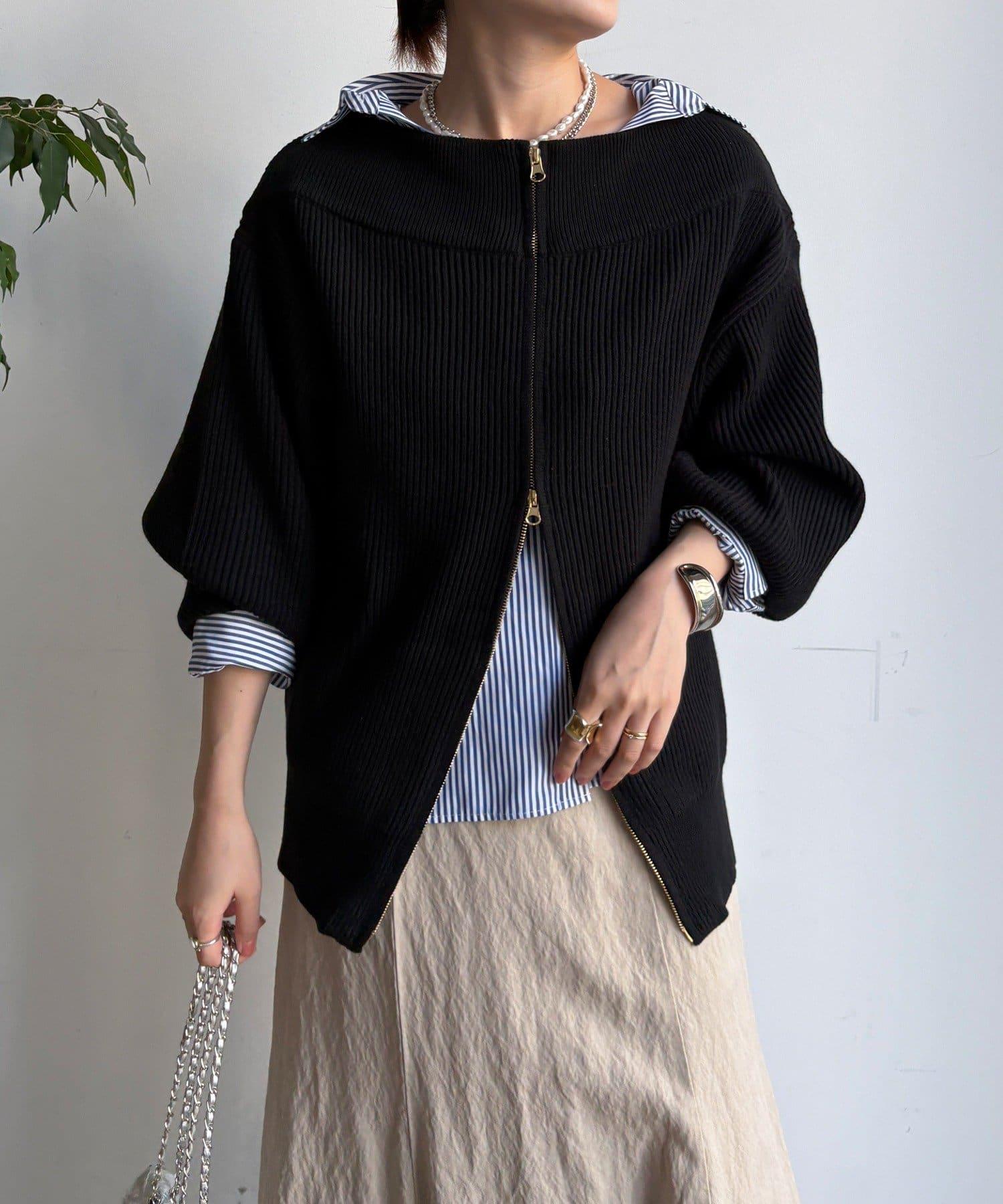 【不刺激皮膚的針織衫】前開拉鍊針織衫
