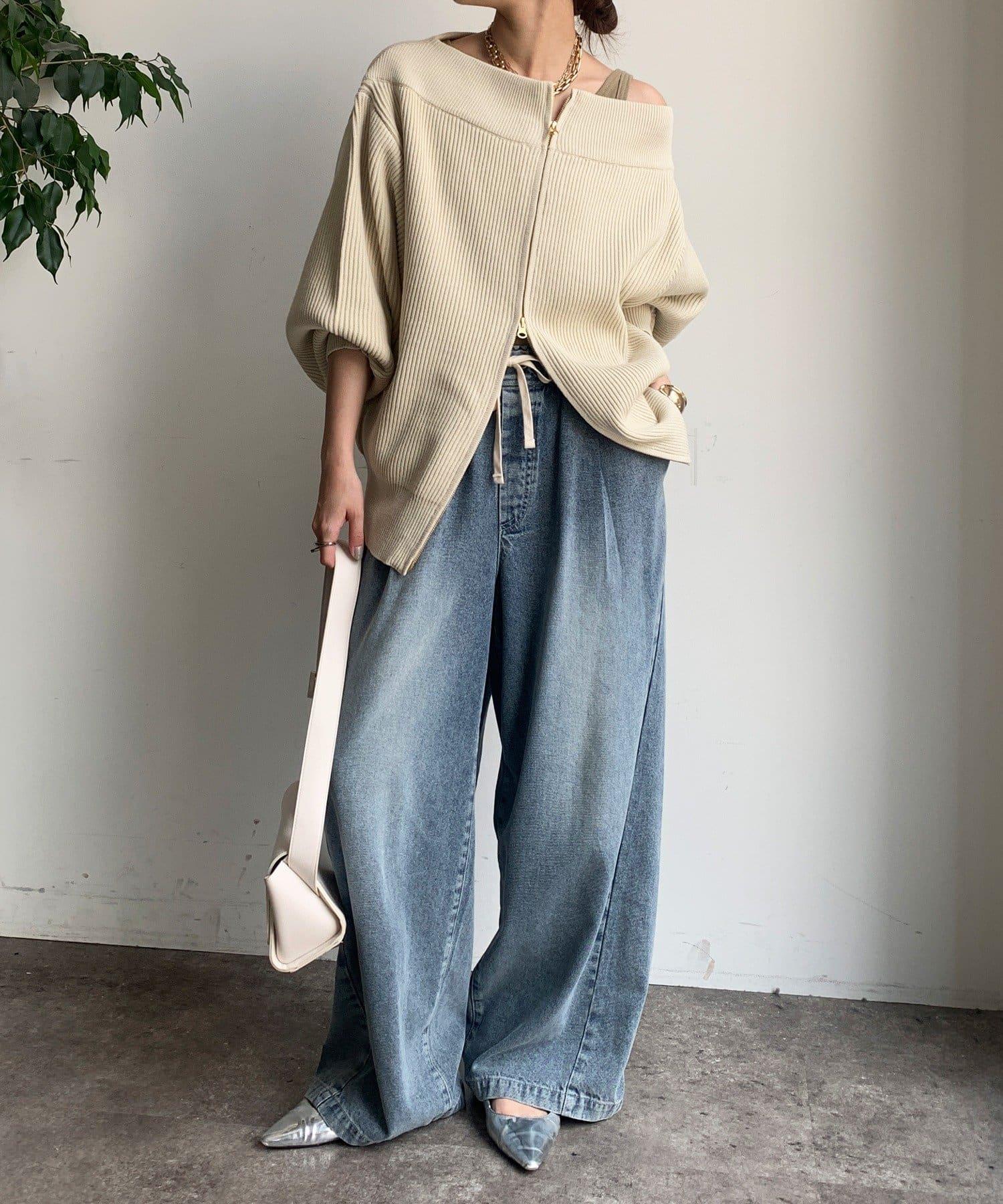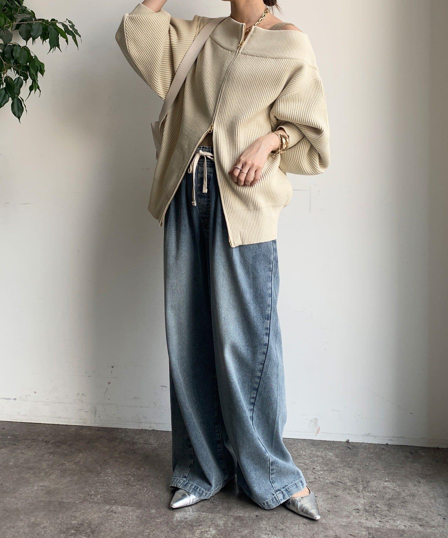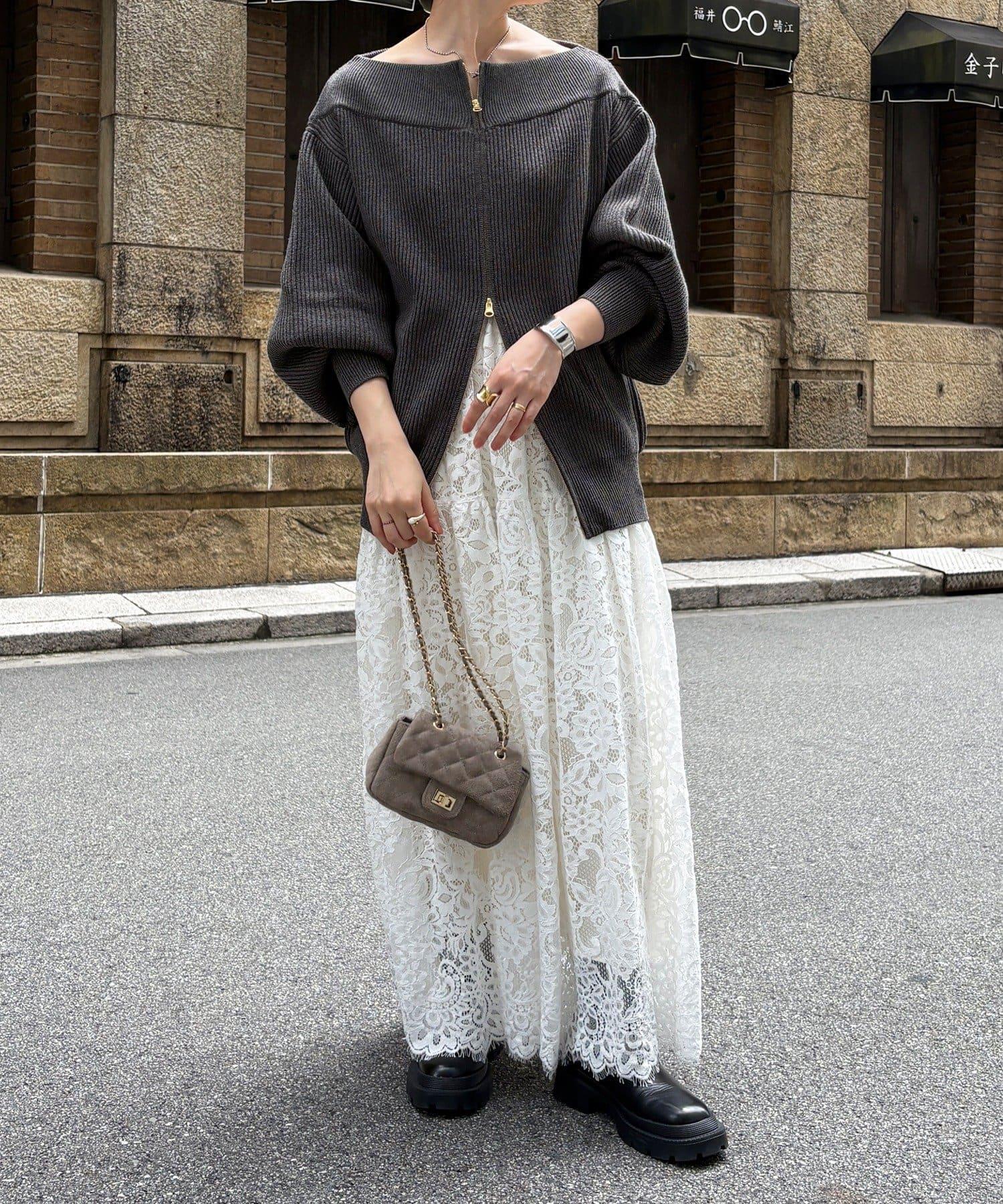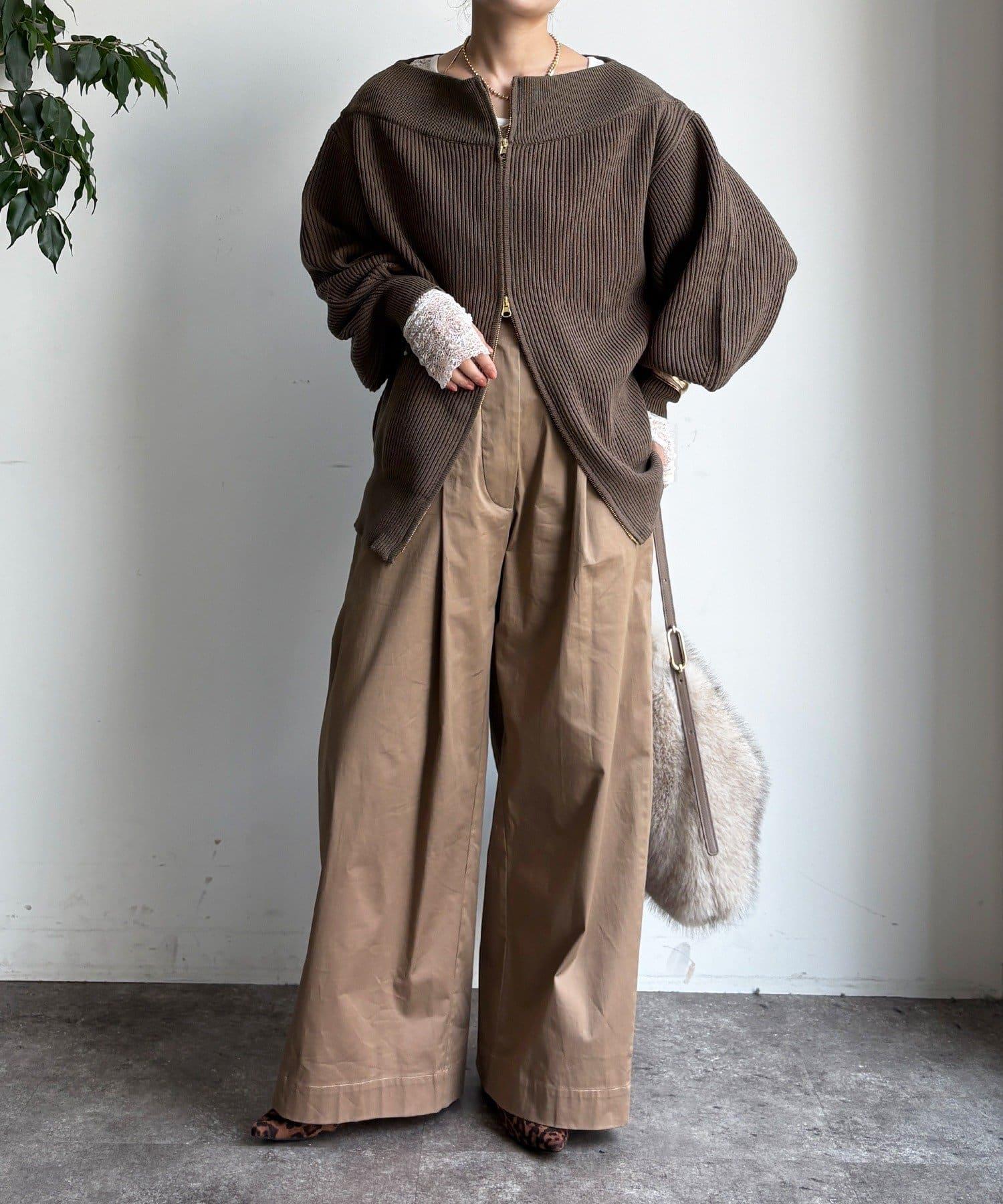 【不刺激皮膚的針織衫】前開拉鍊針織衫
