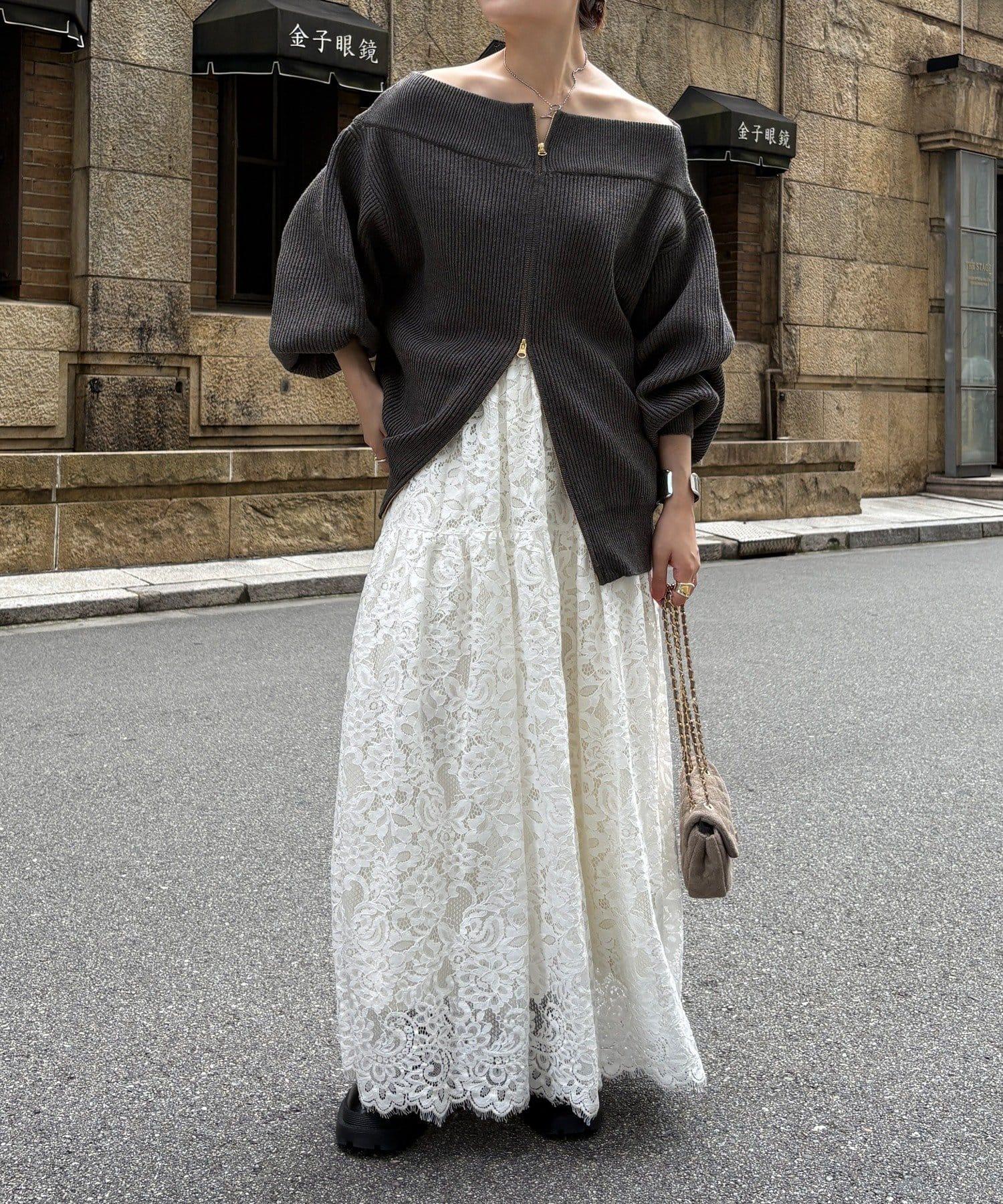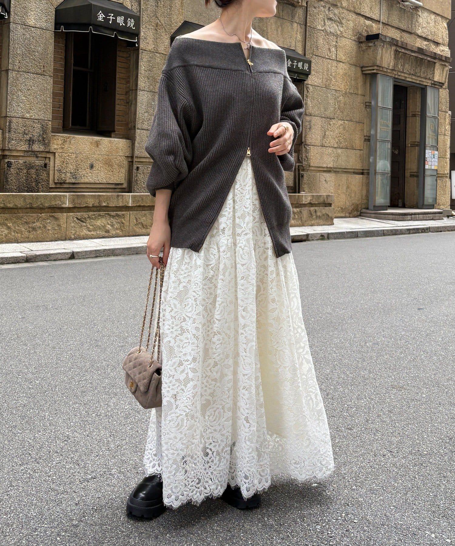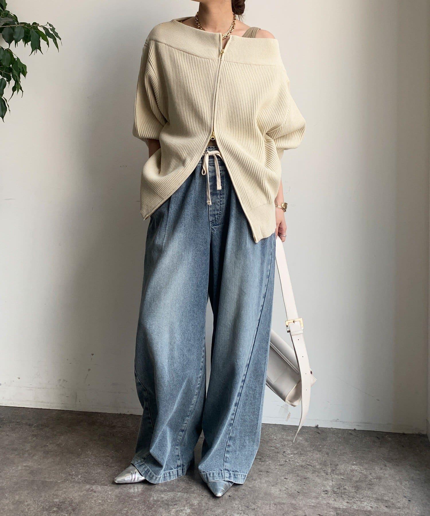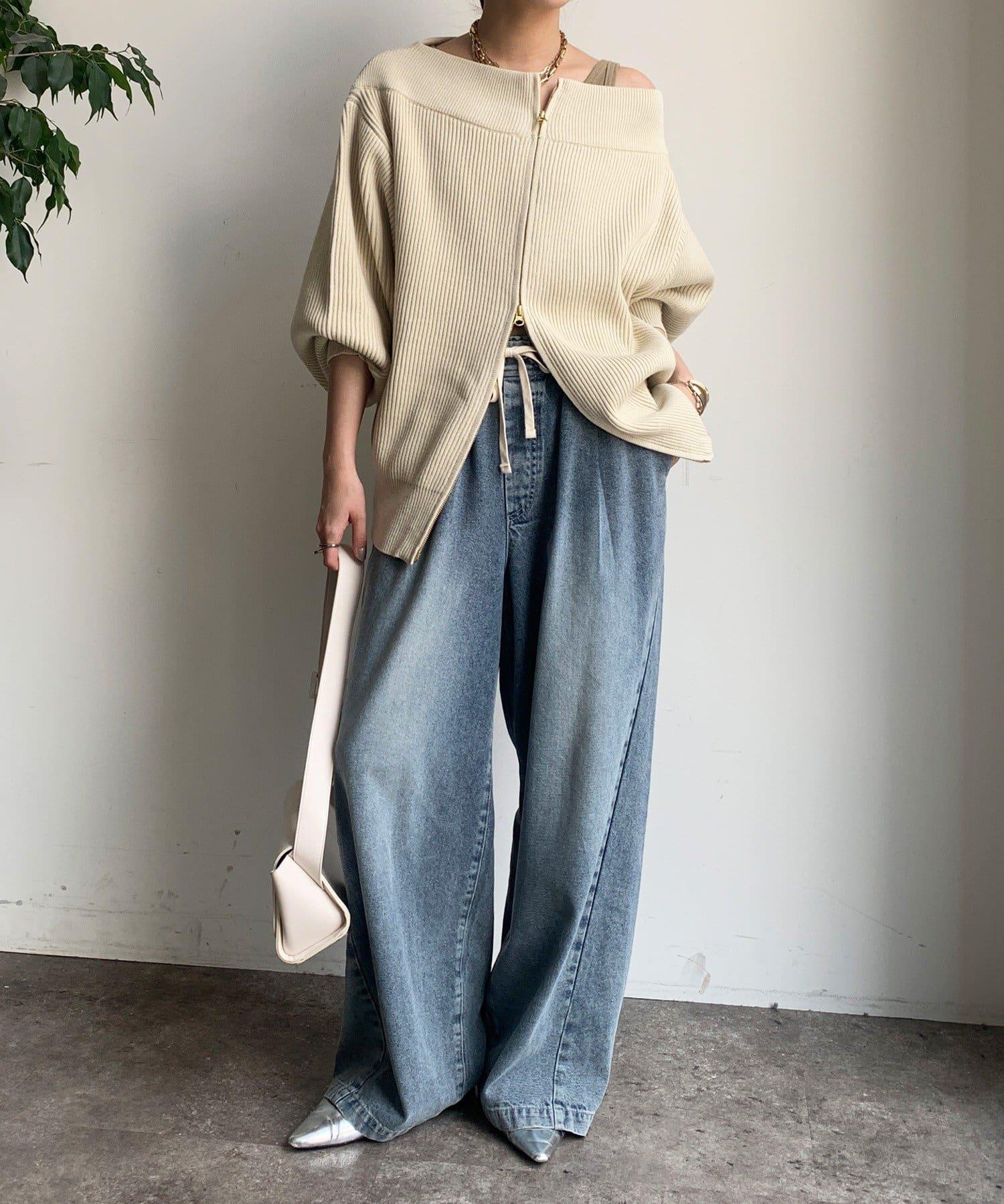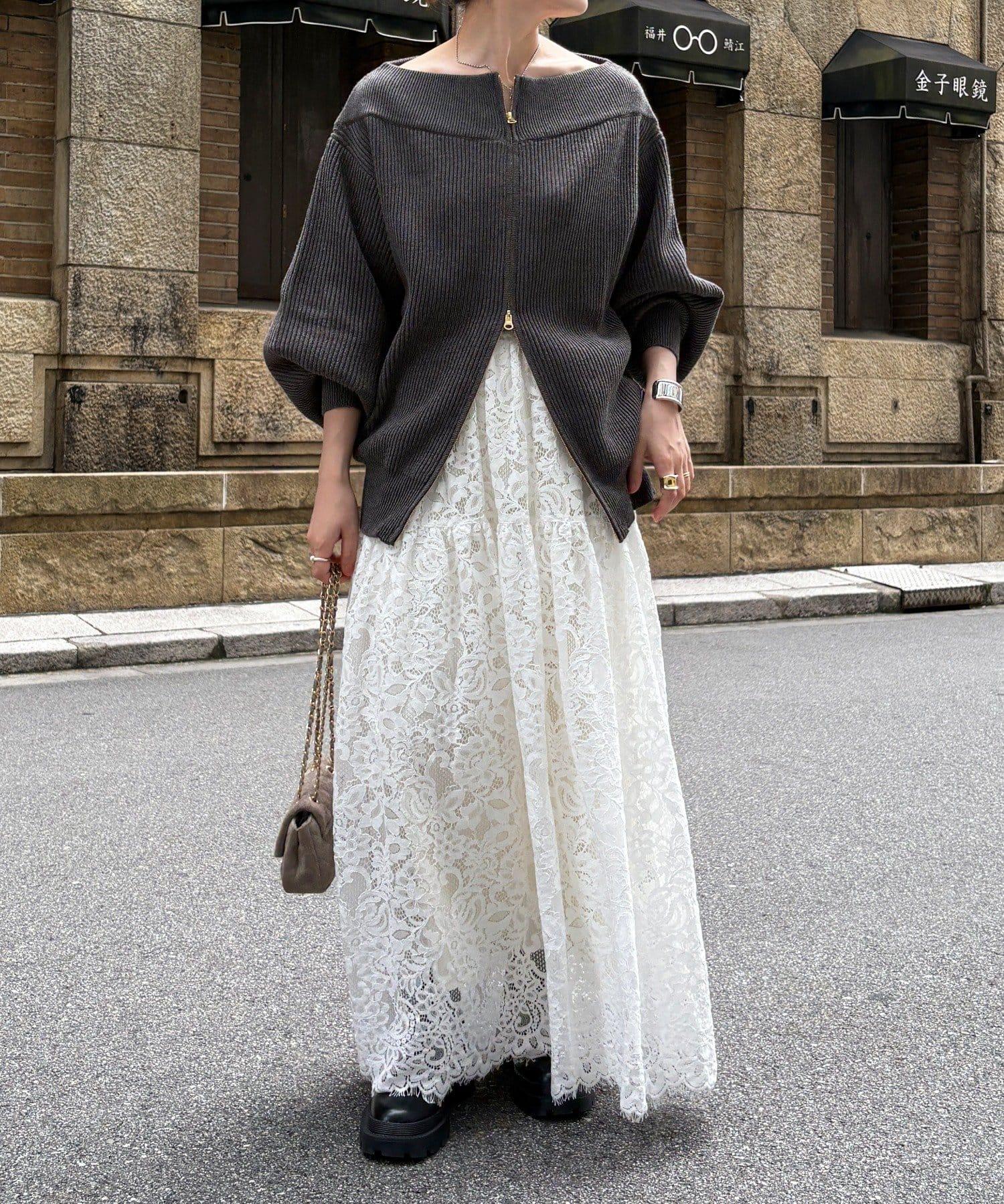 【不刺激皮膚的針織衫】前開拉鍊針織衫