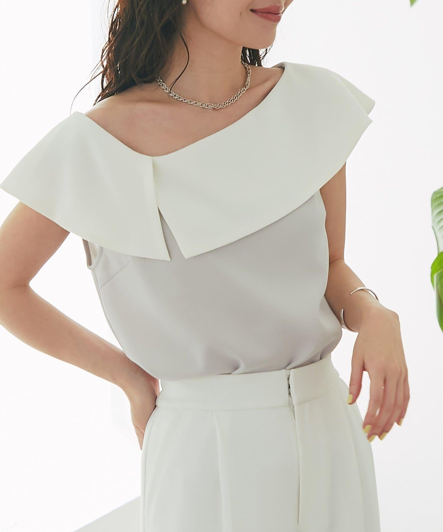 設計精良的無袖上衣,不對稱衣領十分搶眼。