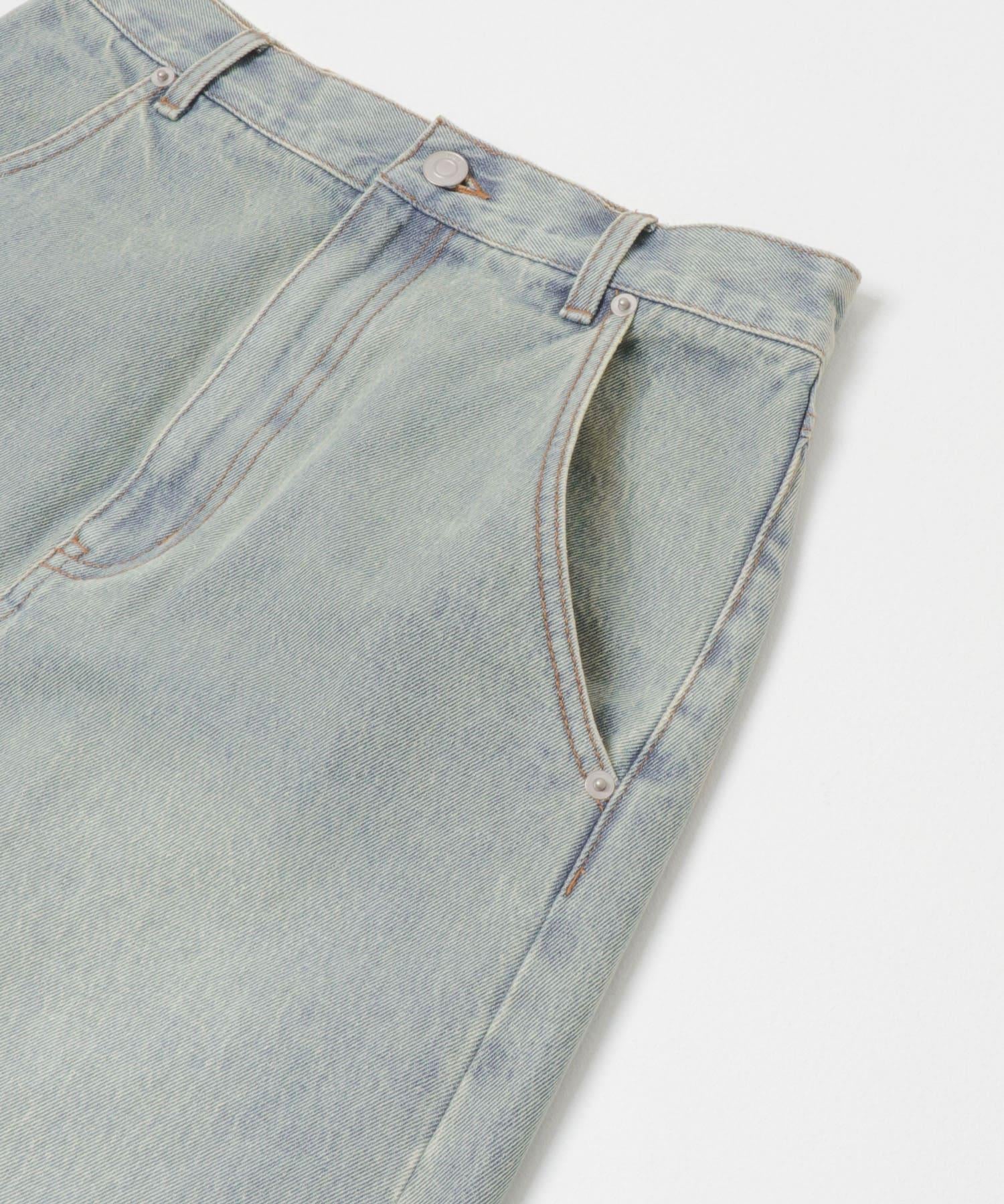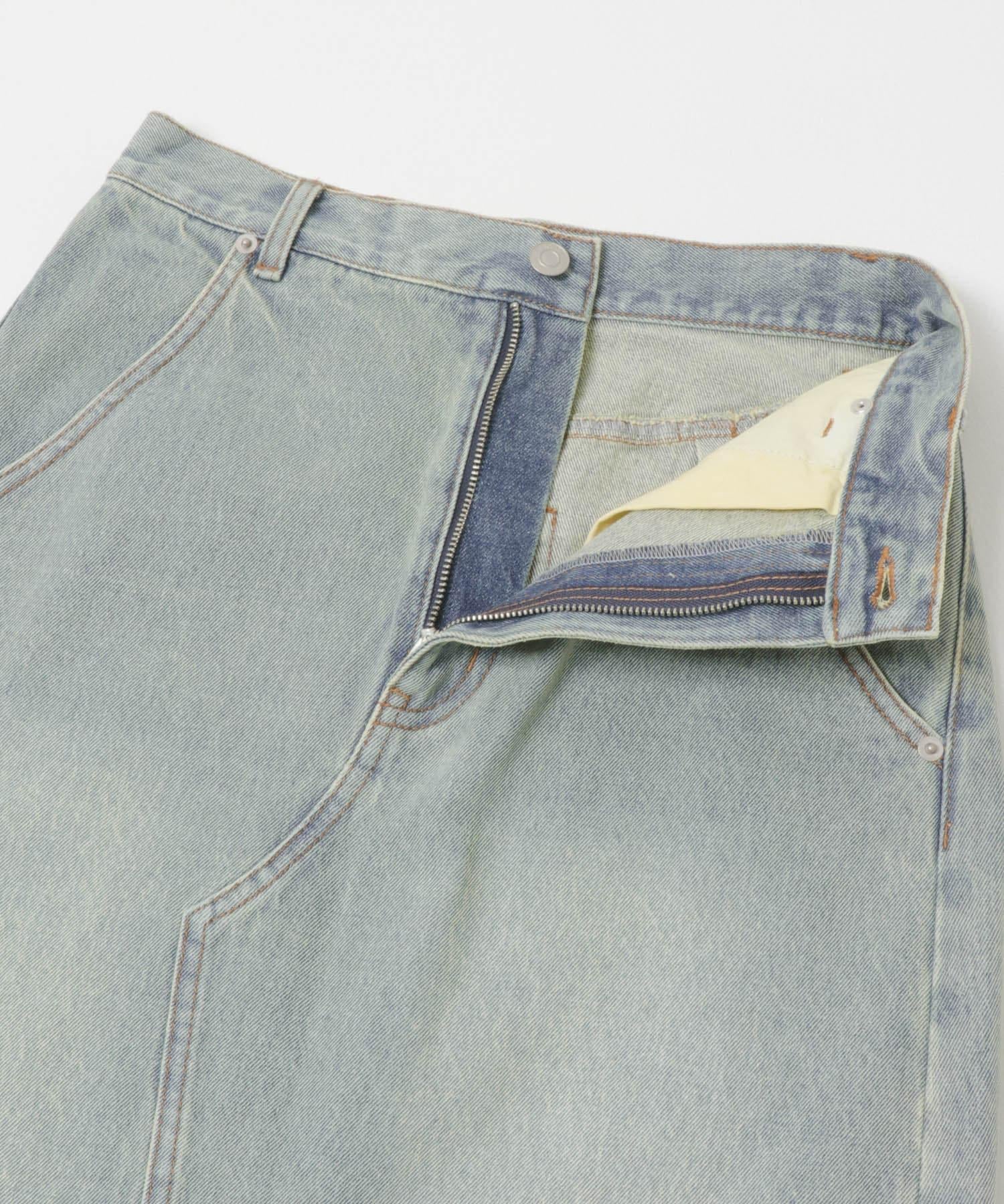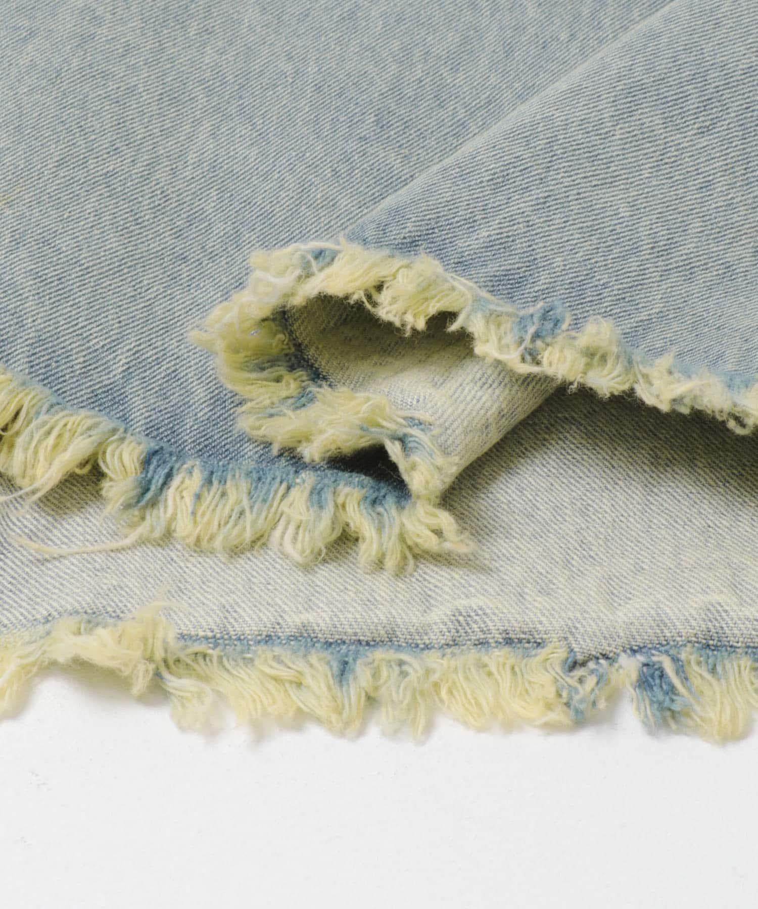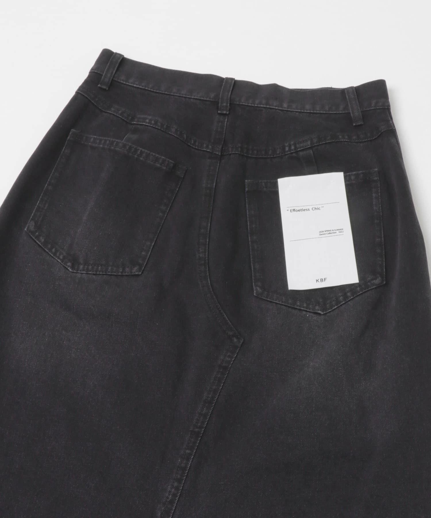 不對稱設計的牛仔裙。背部開衩設計給人一種適度寬鬆的感覺,充滿女人味。腰部設計乾淨利落,可以塞進腰間,讓造型更有型。流蘇下襬和對比強烈的色彩變化也值得一提。