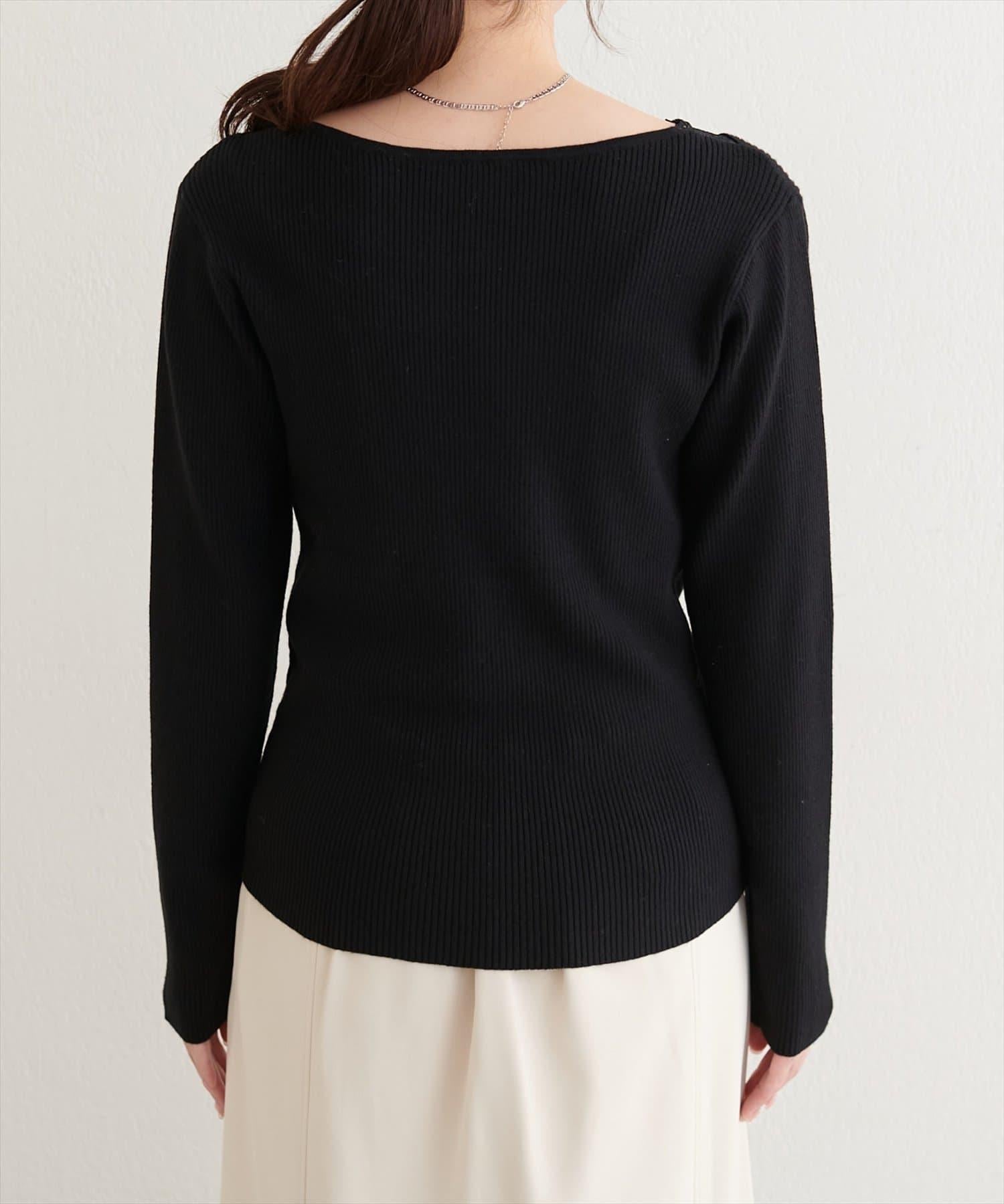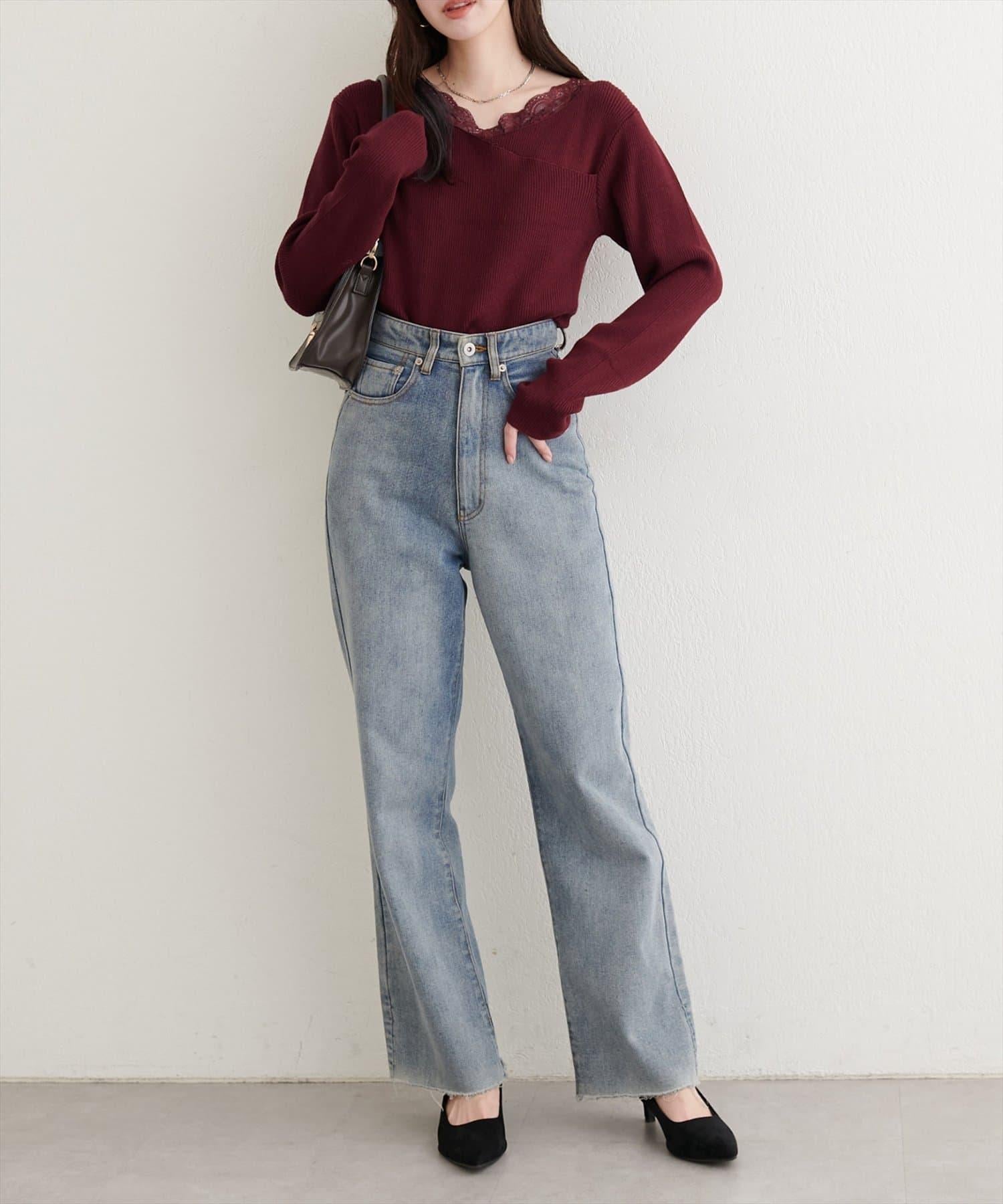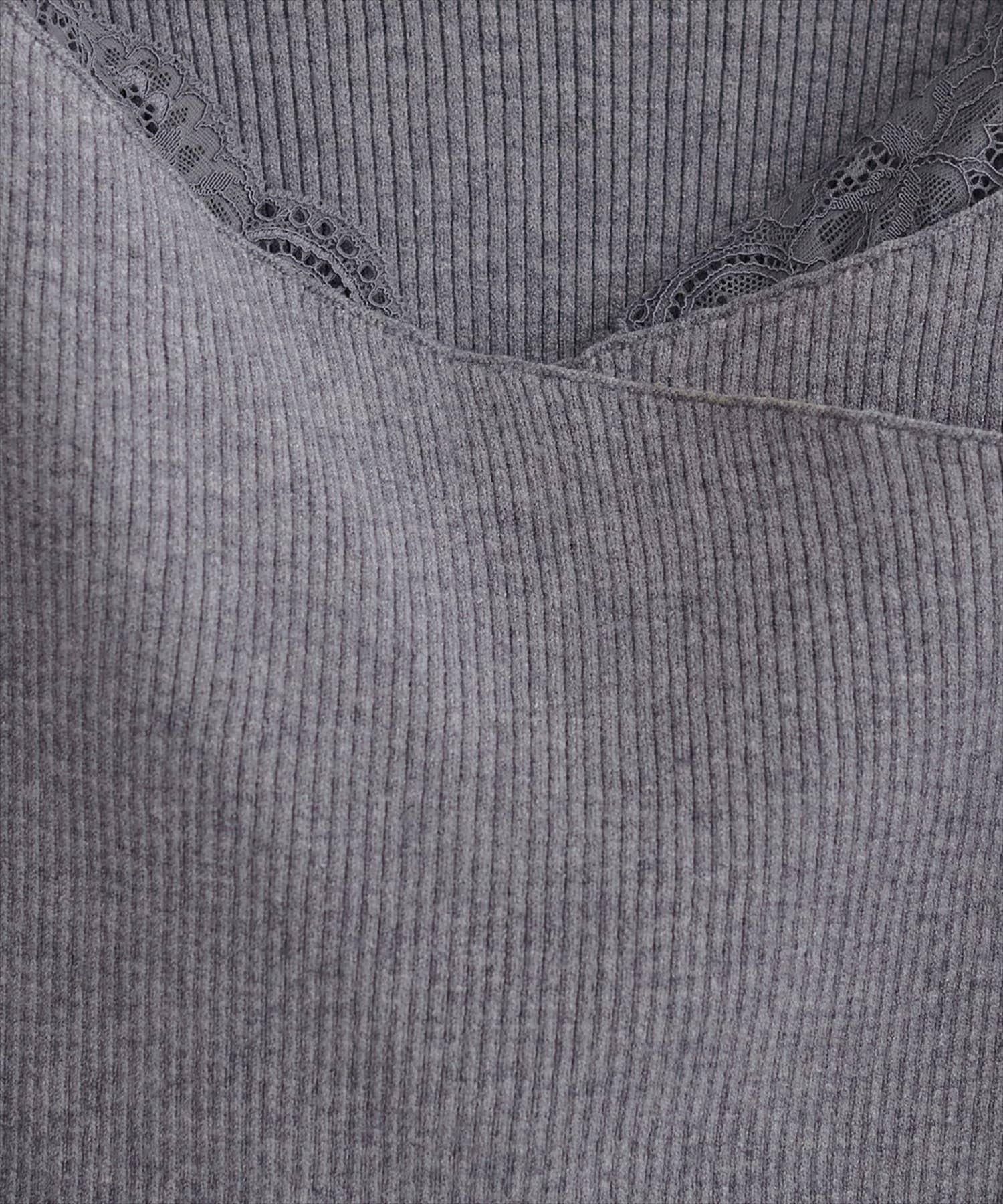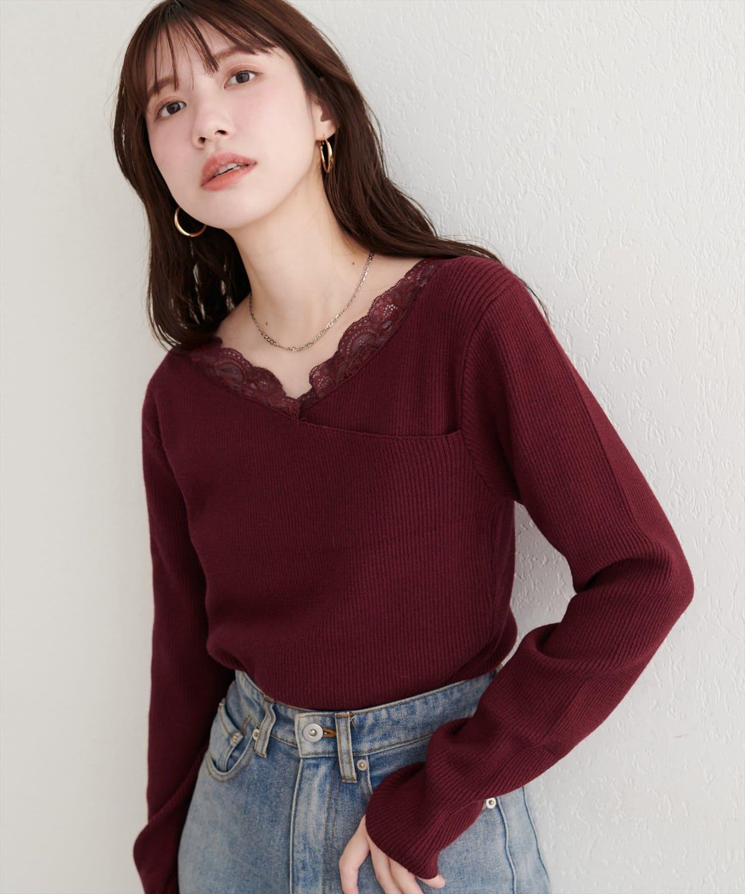 [WEB 👍] 不對稱蕾絲領羅紋針織套頭衫