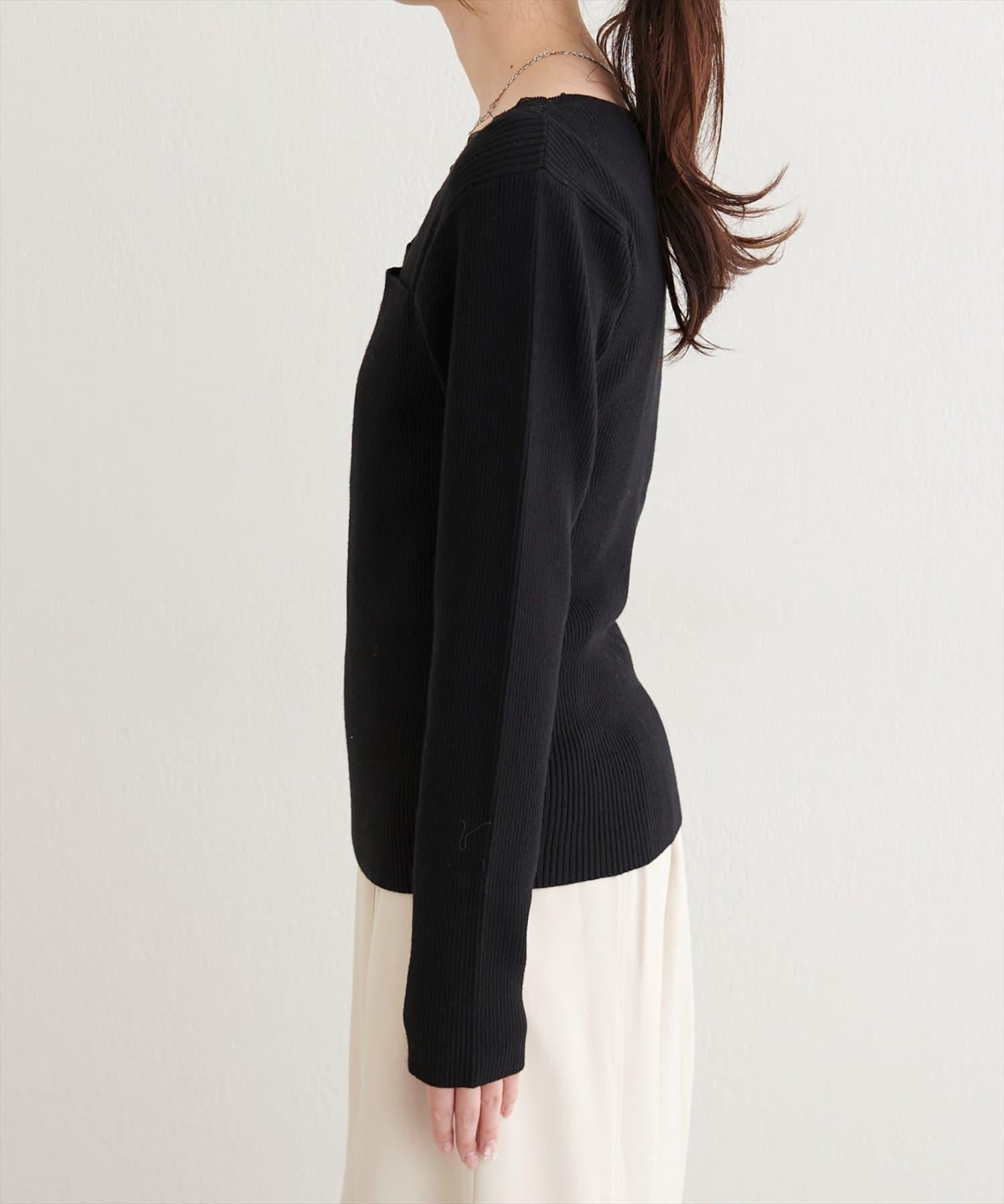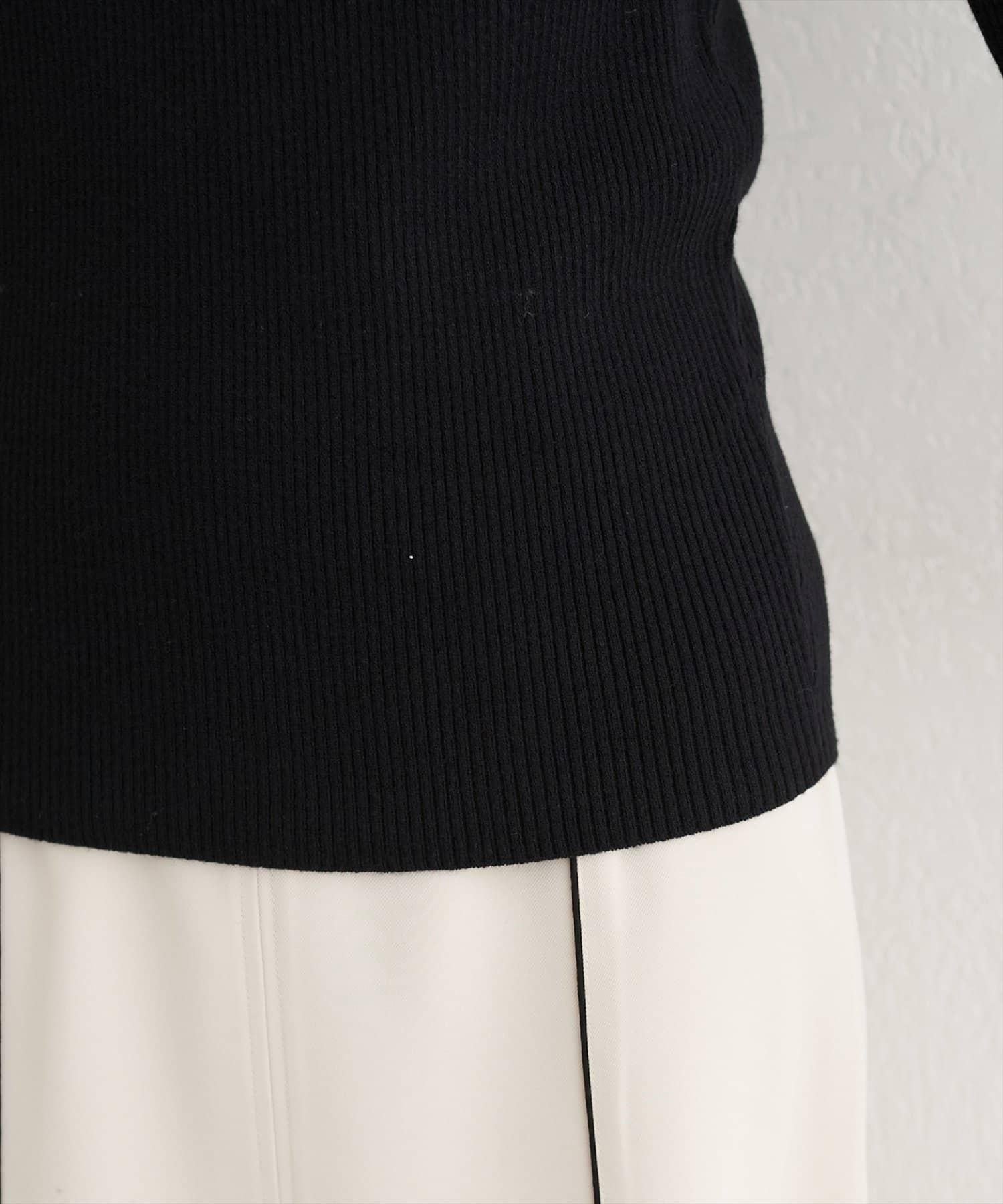 合身的羅紋針織衫勾勒出簡潔的身體線條,起到提升氣質的效果。