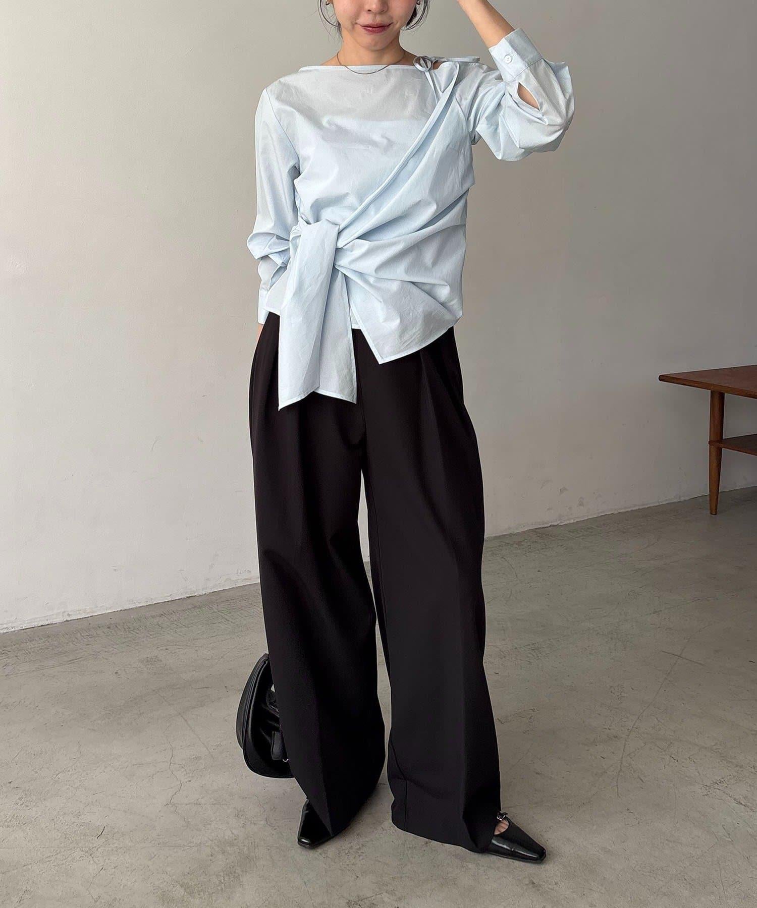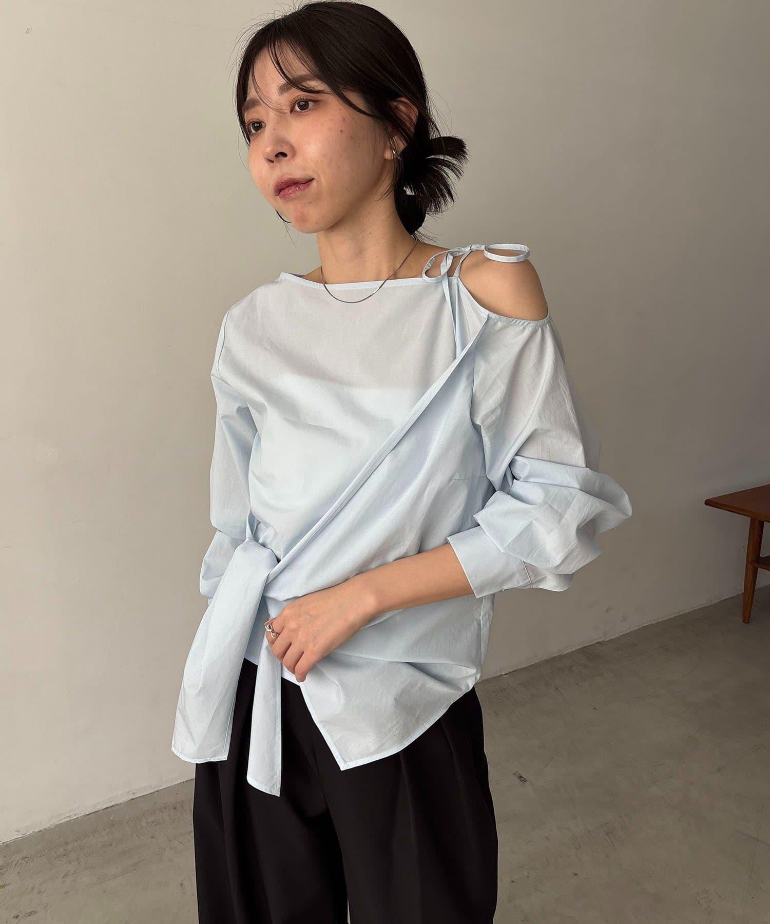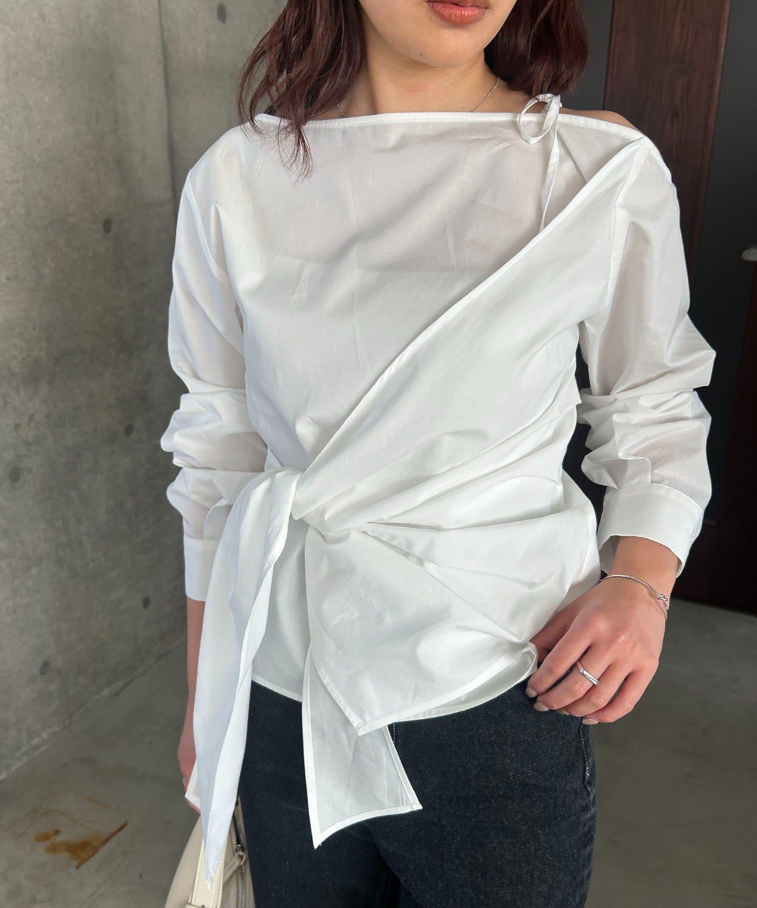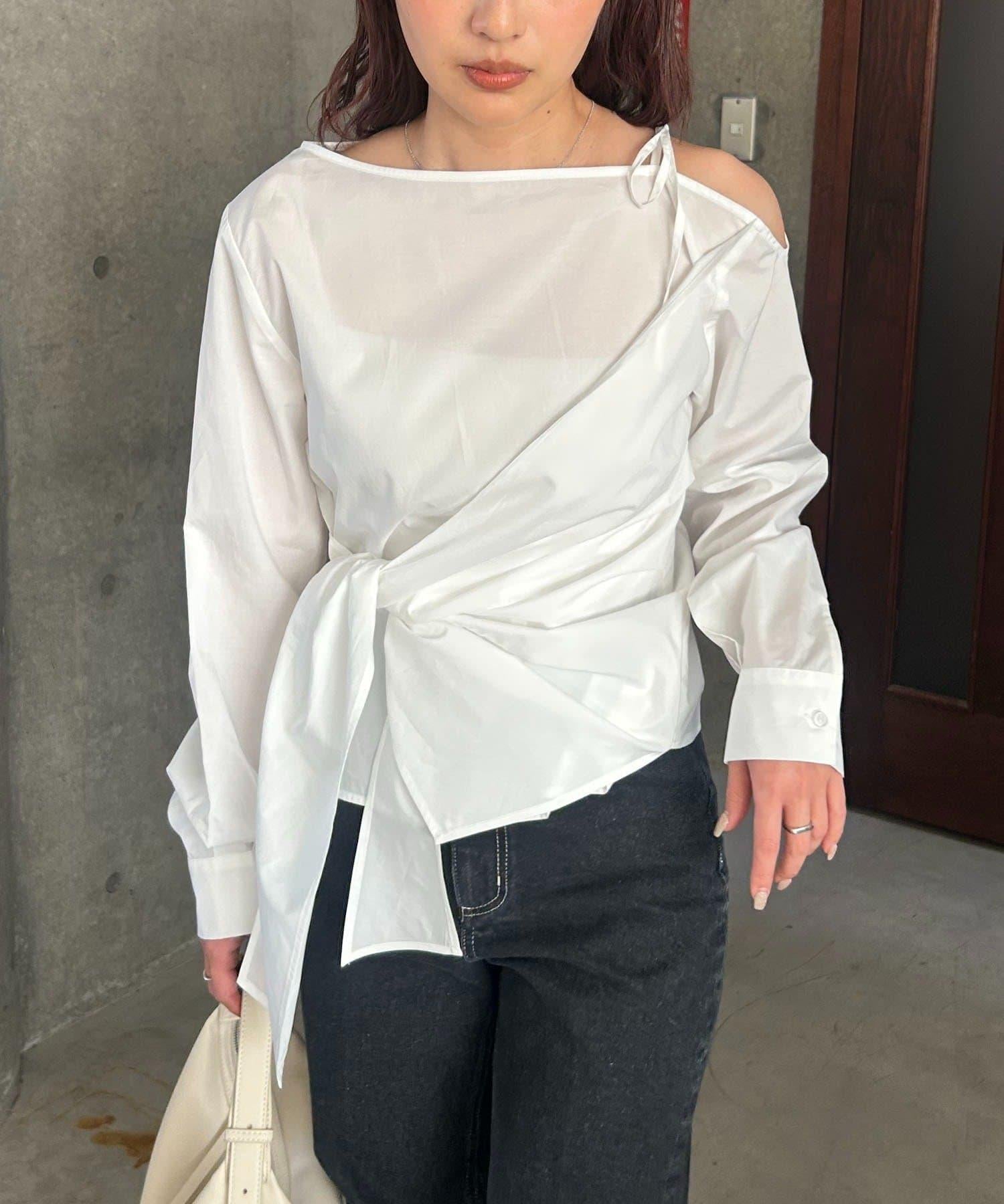 不對稱蝴蝶結設計襯衫