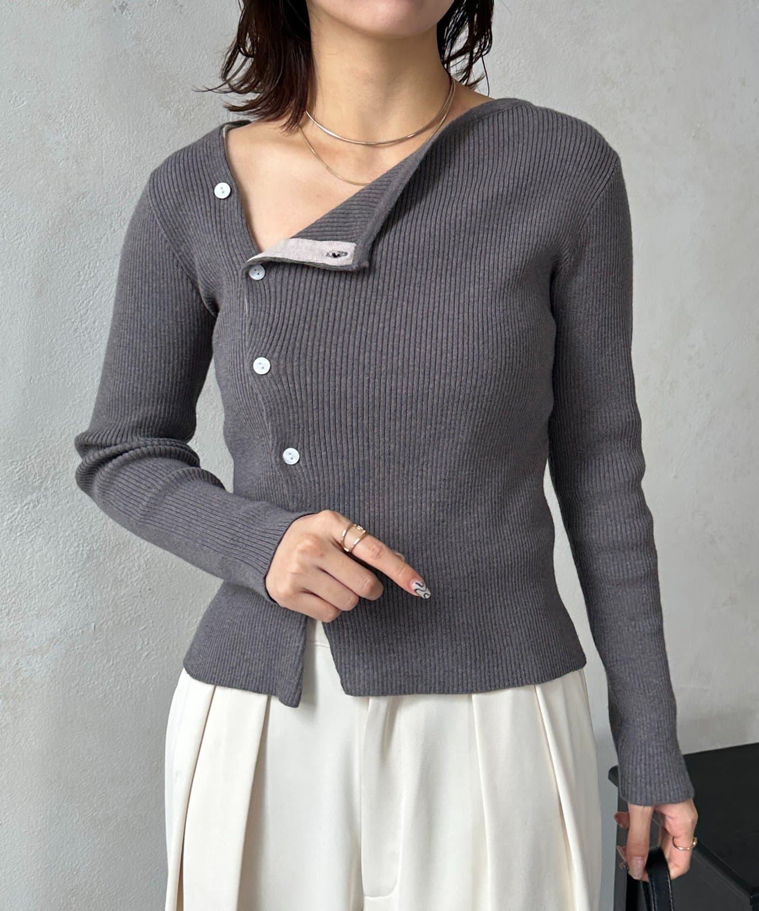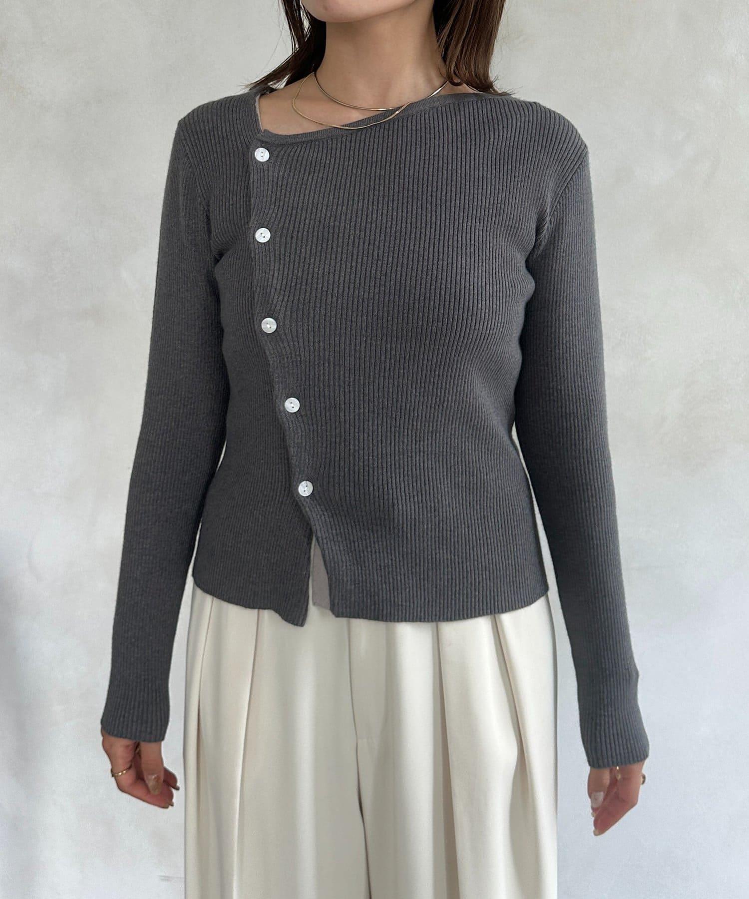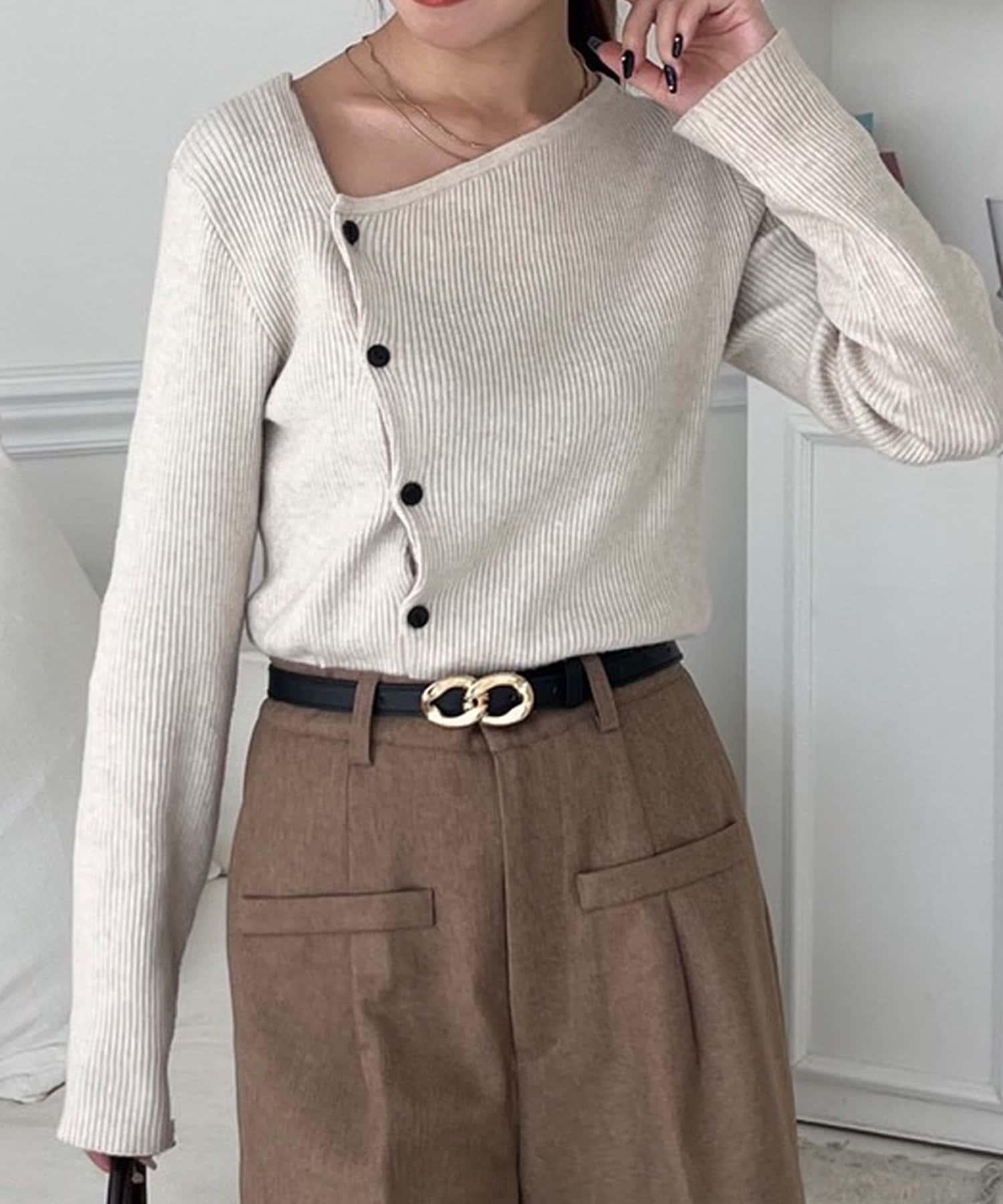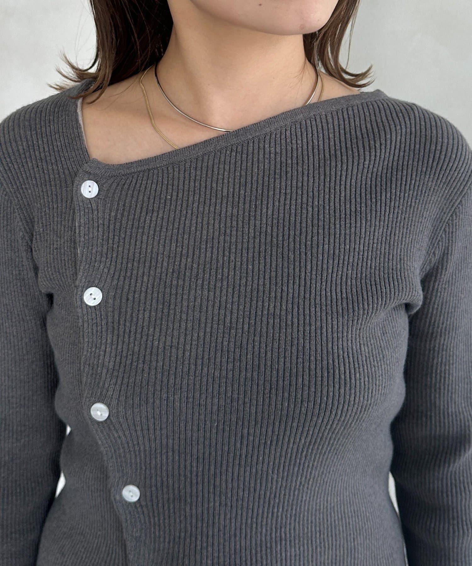 不對稱領口紐扣羅紋針織衫