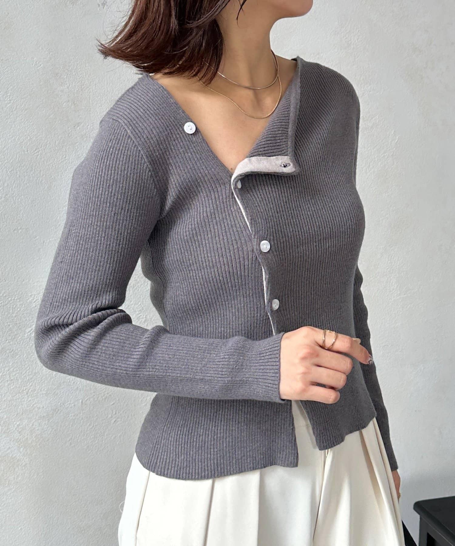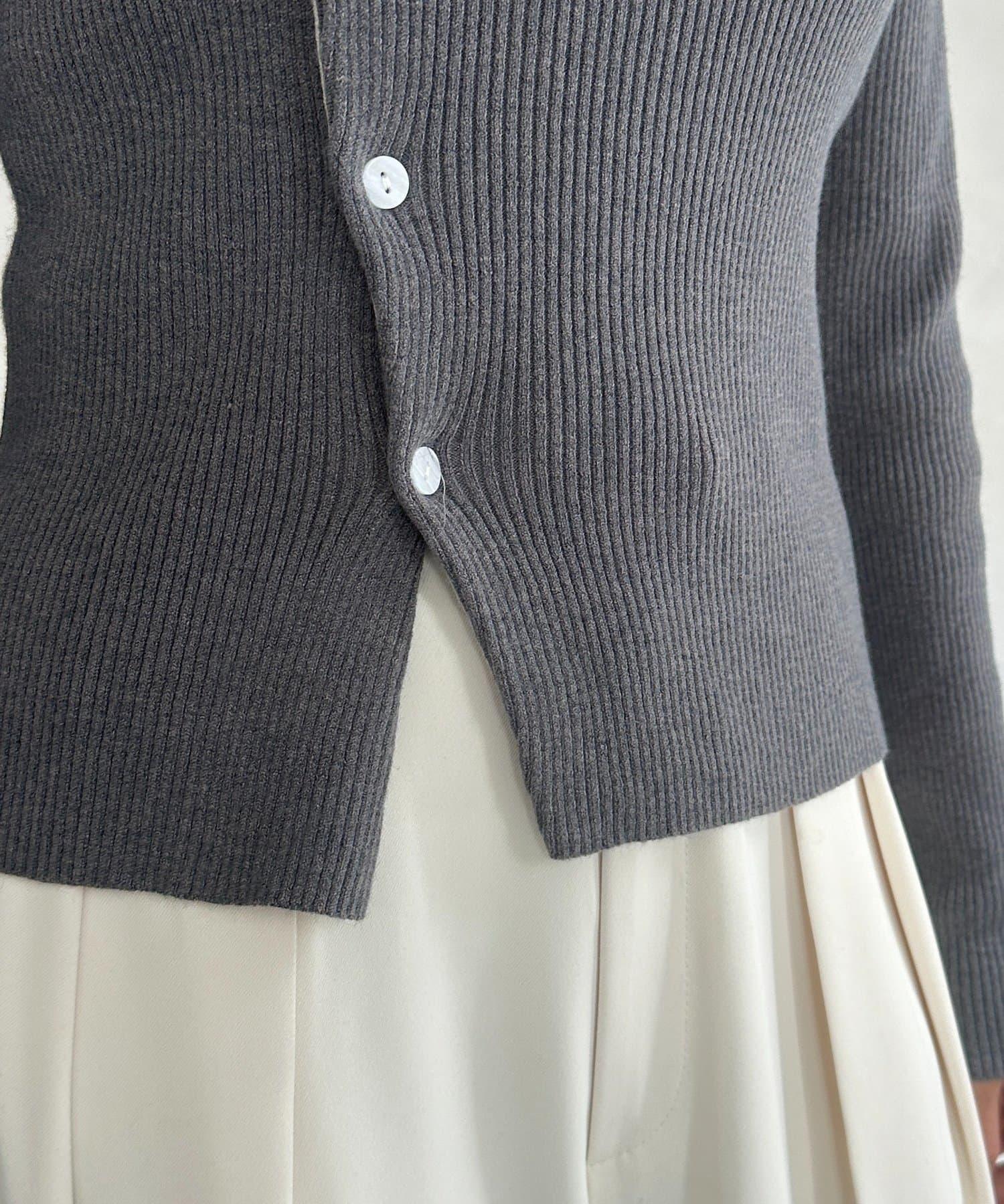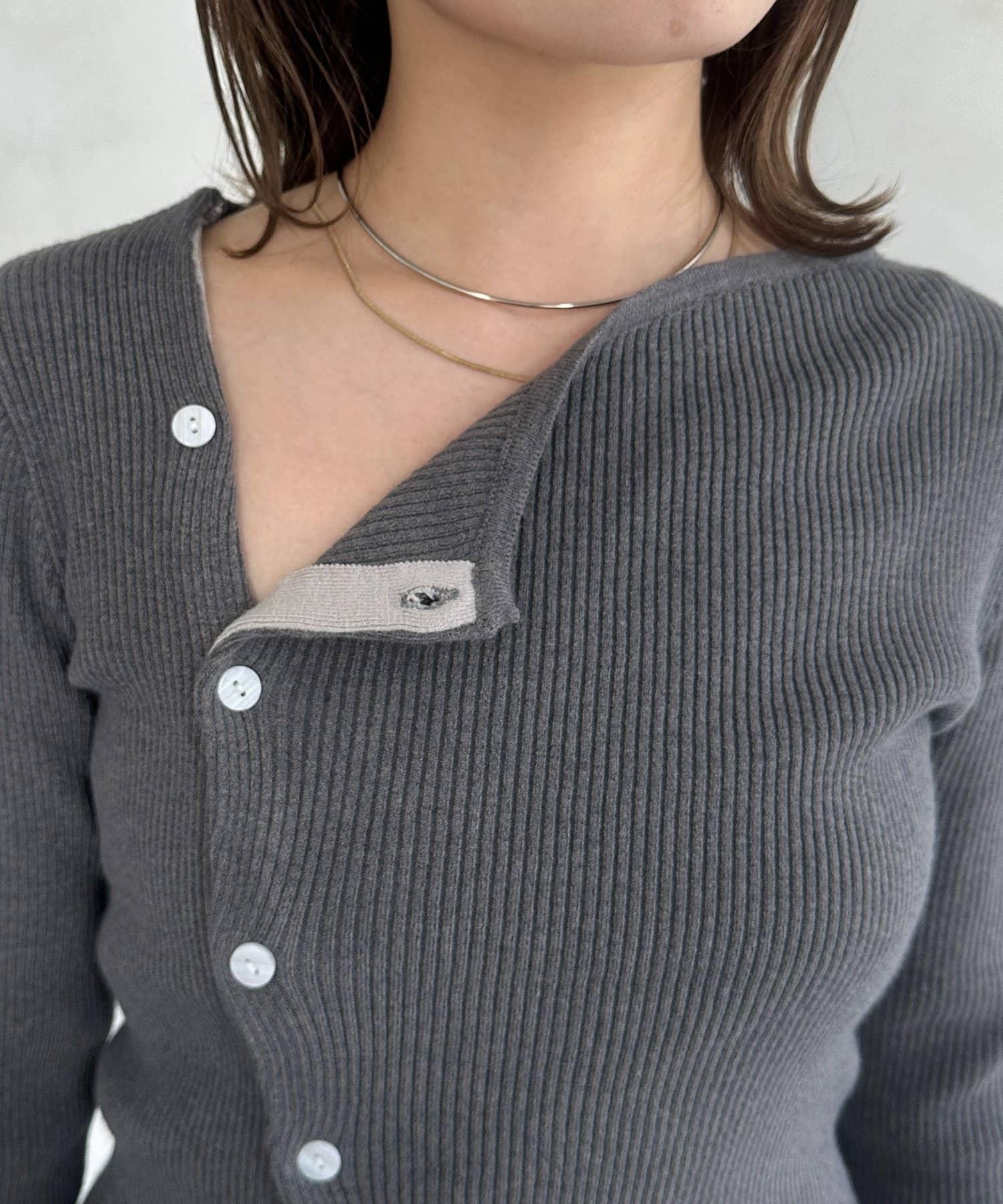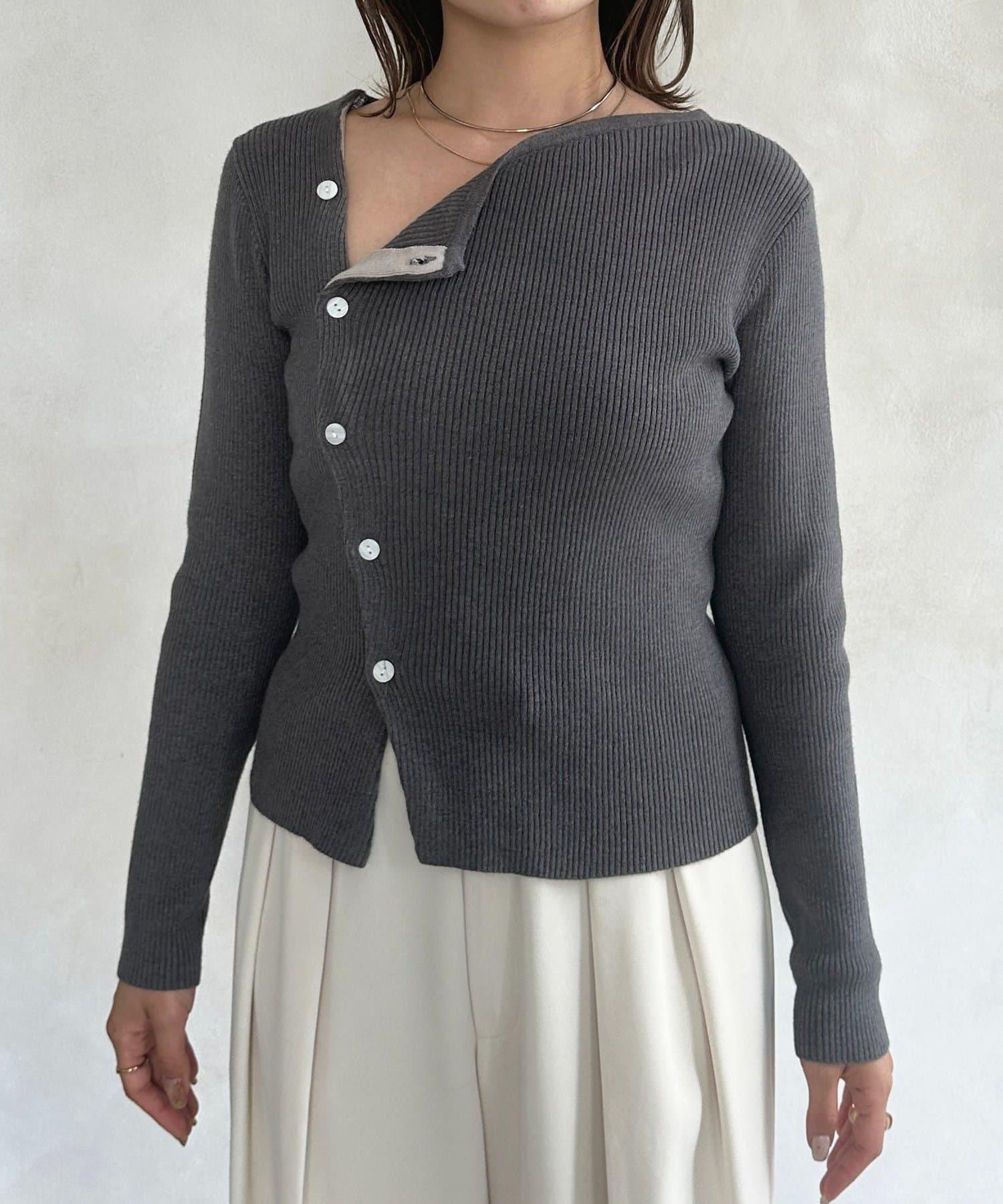 不對稱領口紐扣羅紋針織衫