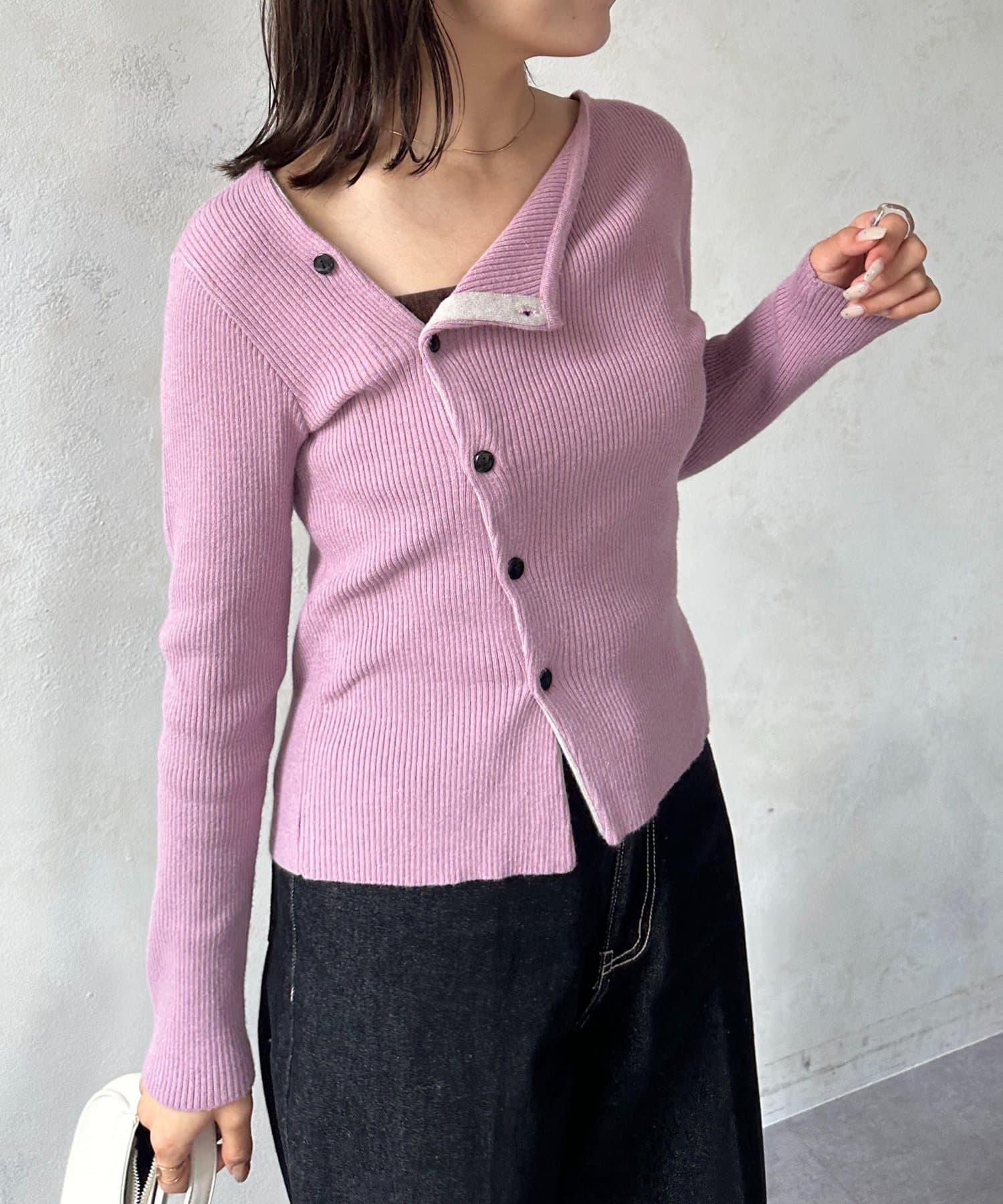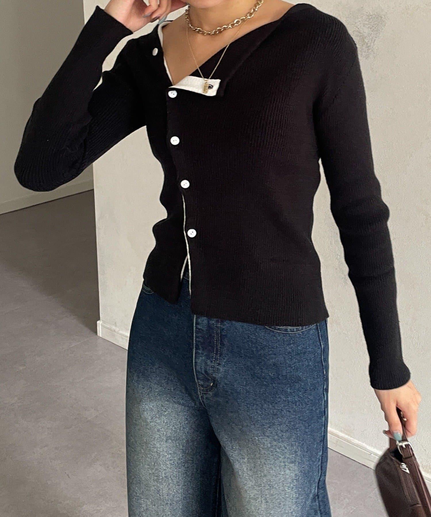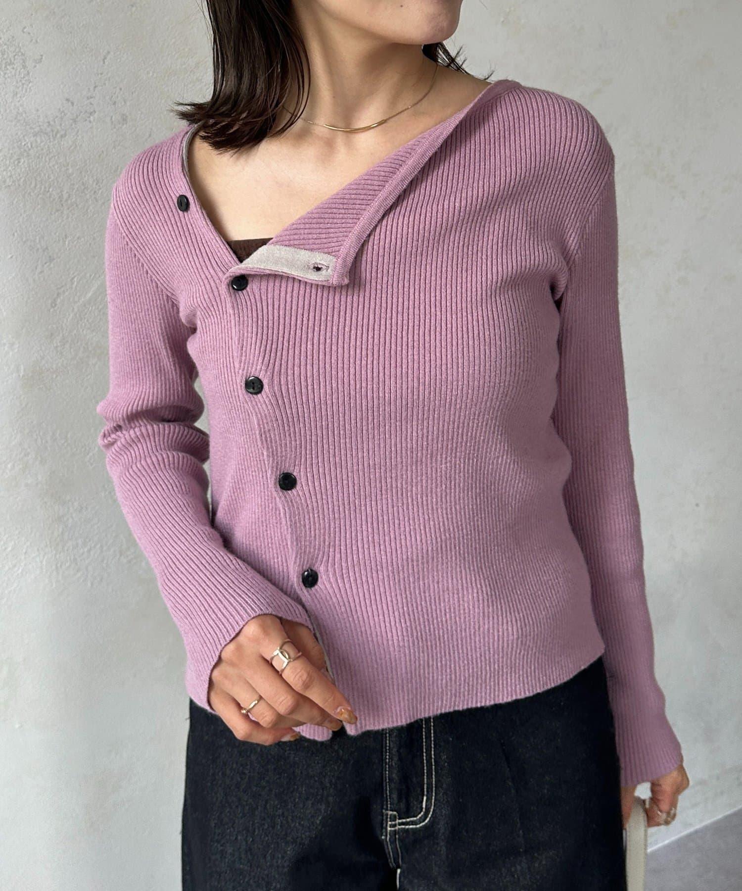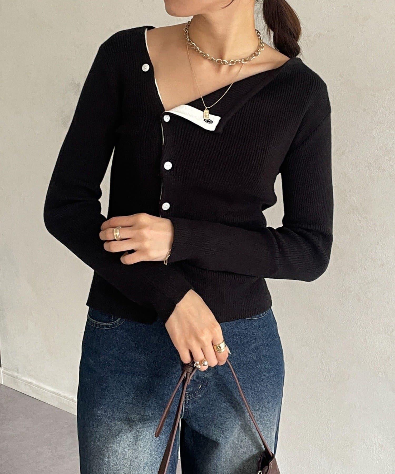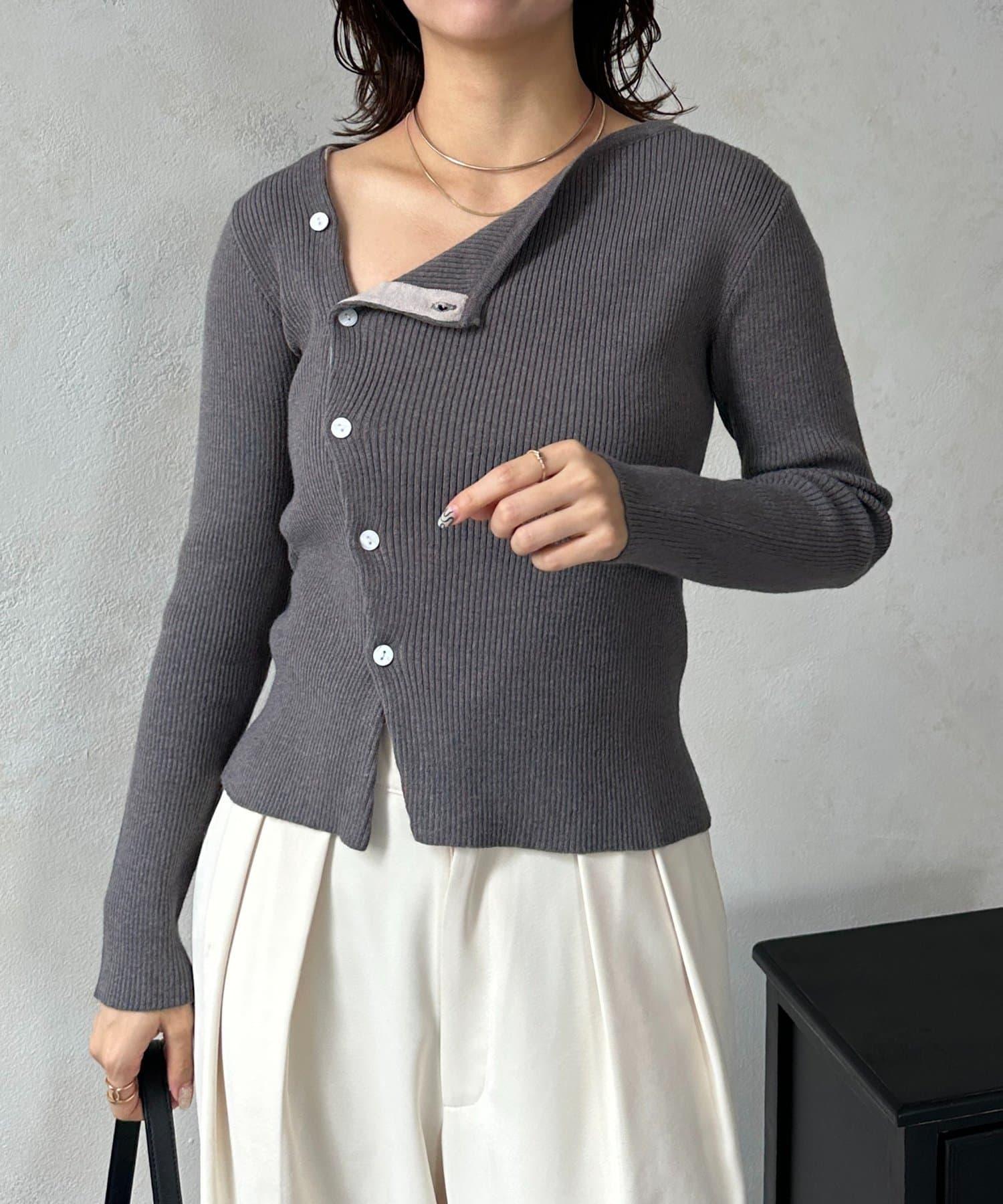 不對稱領口紐扣羅紋針織衫