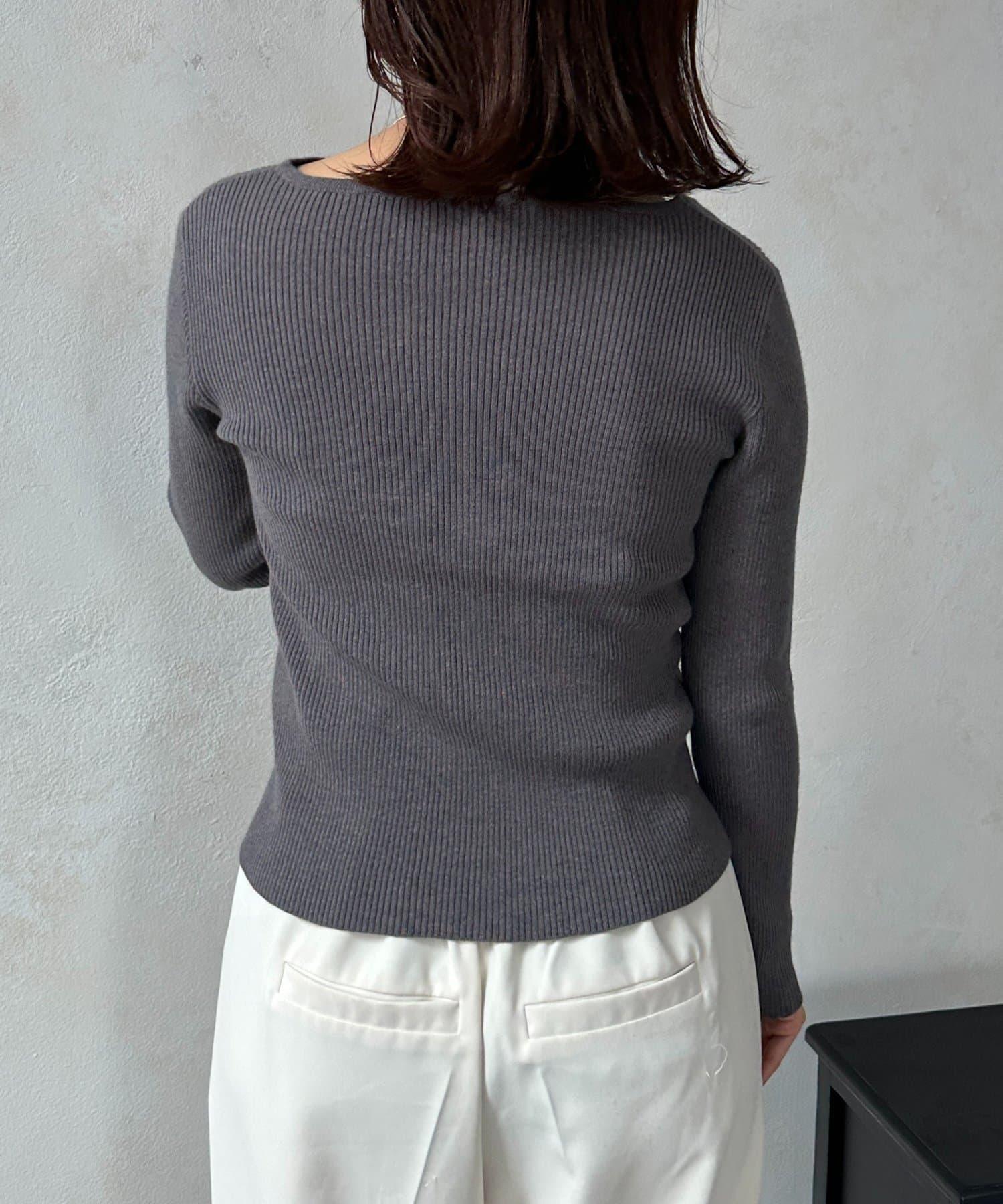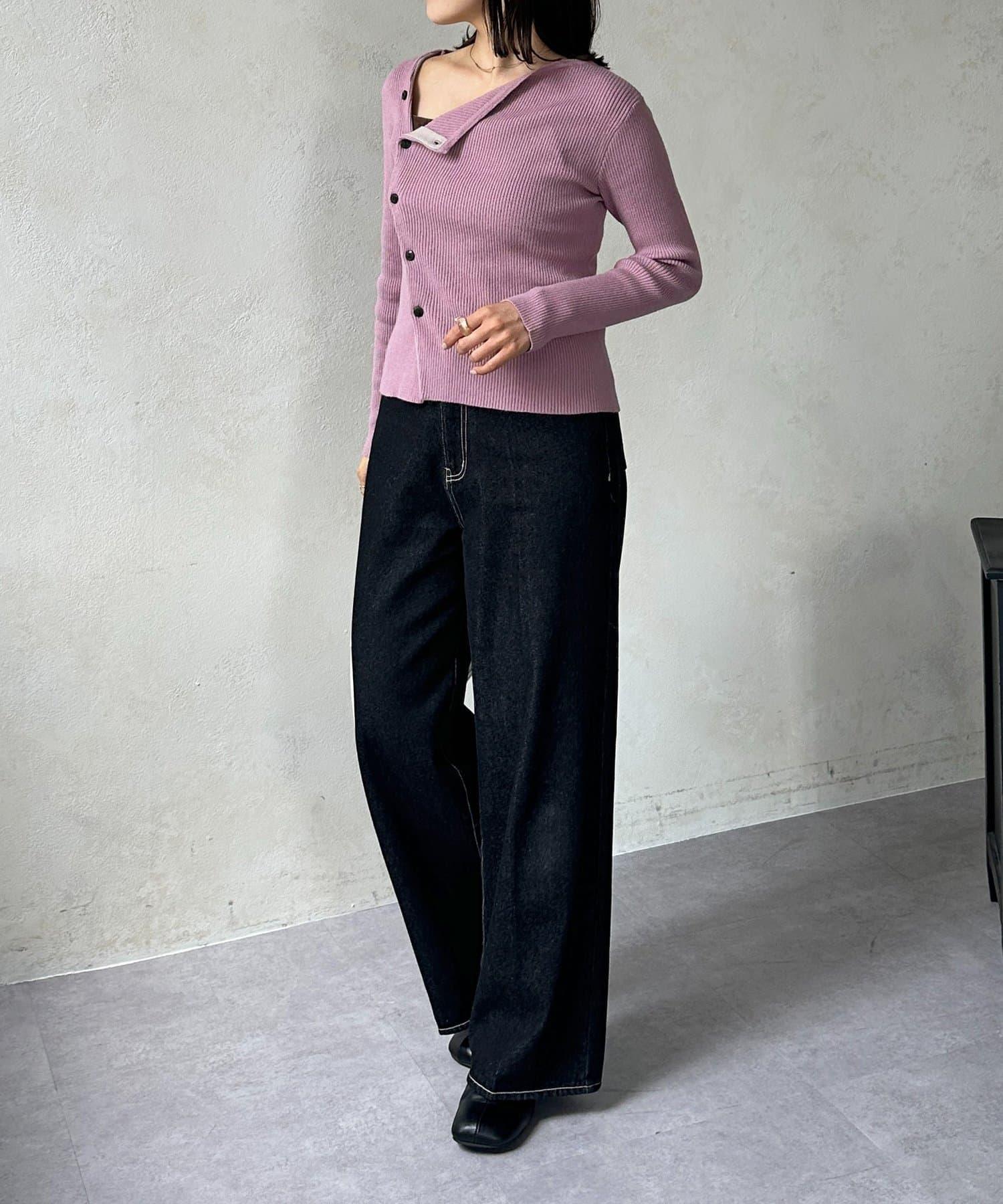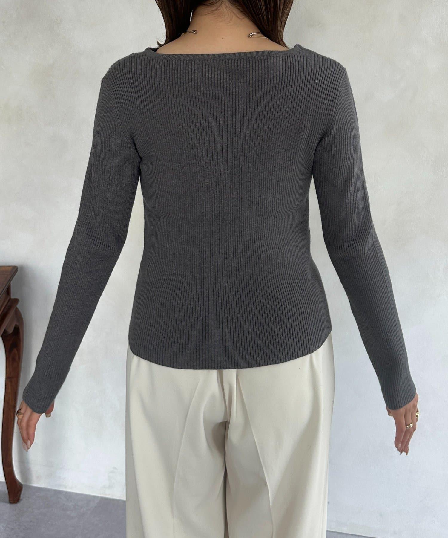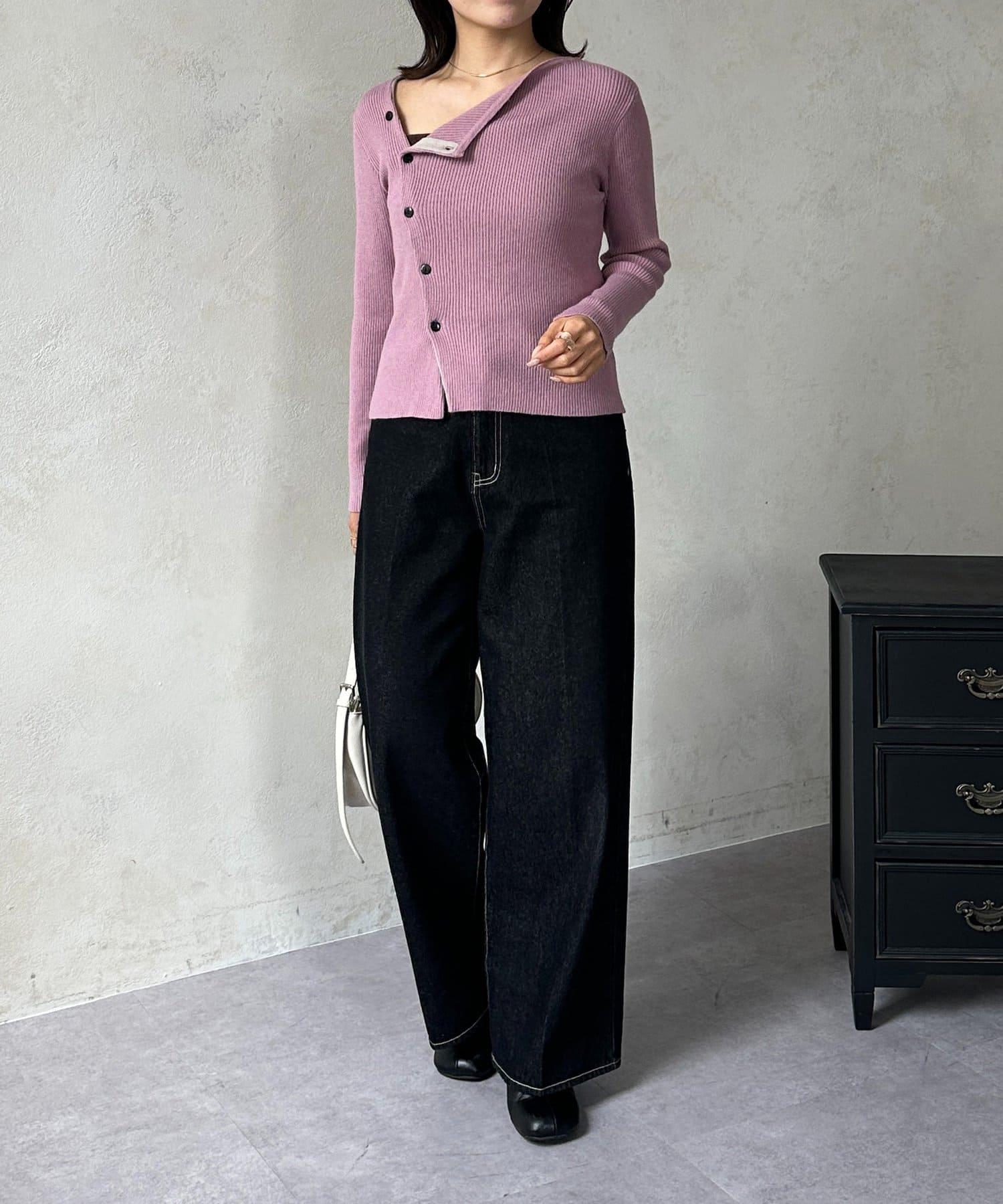 不對稱領口紐扣羅紋針織衫