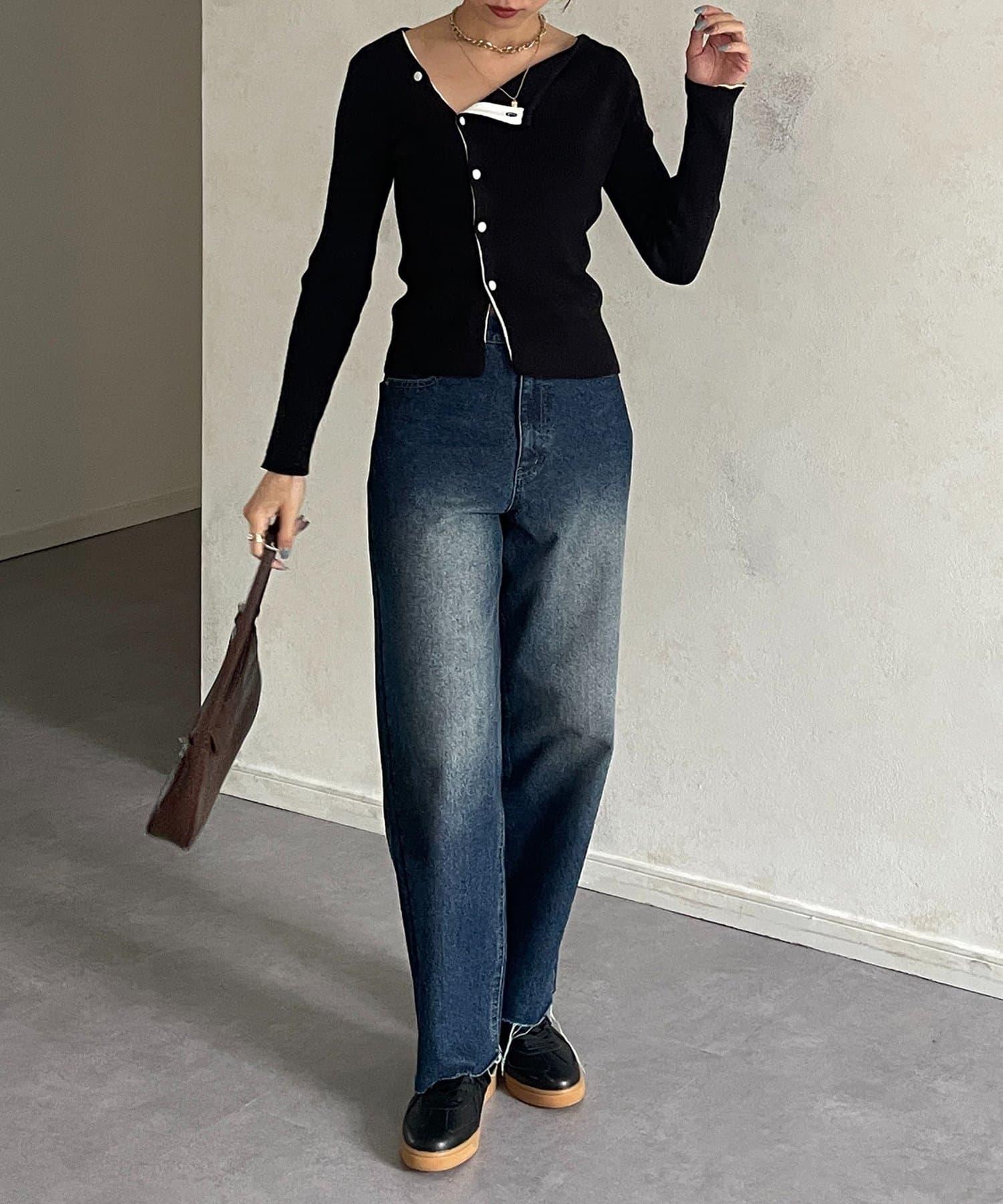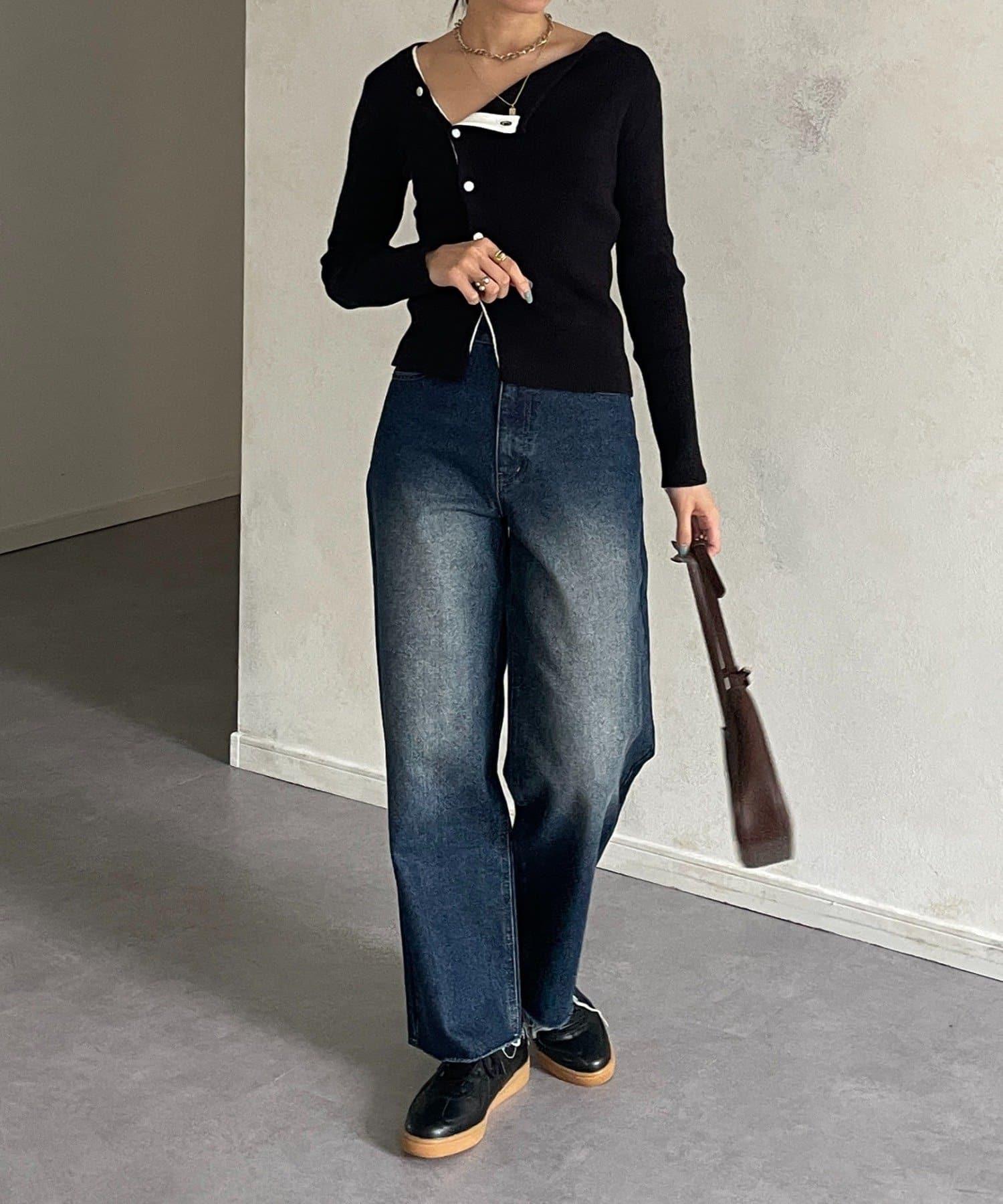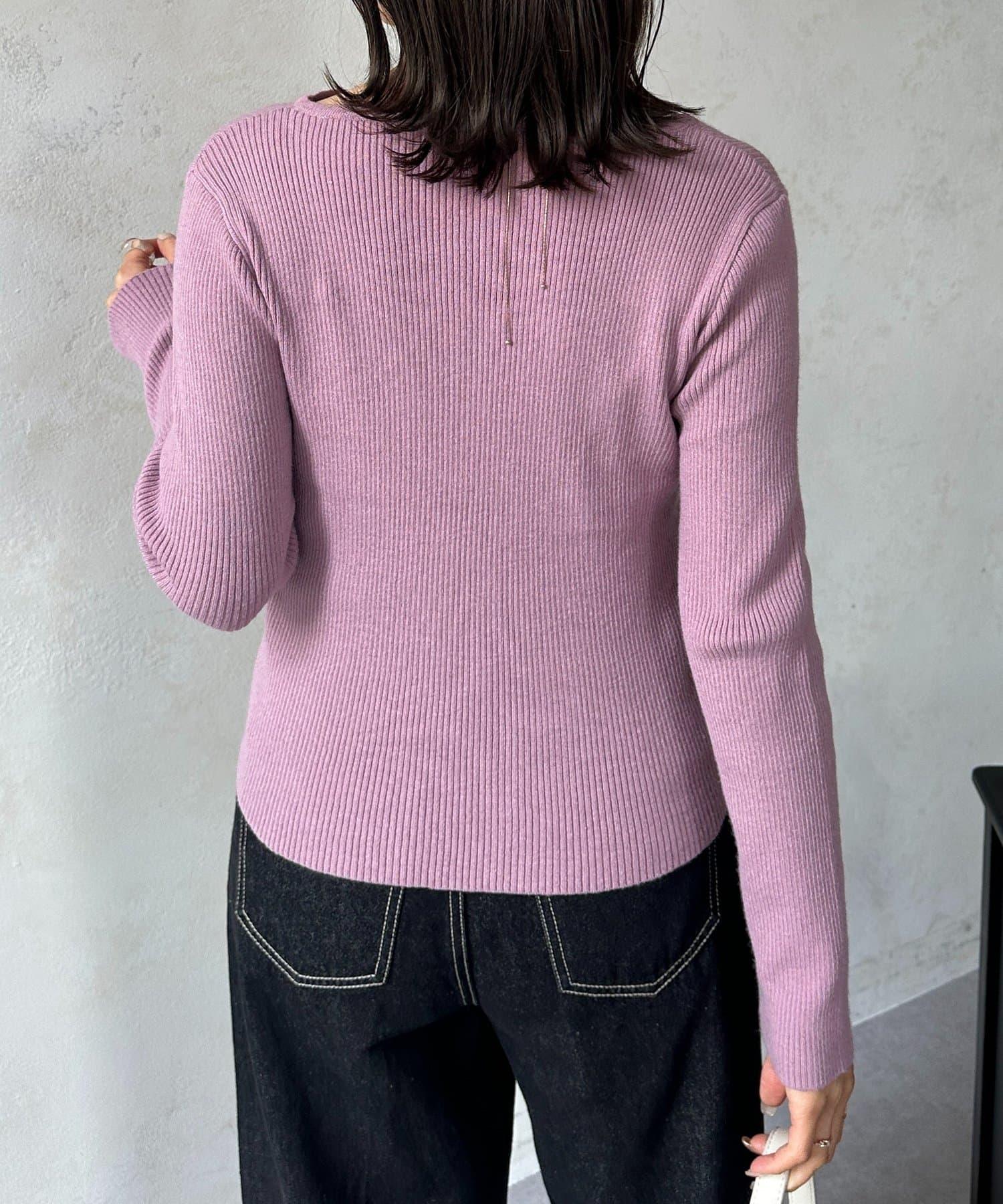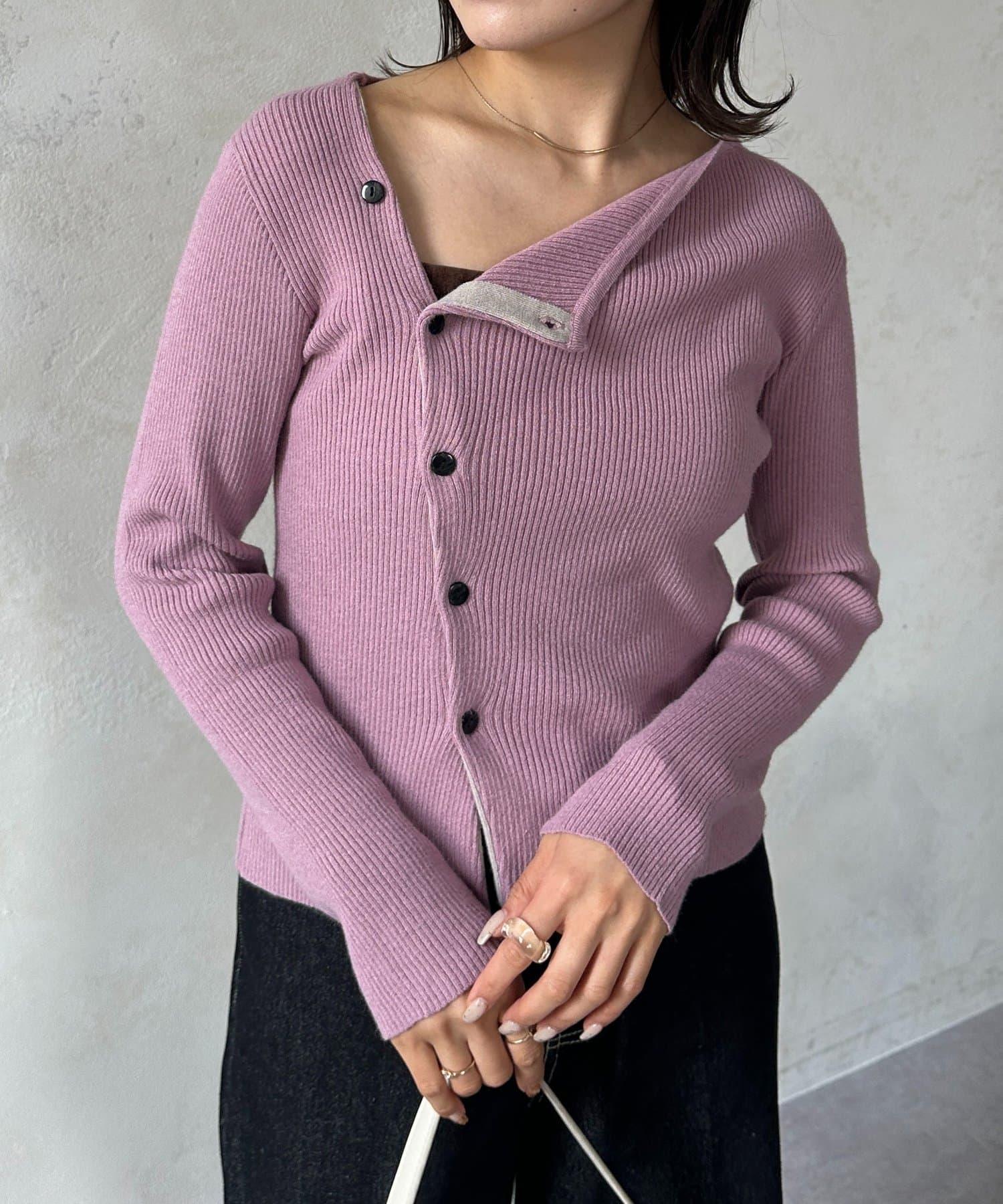 不對稱領口紐扣羅紋針織衫