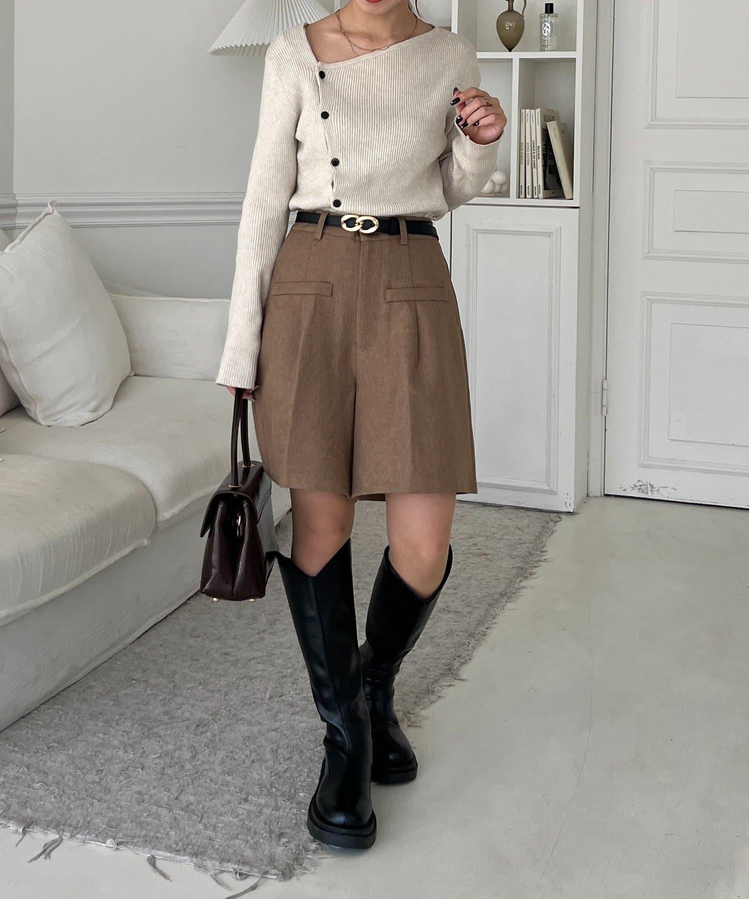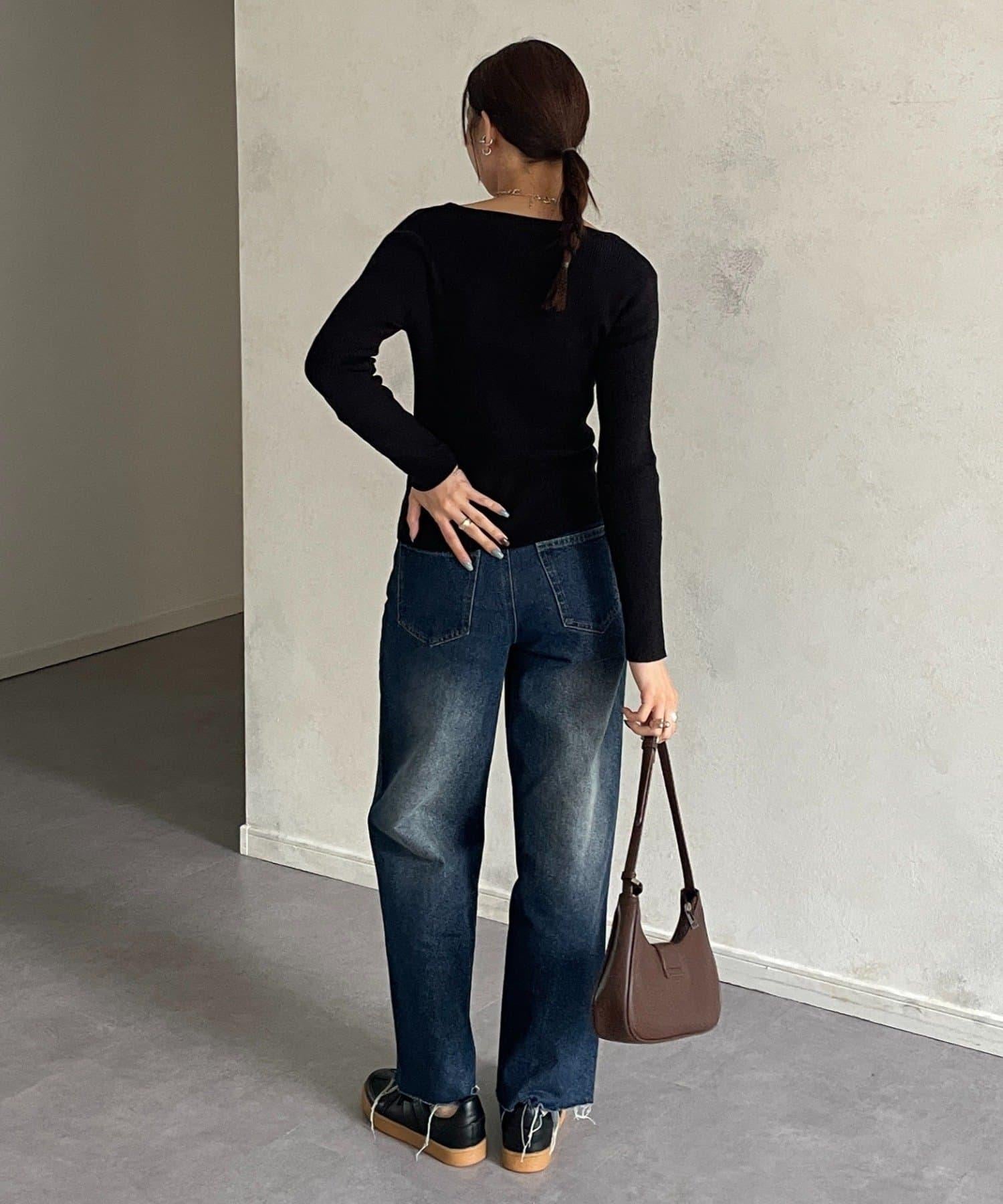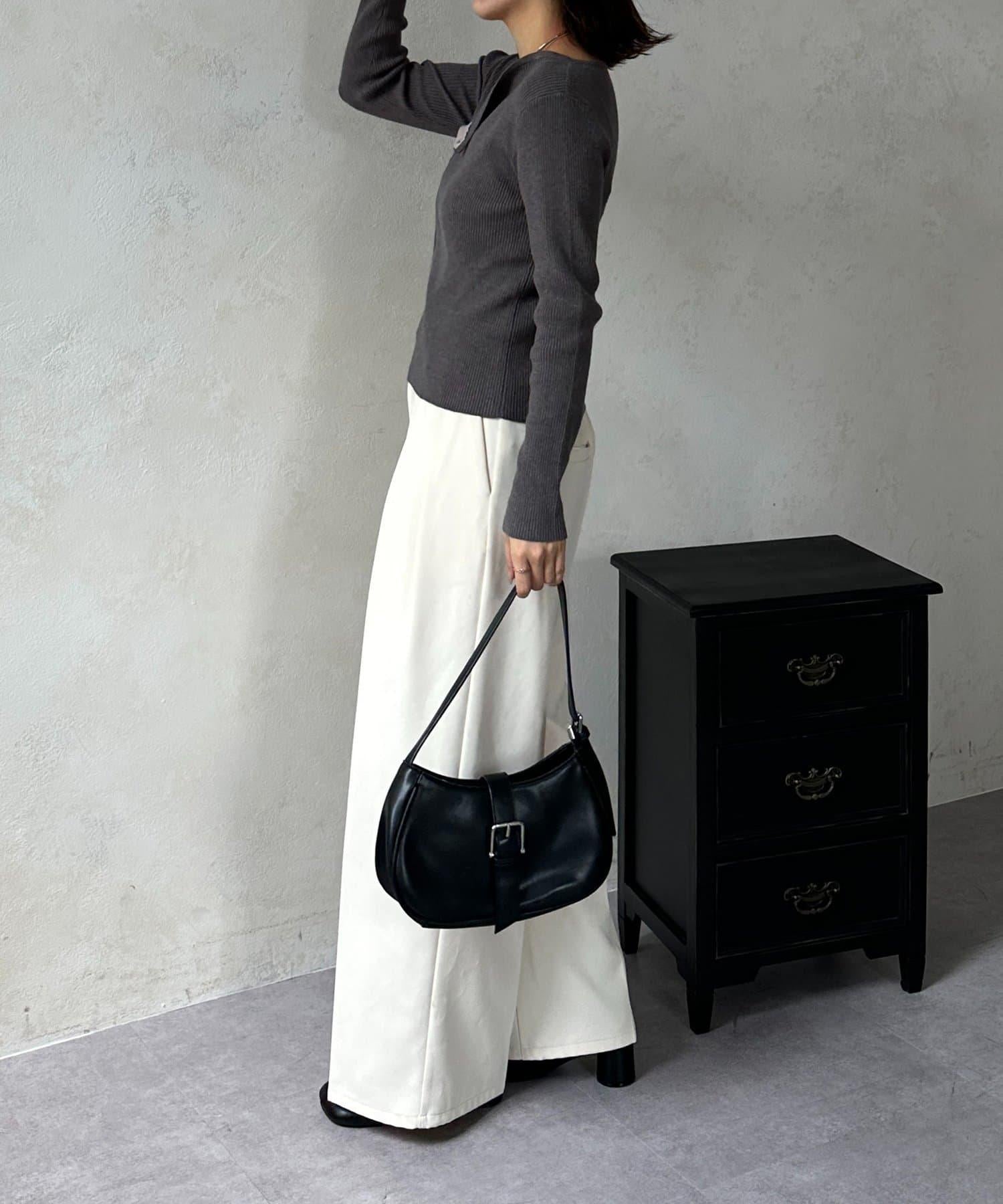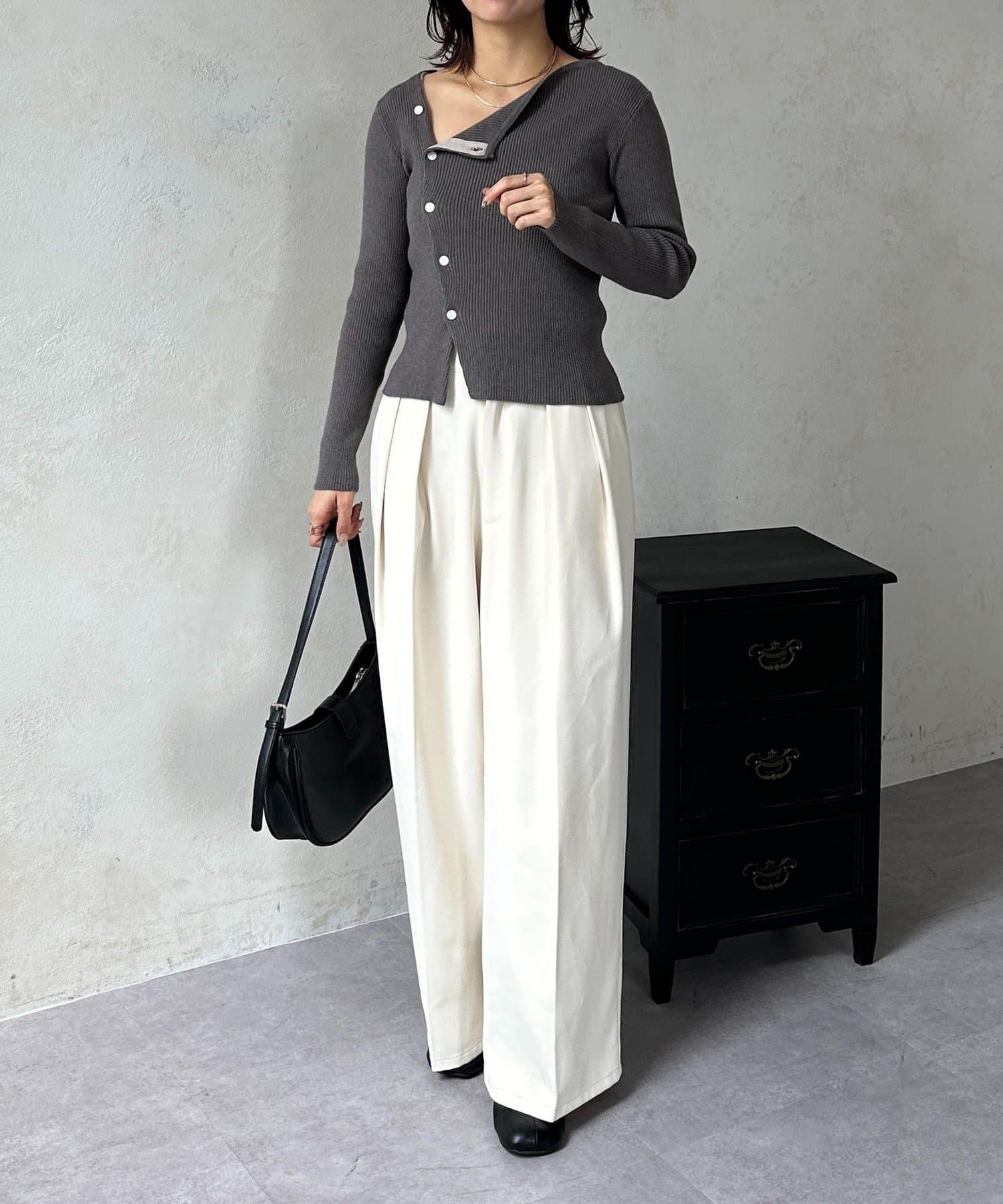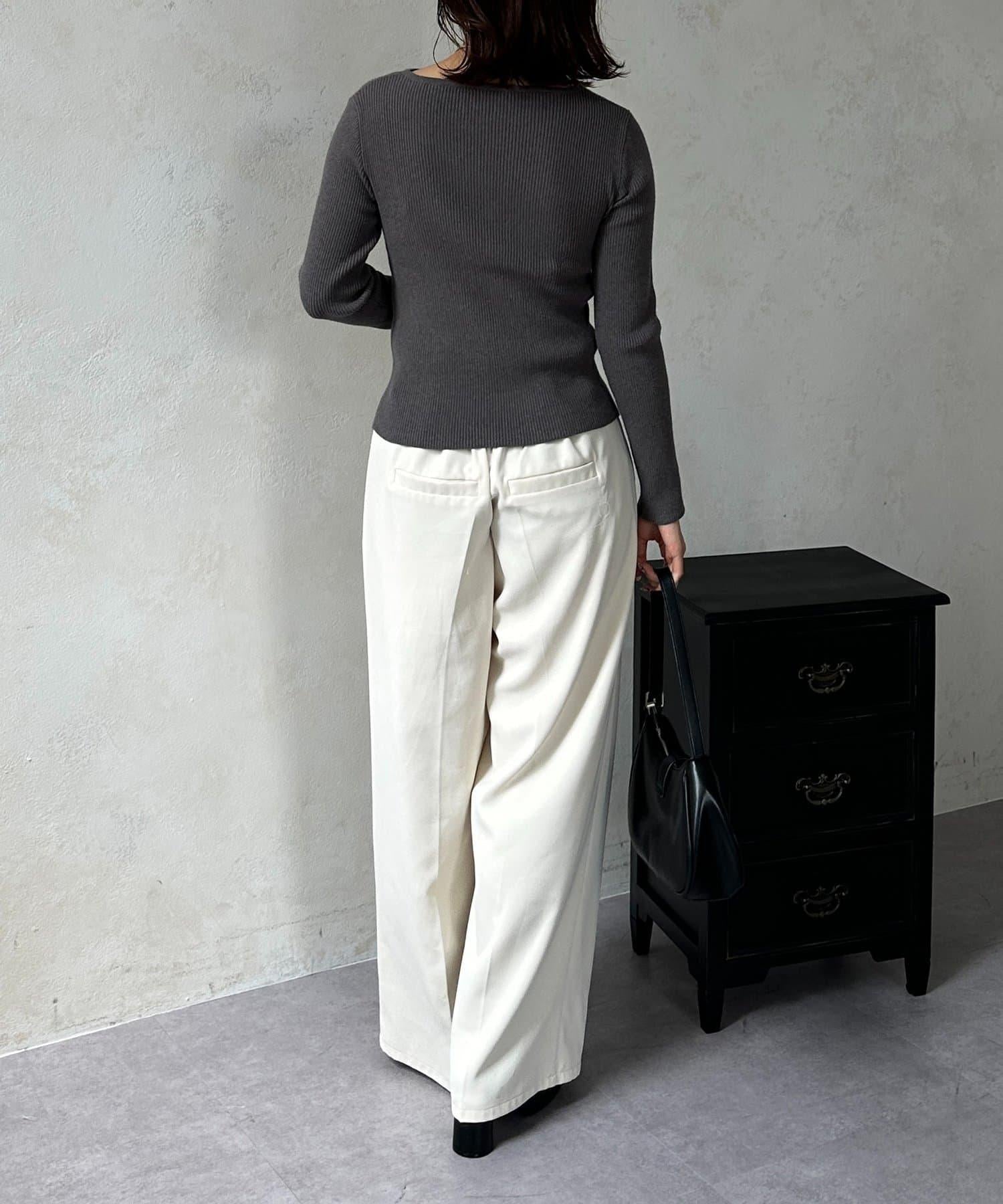 POINT] 不對稱領口,勾勒出優美的肩頸線條。
