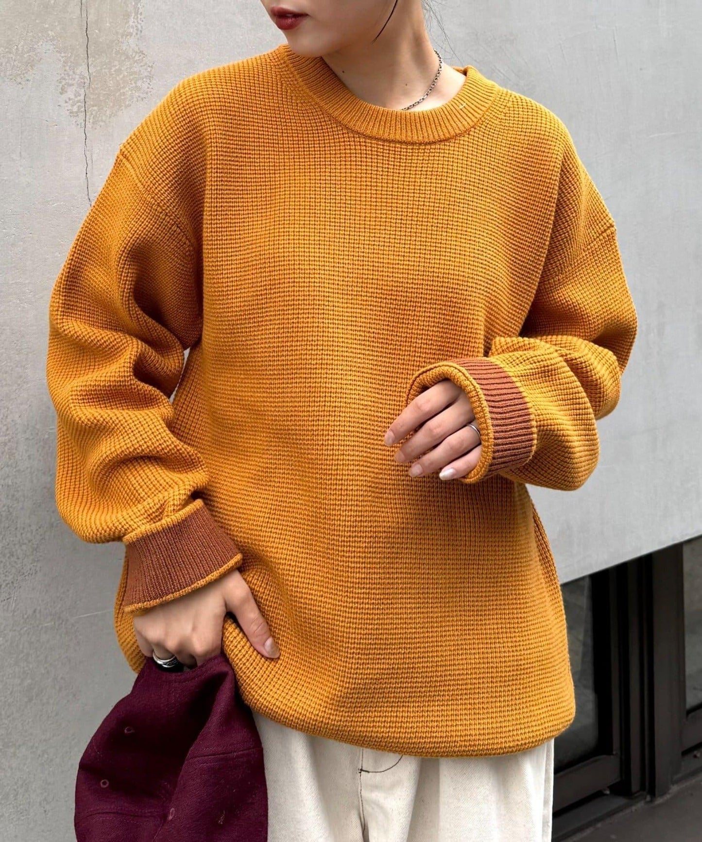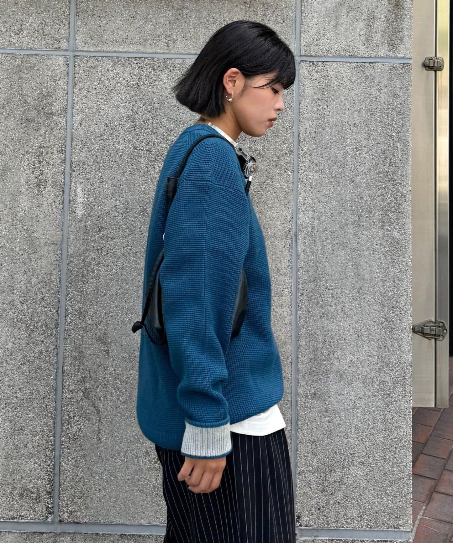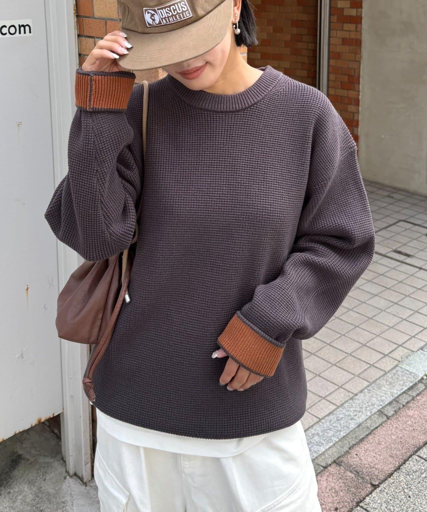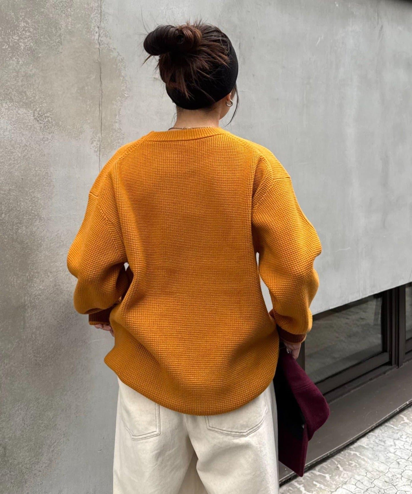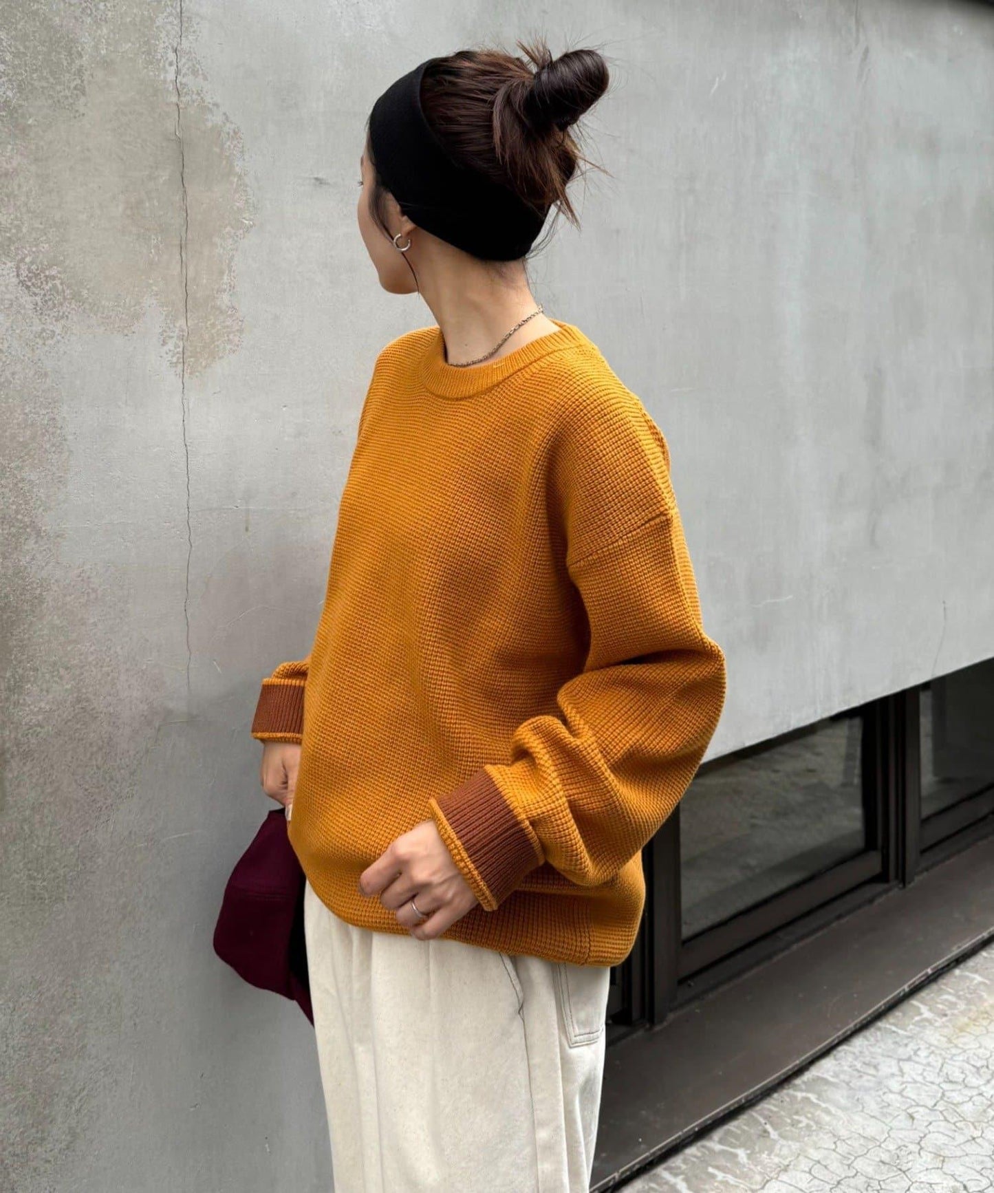 【不易變形・易於打理】修身運動風華夫格針織套頭衫
