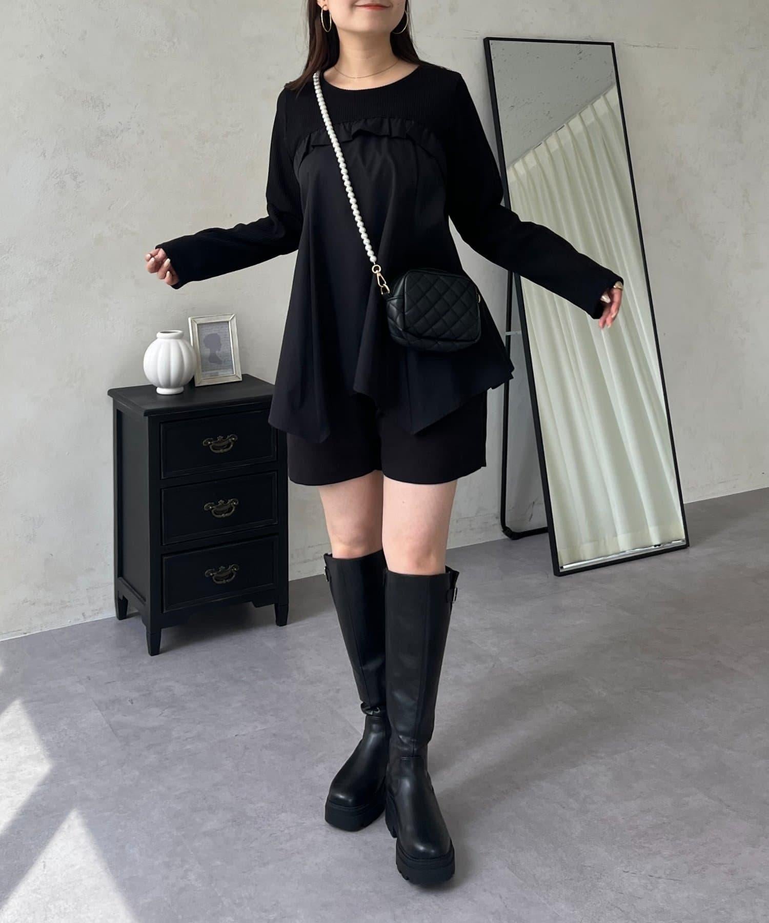 荷葉邊具有襯衫面料的彈力感,給人舒適的印象。