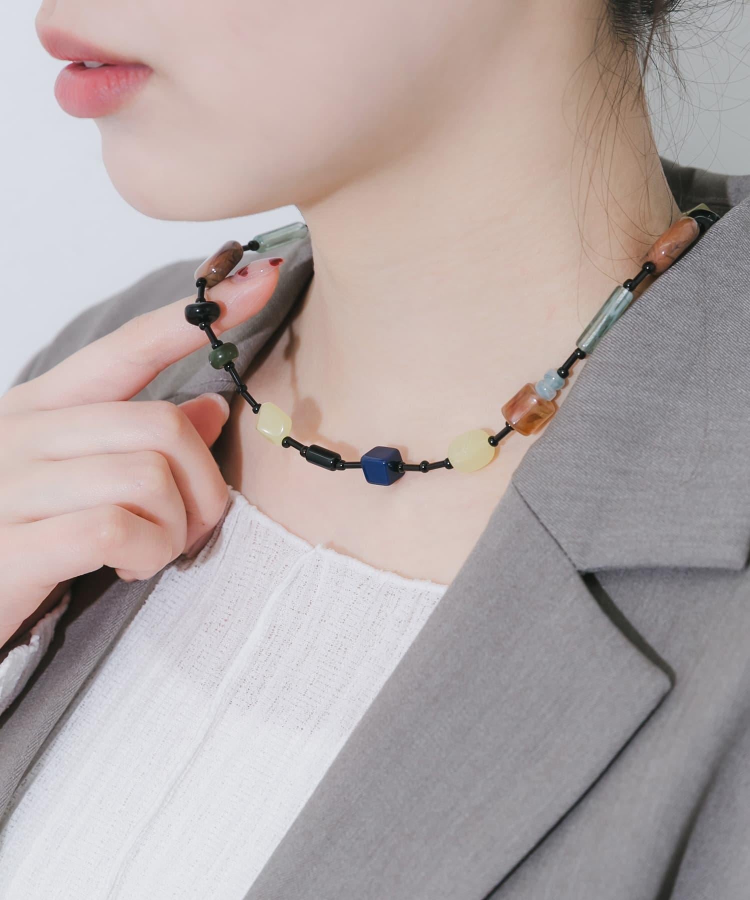 項鍊以沉穩的大地色為基調,配以鮮豔的藍色和黃色點綴,雖然使用了多種顏色,卻給人成熟穩重的印象。