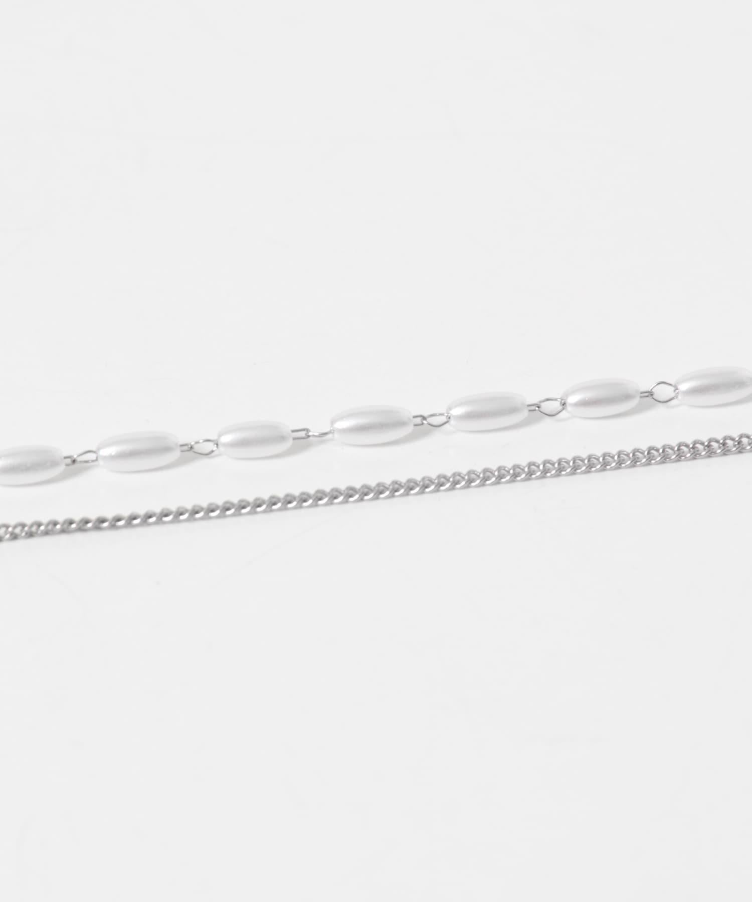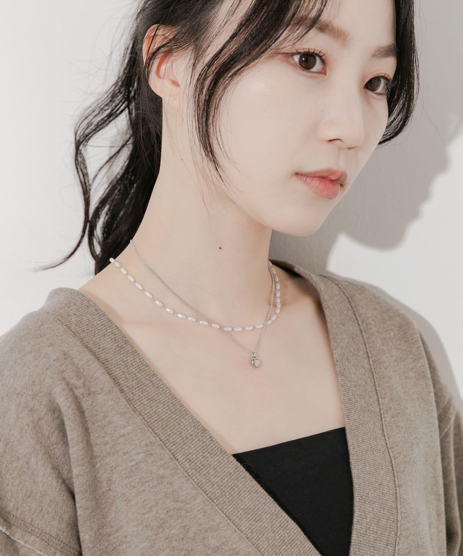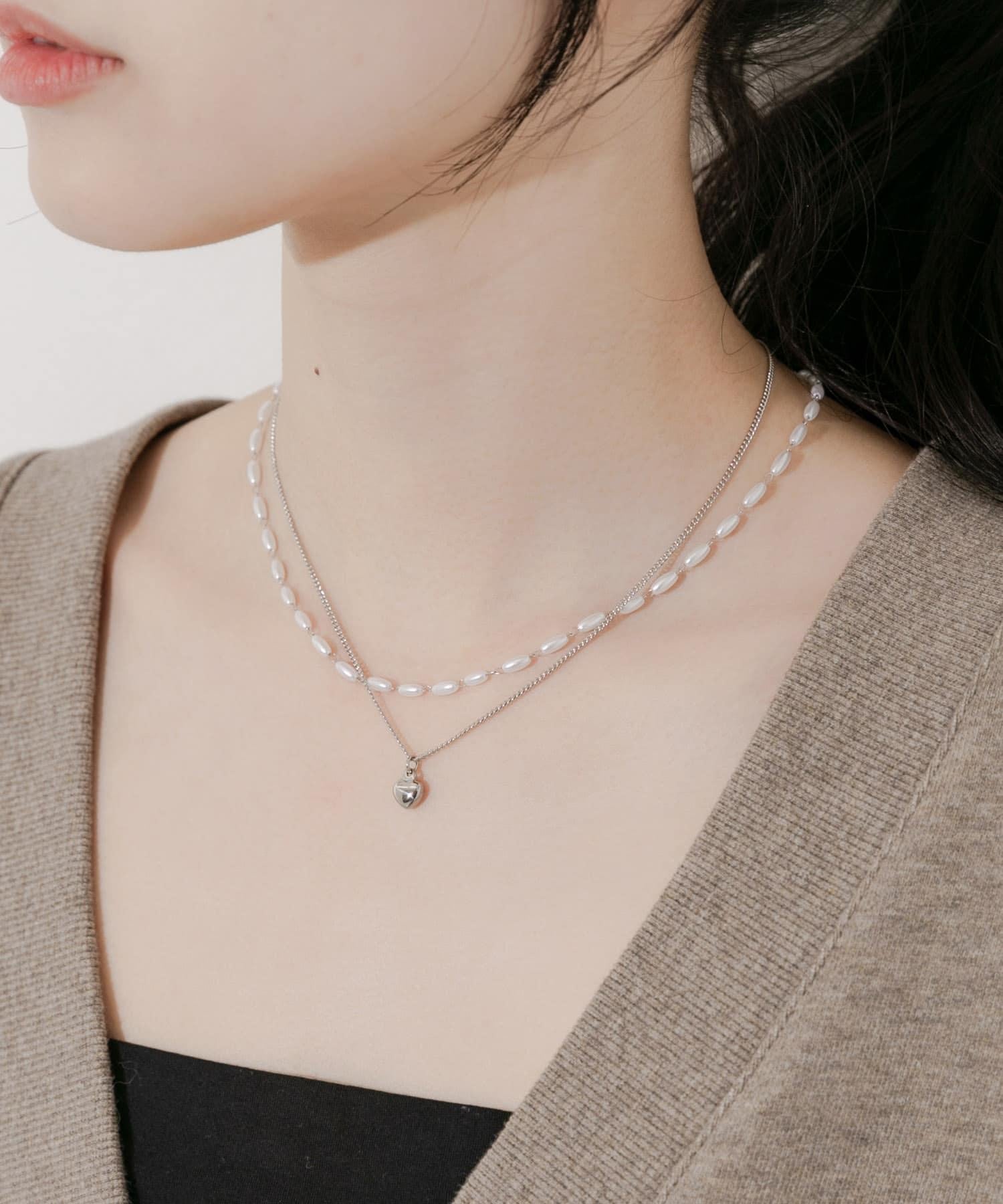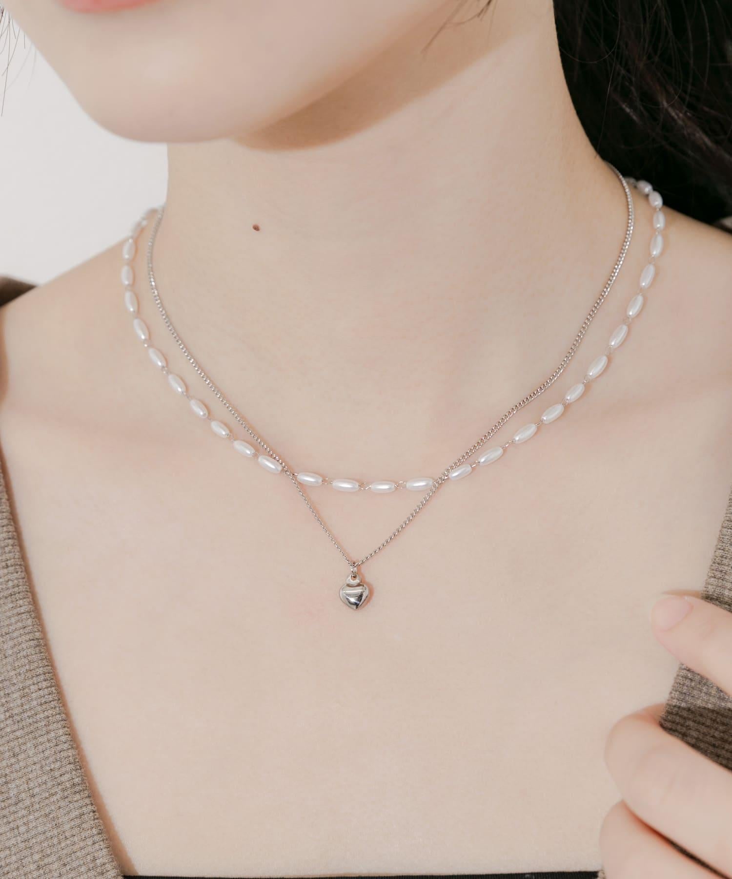 一套兩條項鍊,一條帶有厚重的圓形迷你心形吊飾,另一條帶有一系列橢圓形珍珠。