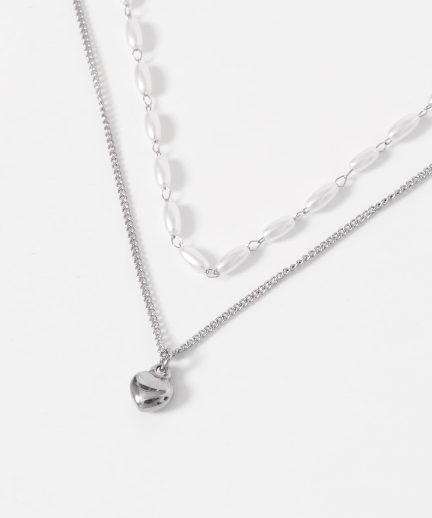 不鏽鋼愛心吊墜珍珠雙層套裝項鍊