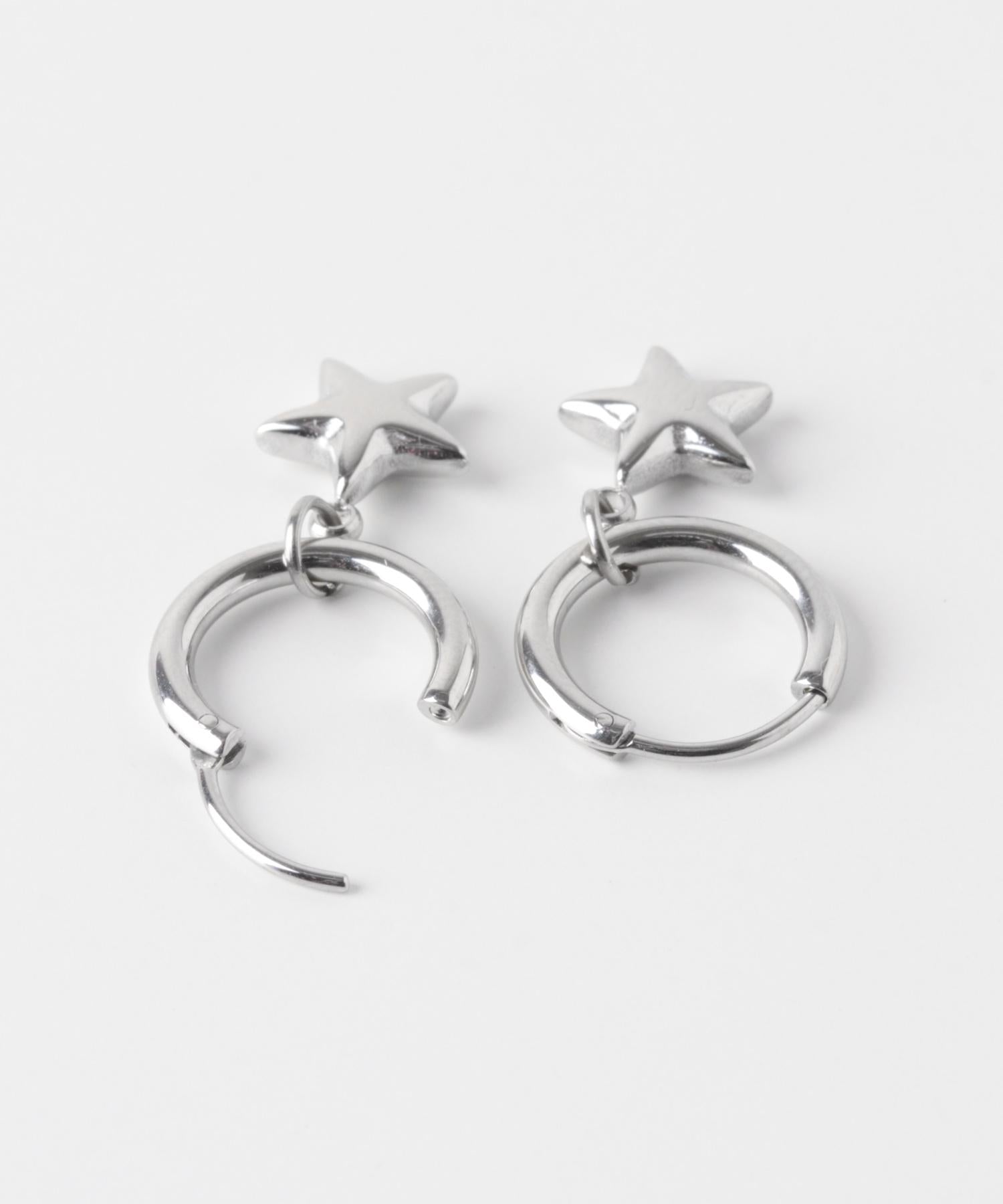 立體的星星吊飾鑲嵌在簡單的環形耳環上,非常吸引人。