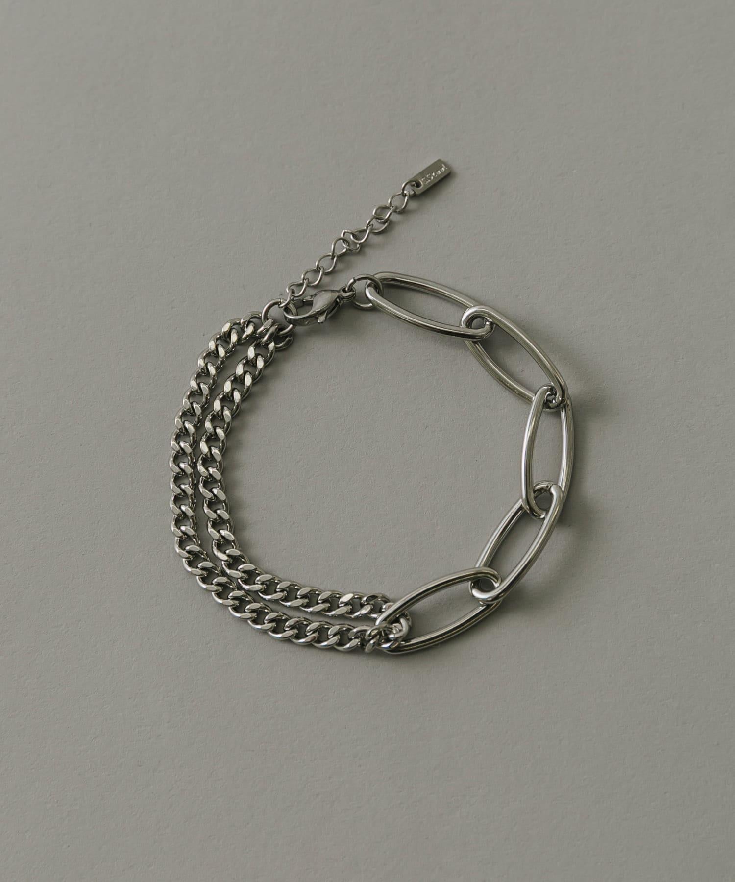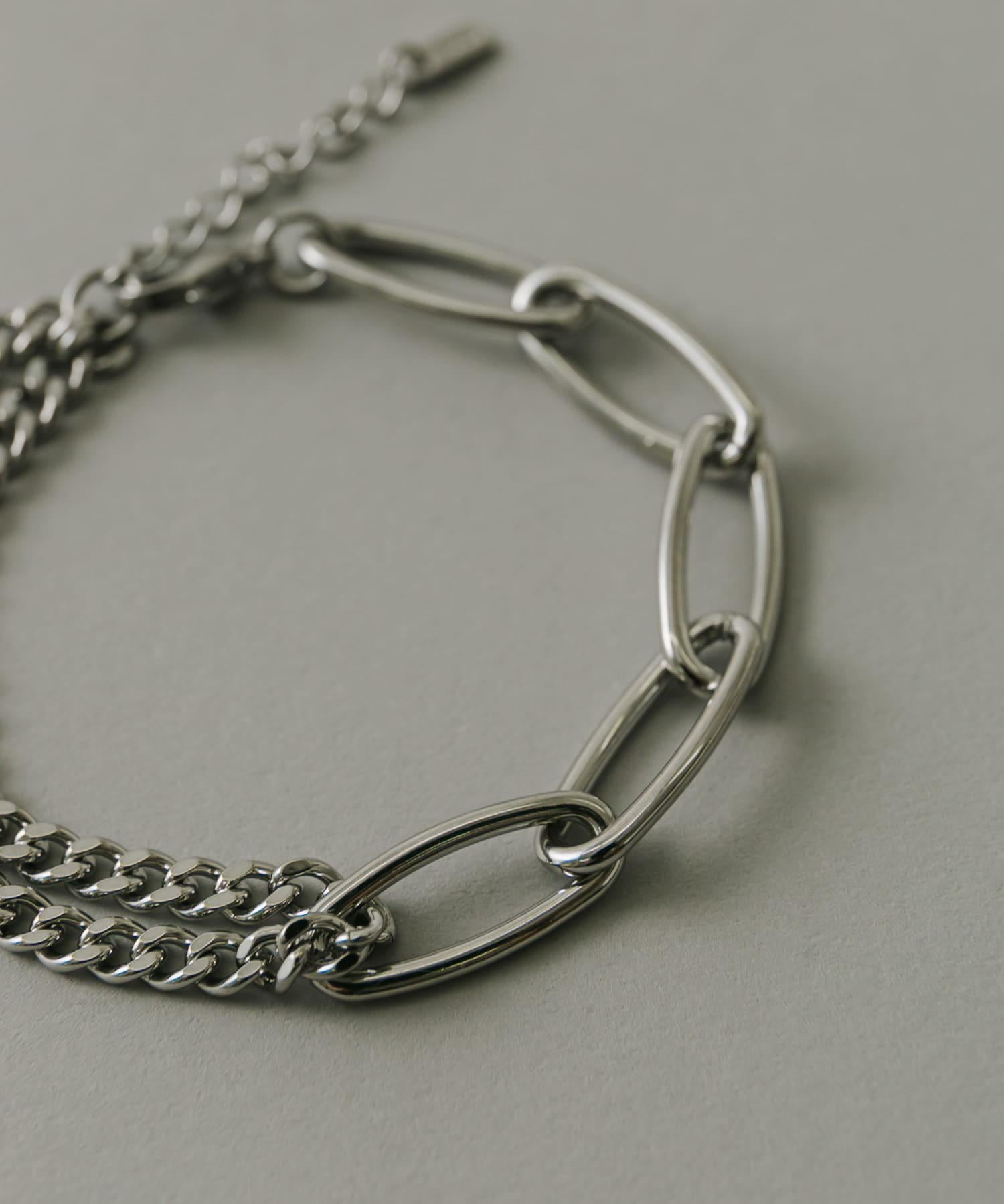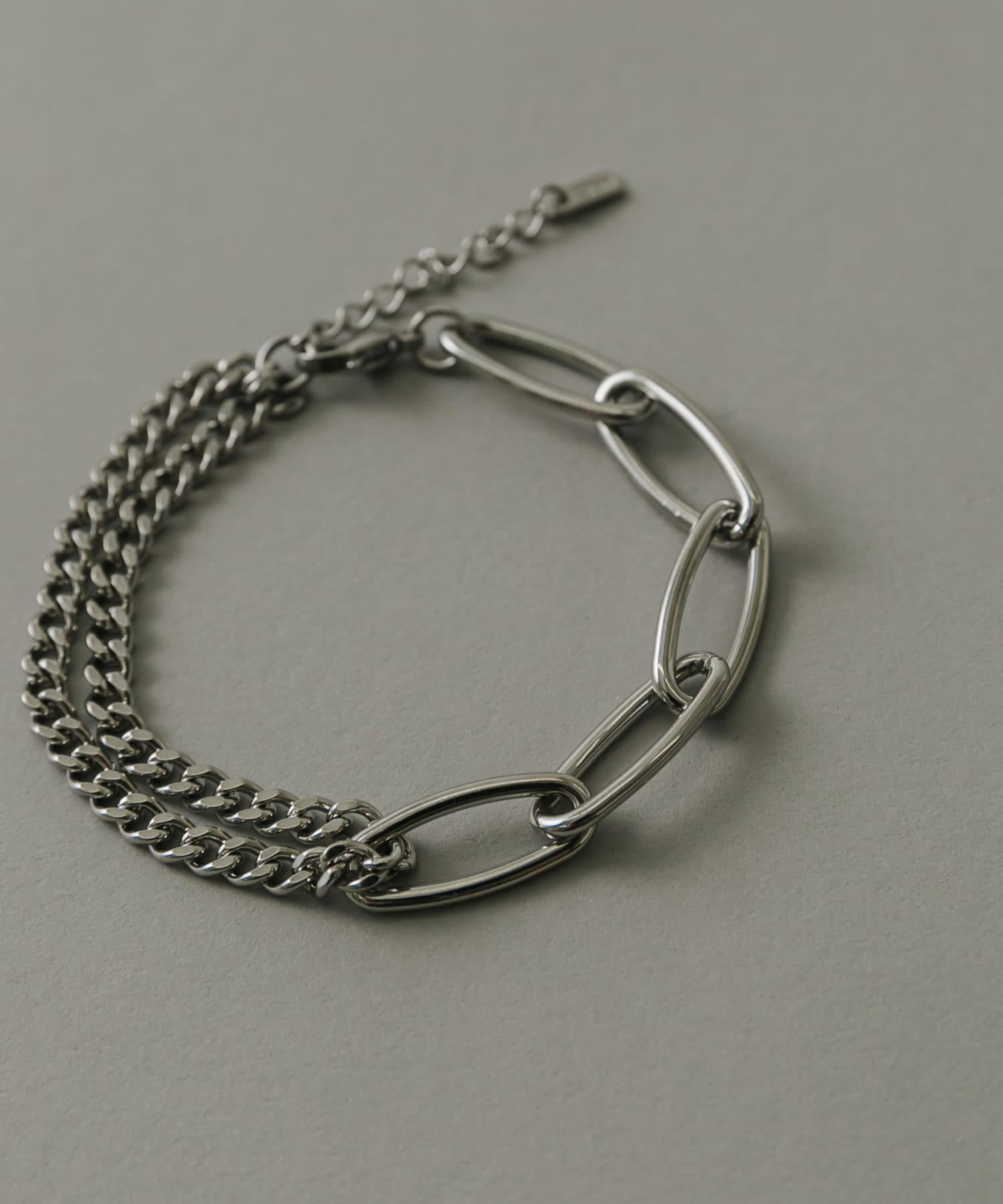 將不同粗細和形狀的鏈條組合在一起的手鍊,具有很高的設計品質。