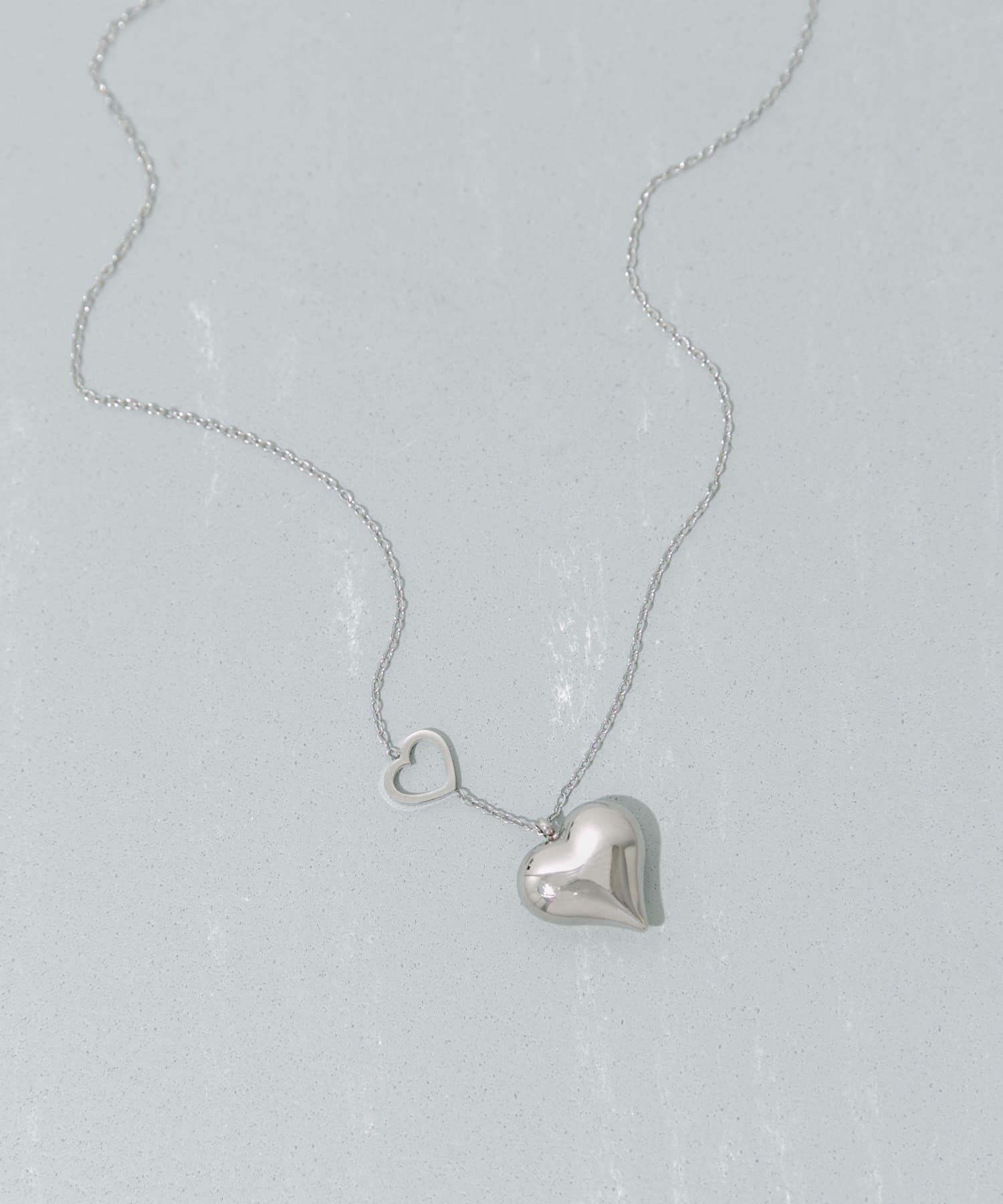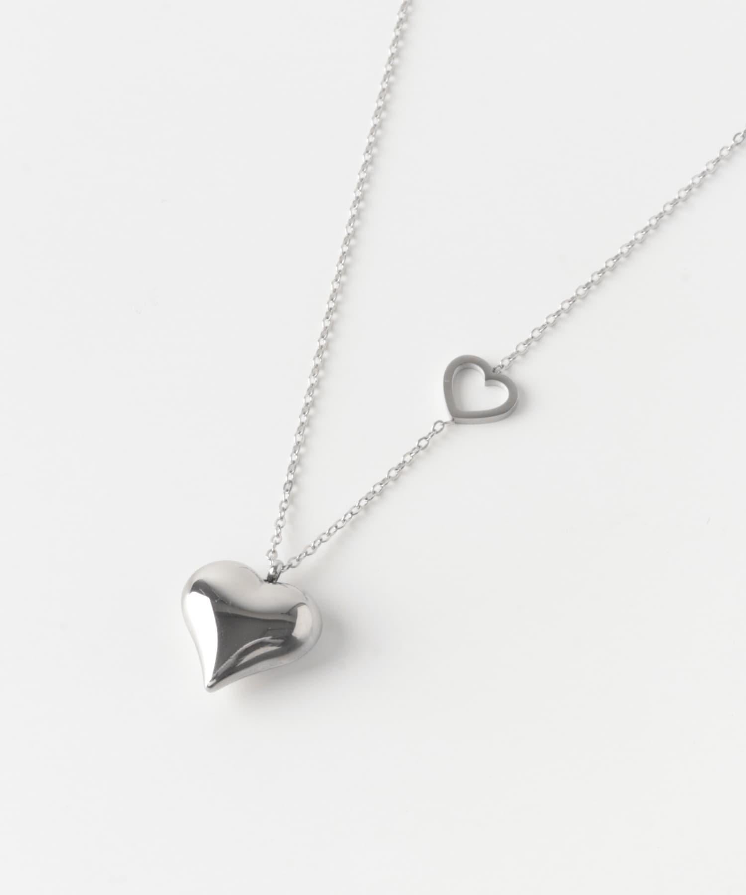 項鍊上有一系列立體心形圖案和線條細膩的鏤空心形圖案。