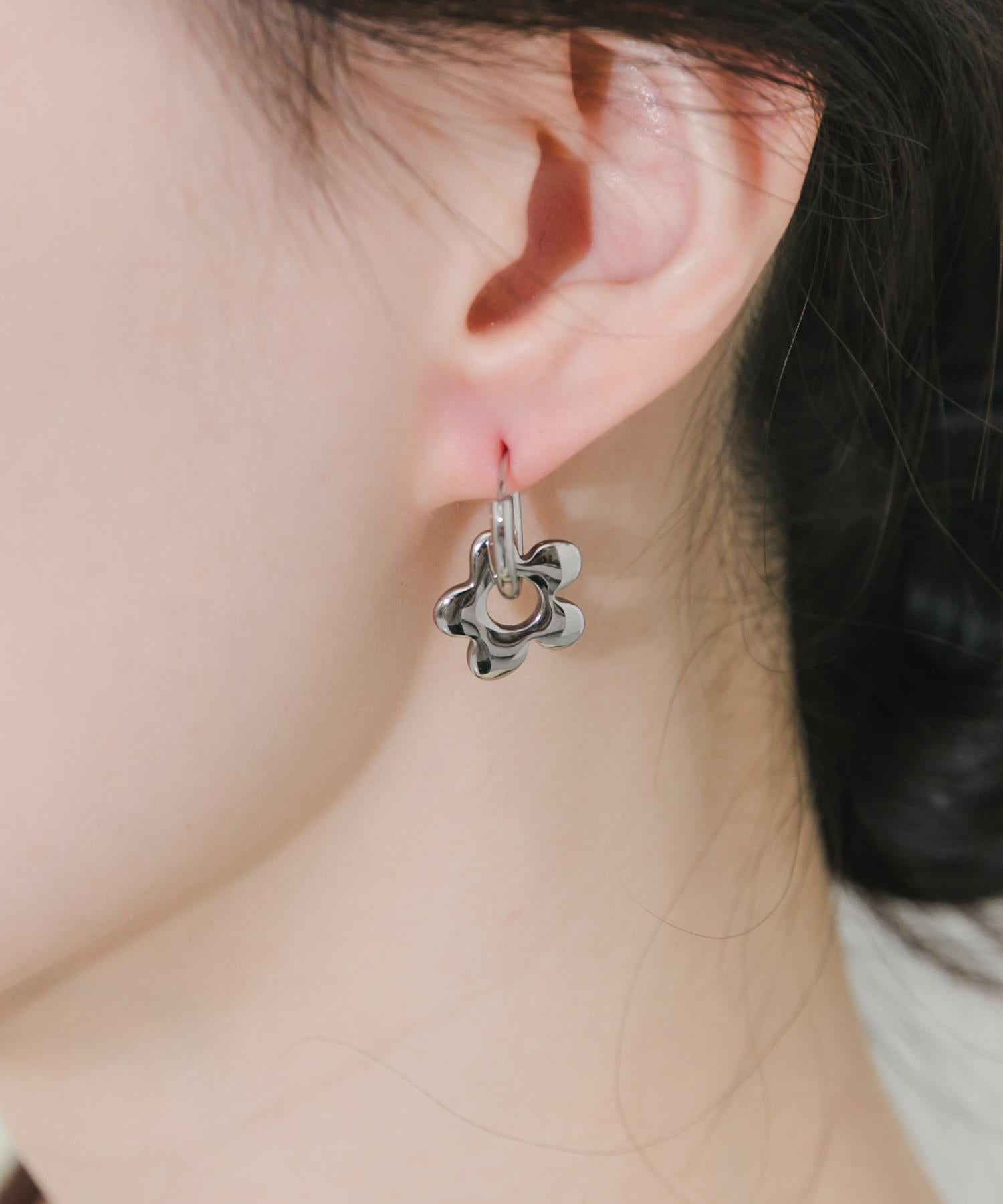 不鏽鋼花朵吊飾圈式耳環