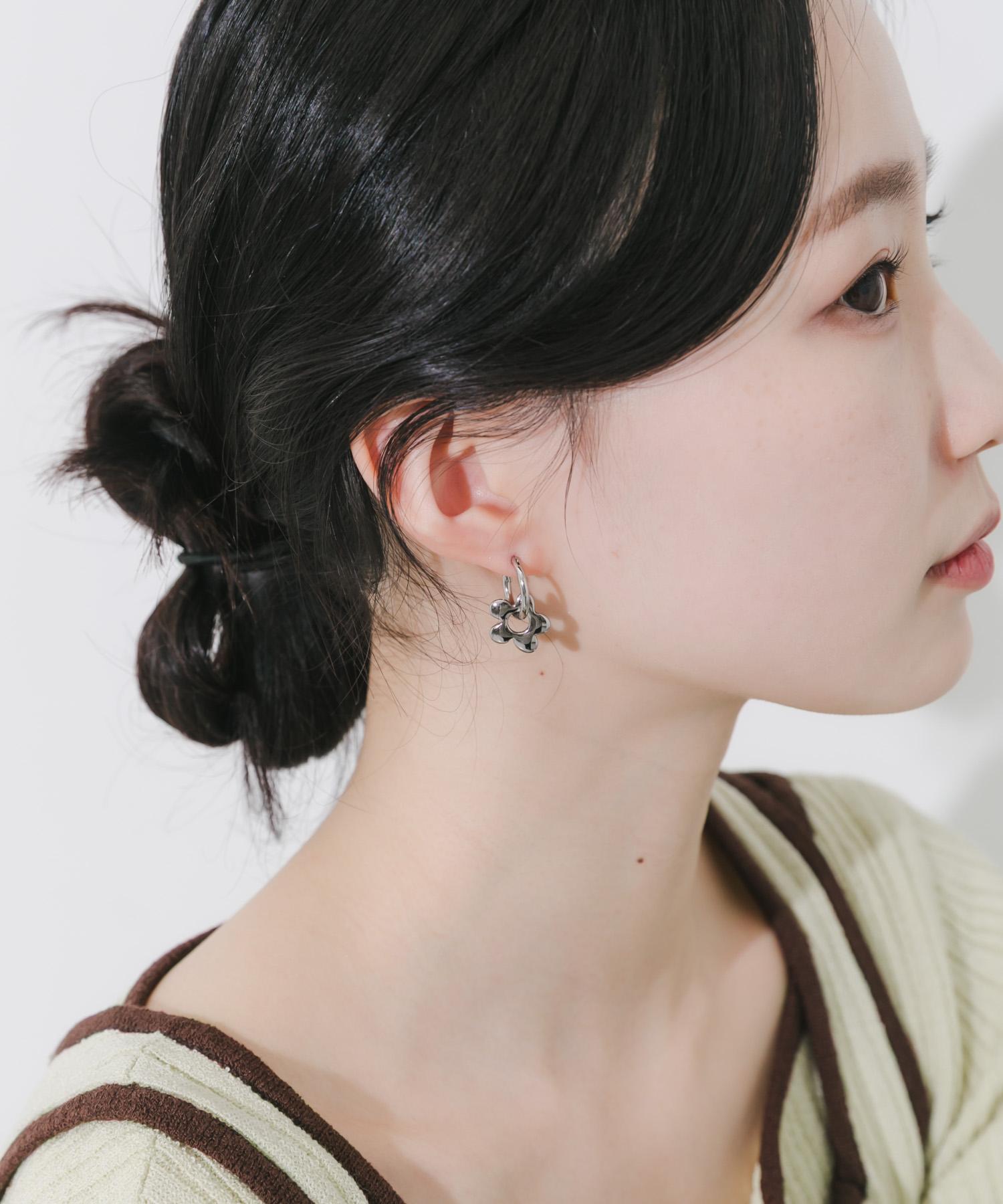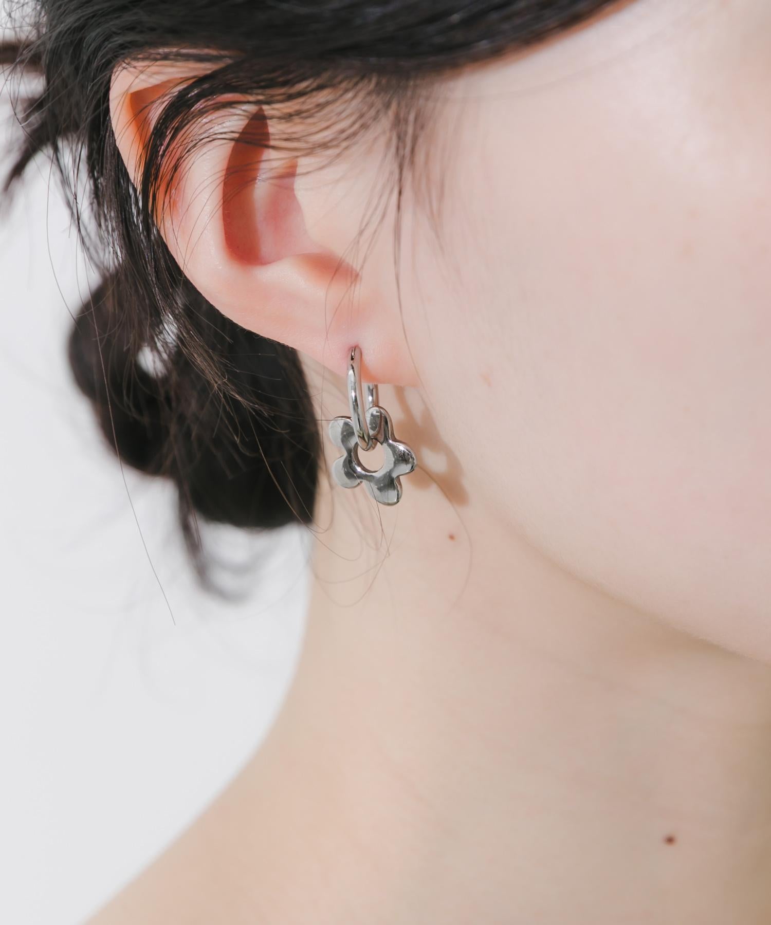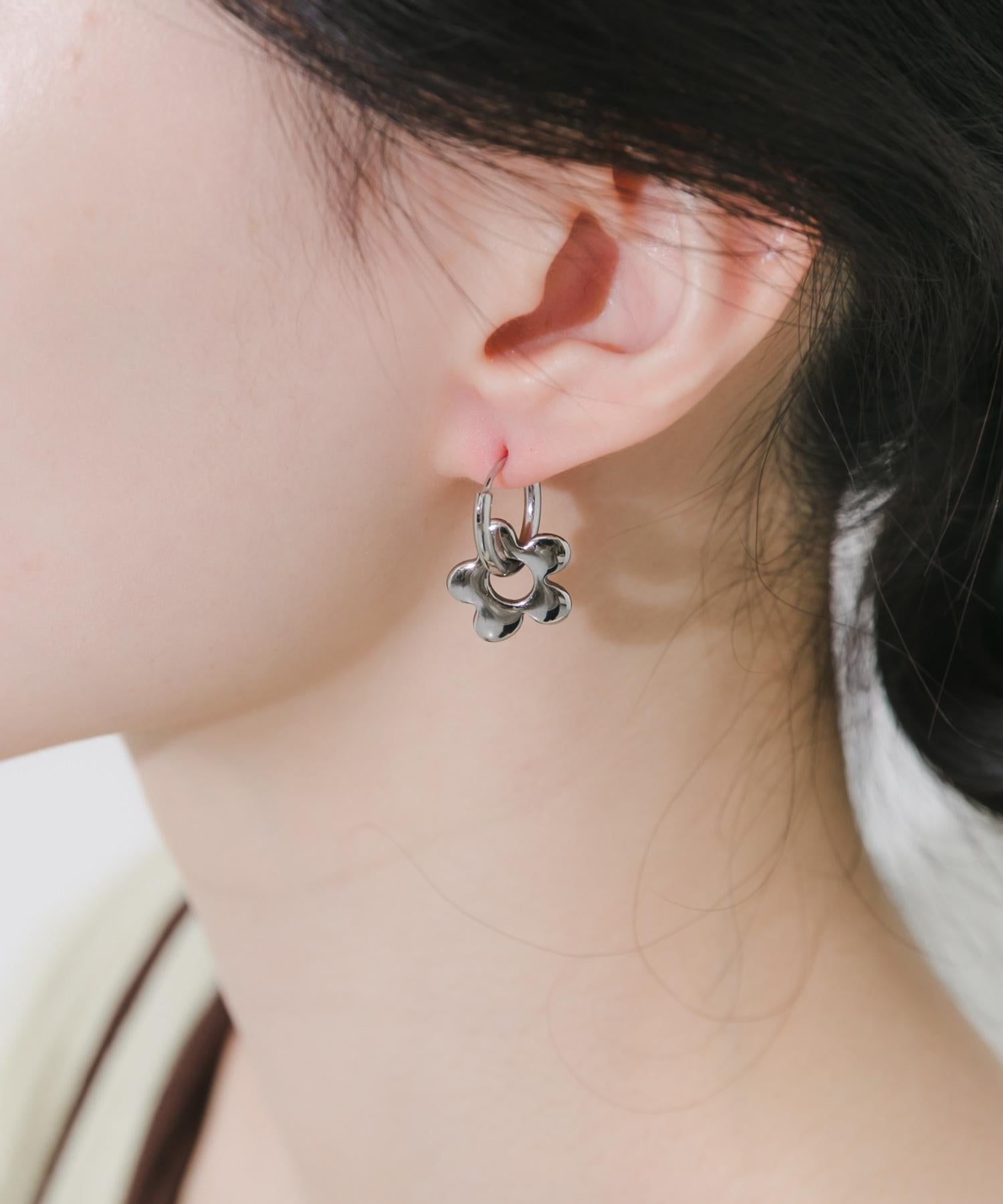 簡潔的環形耳環,配以可愛的花朵圖案吊飾。