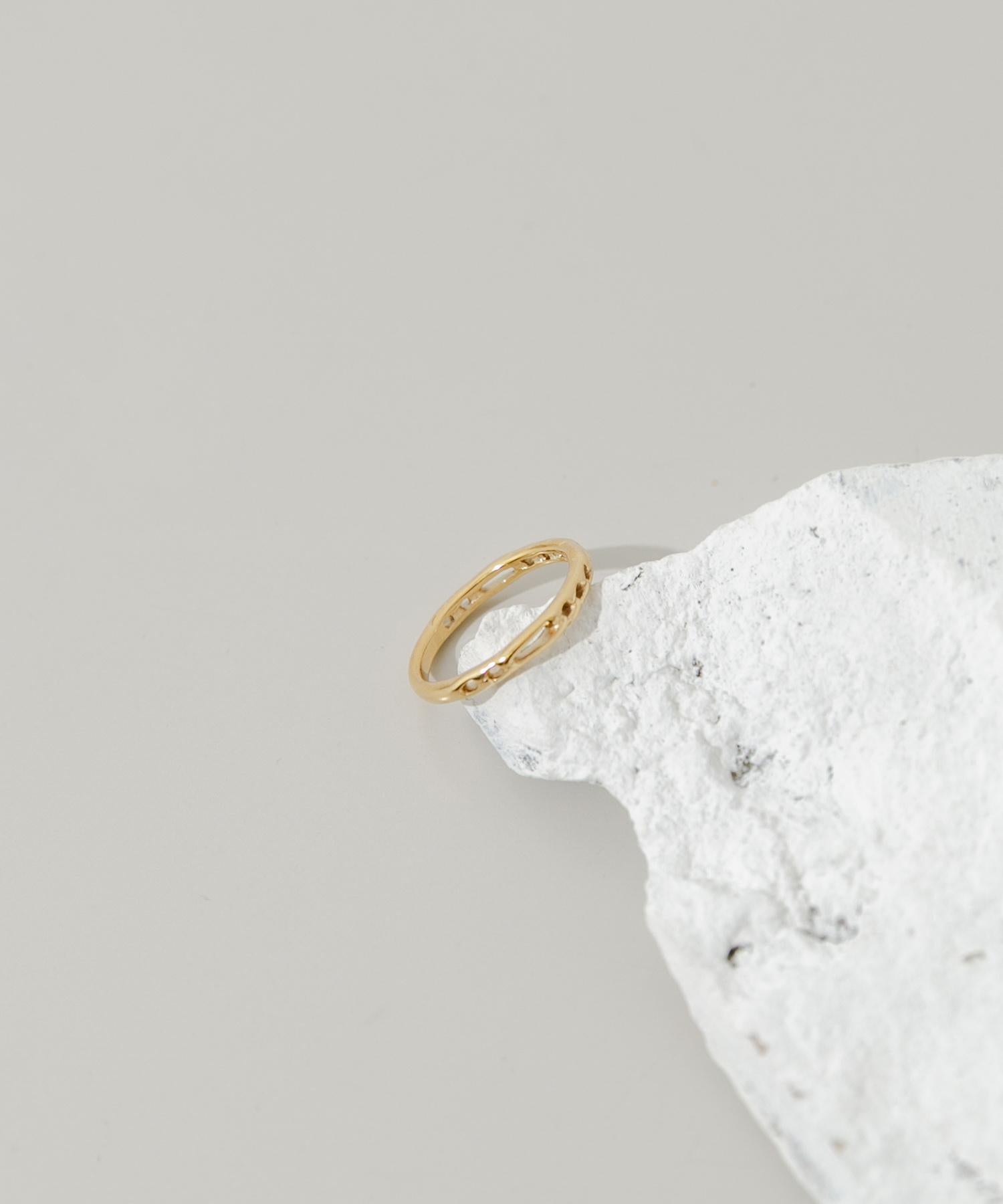 這款戒指採用俏皮的鏤空設計,周身佈滿小孔。