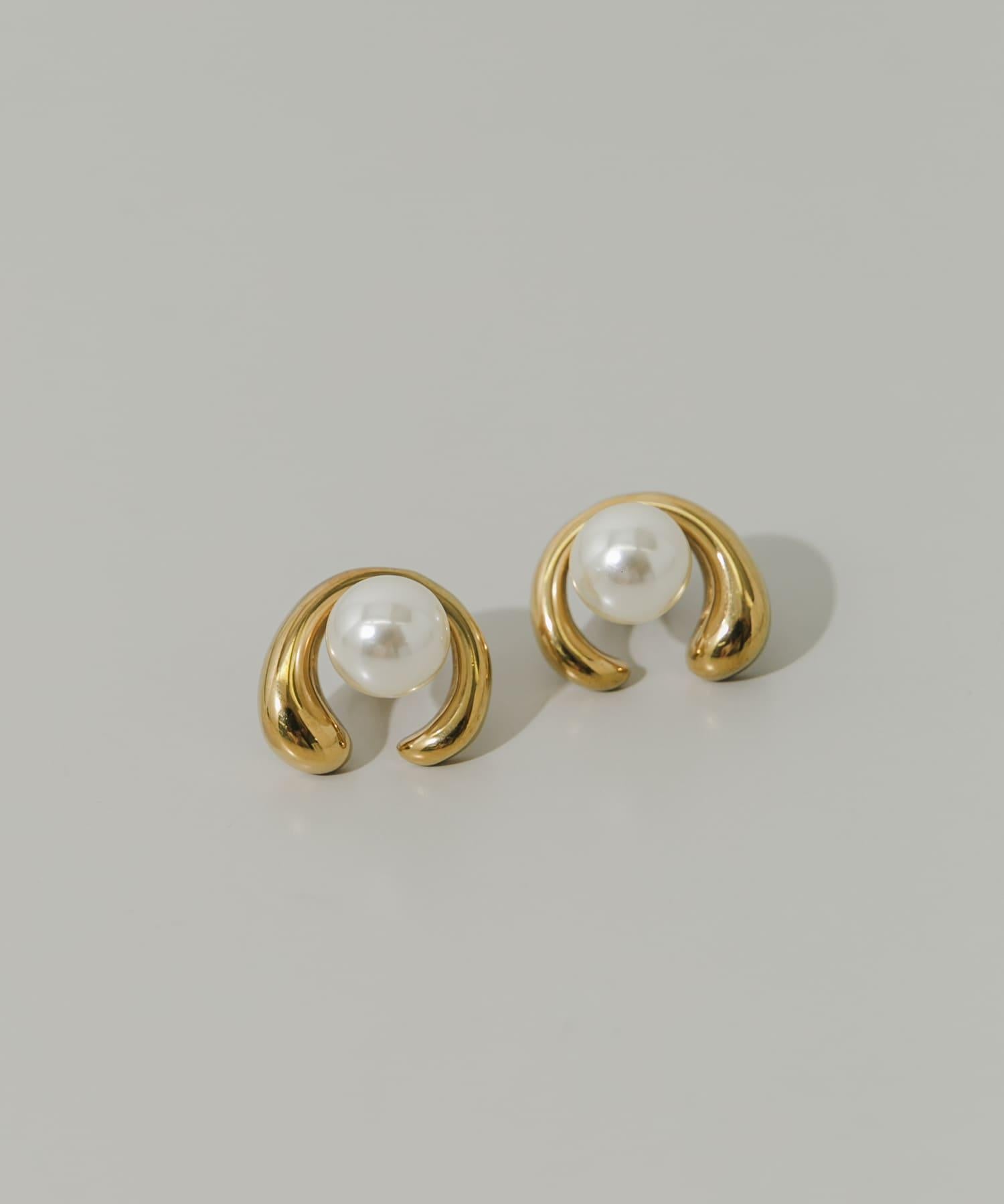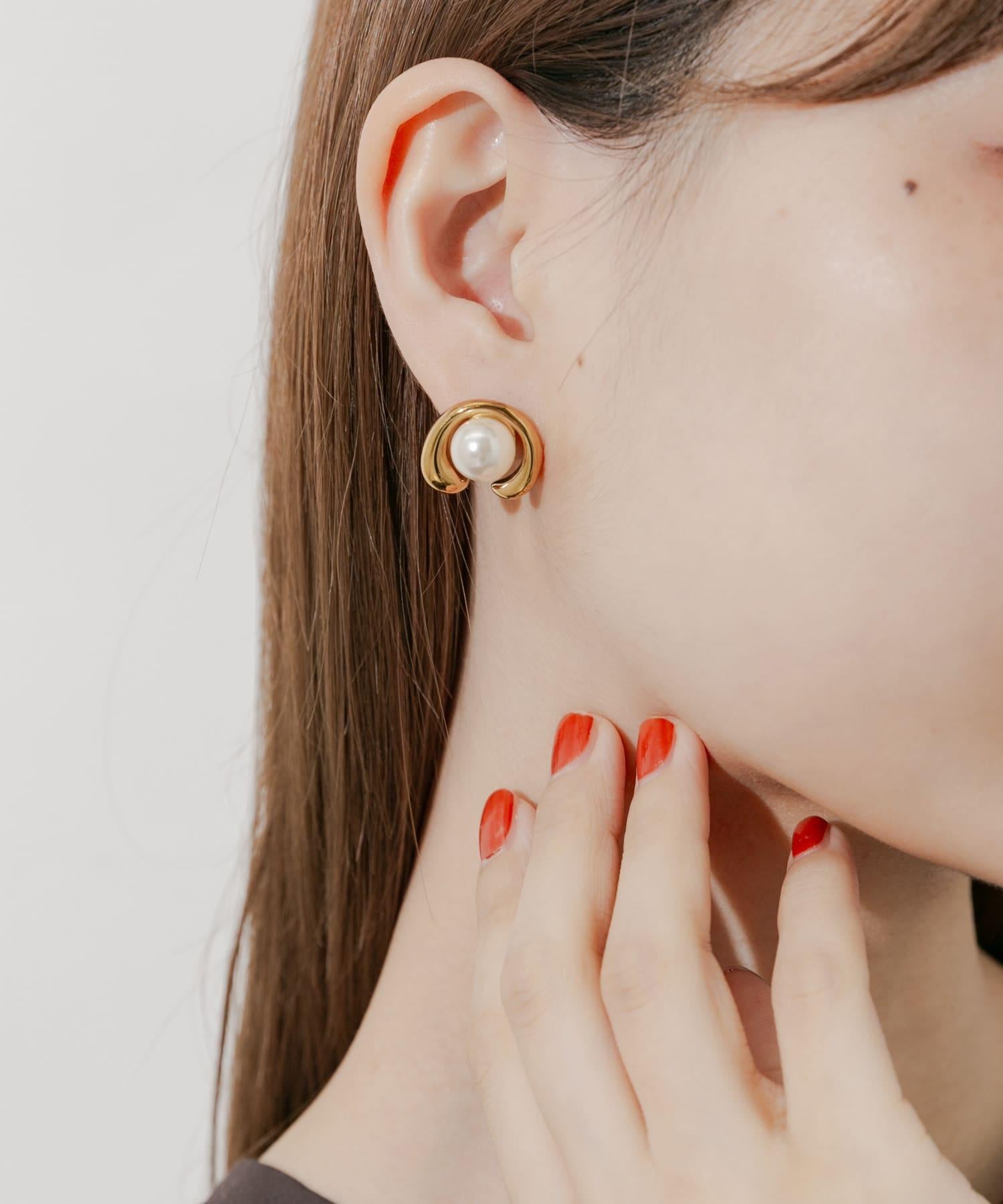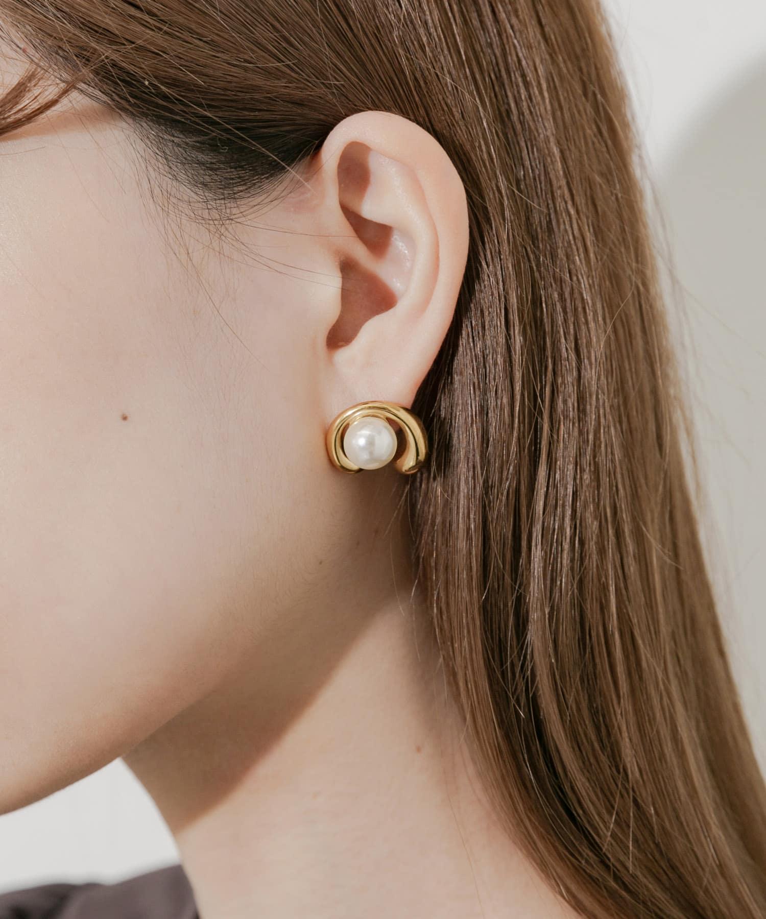 耳環,豐滿的金屬拱門包裹著一顆閃亮的珍珠。