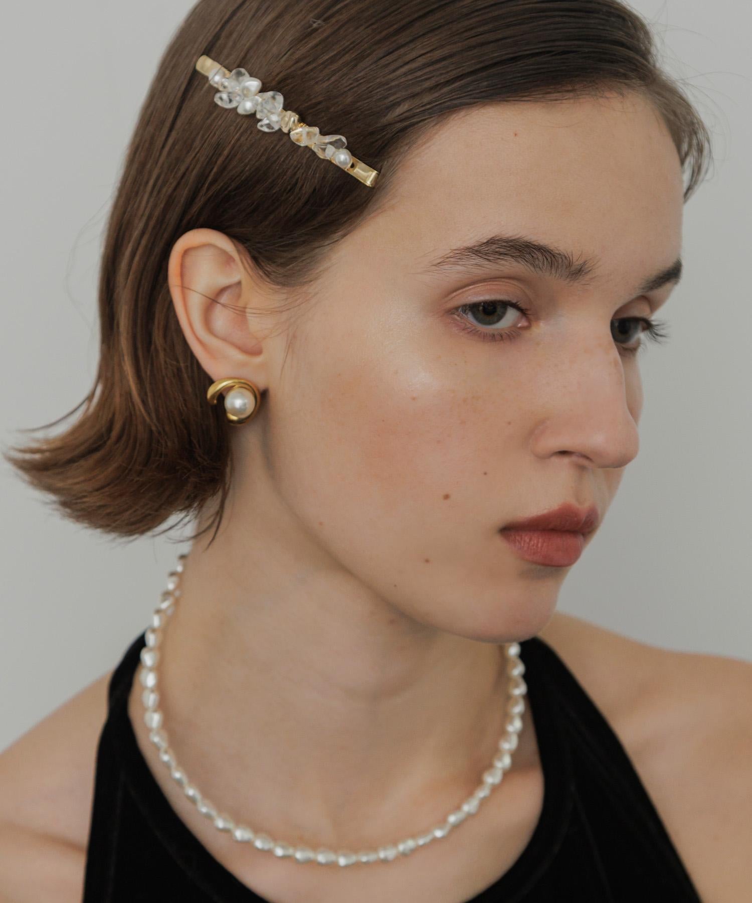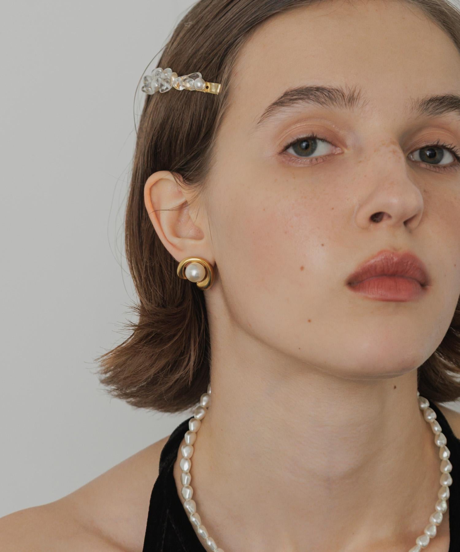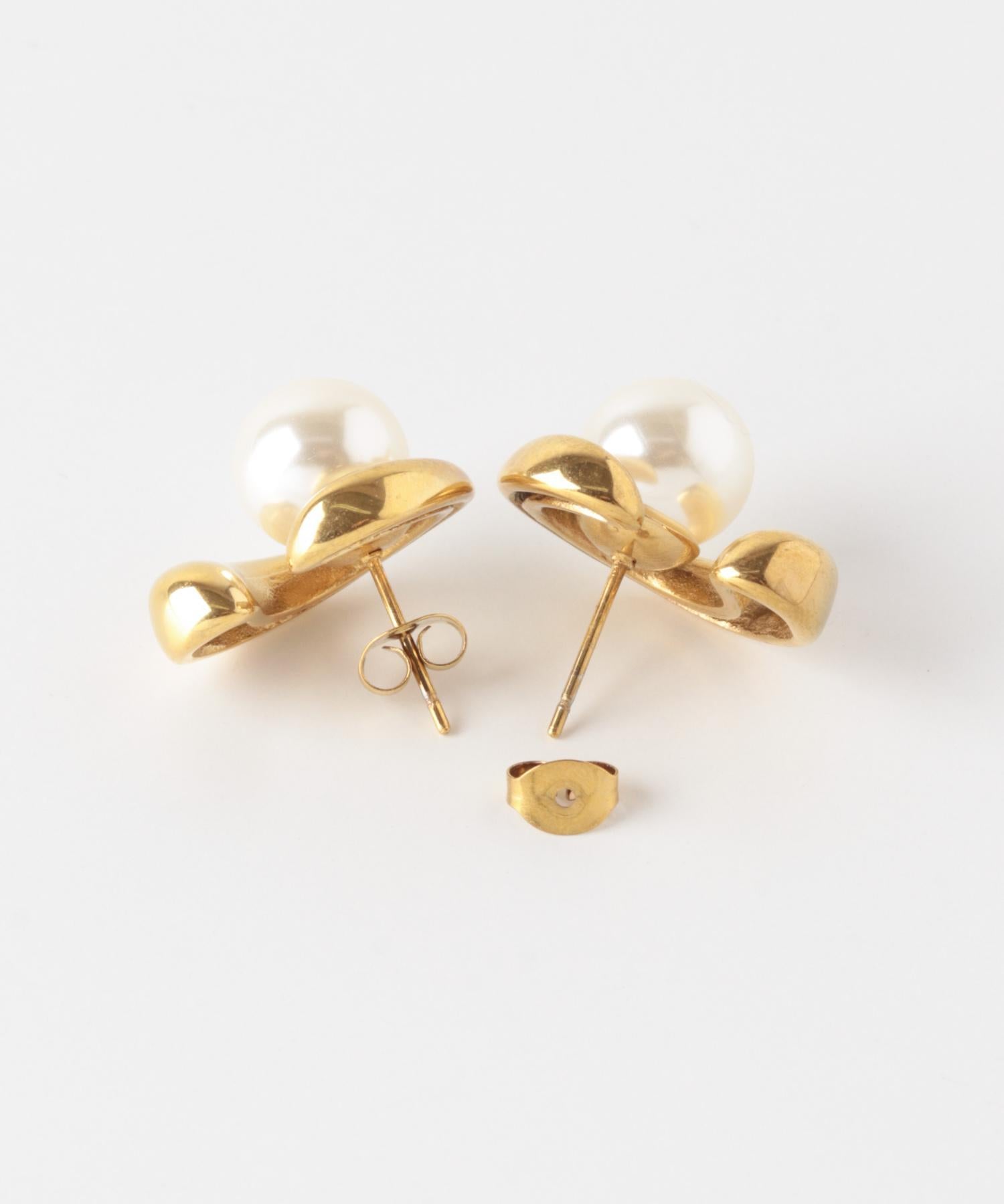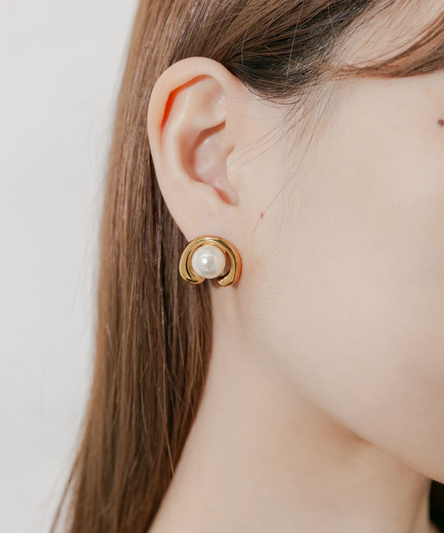 耳環,豐滿的金屬拱門包裹著一顆閃亮的珍珠。