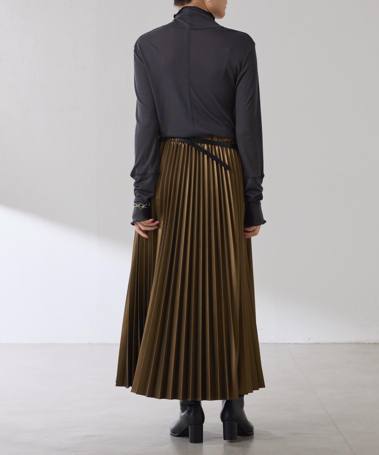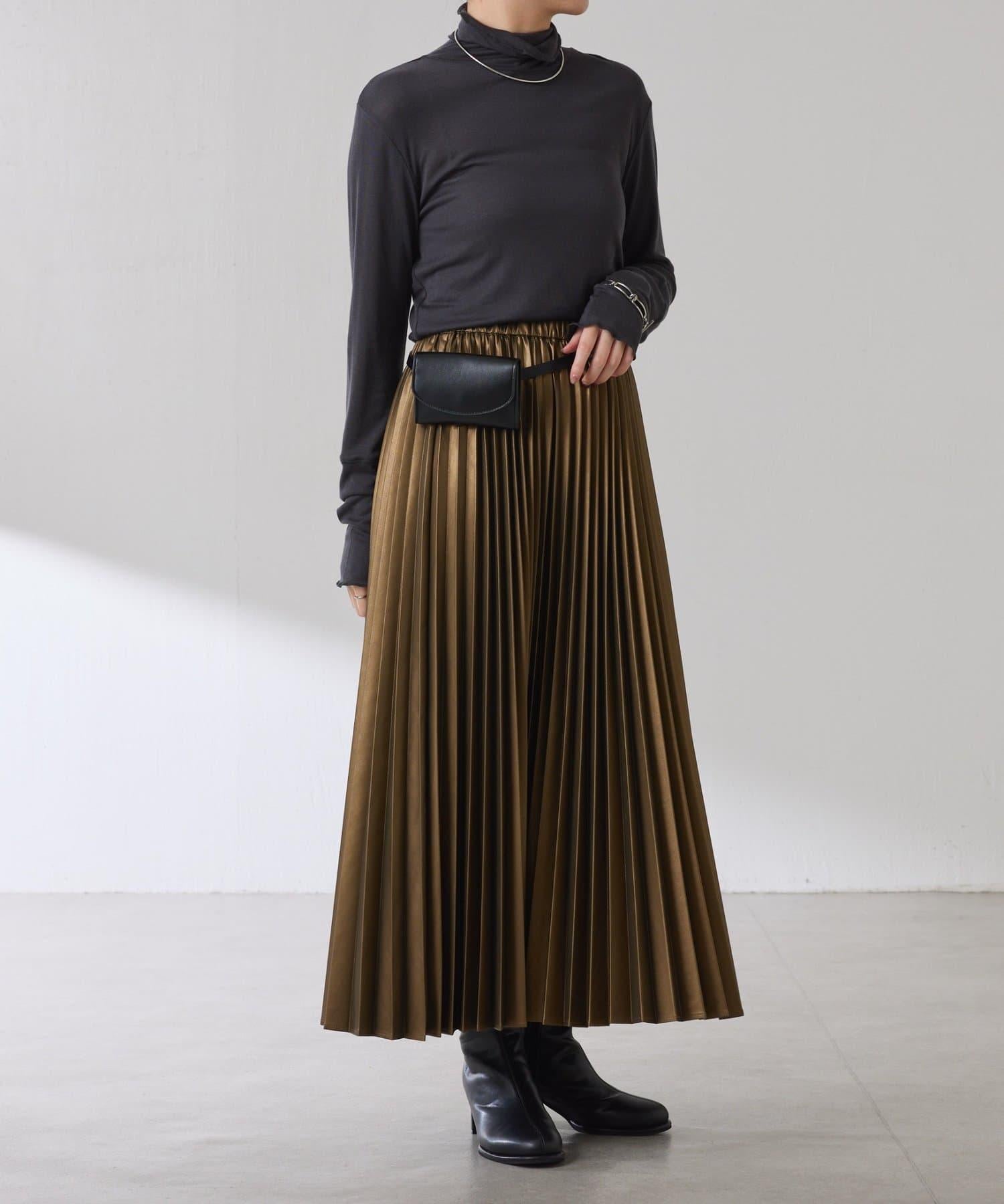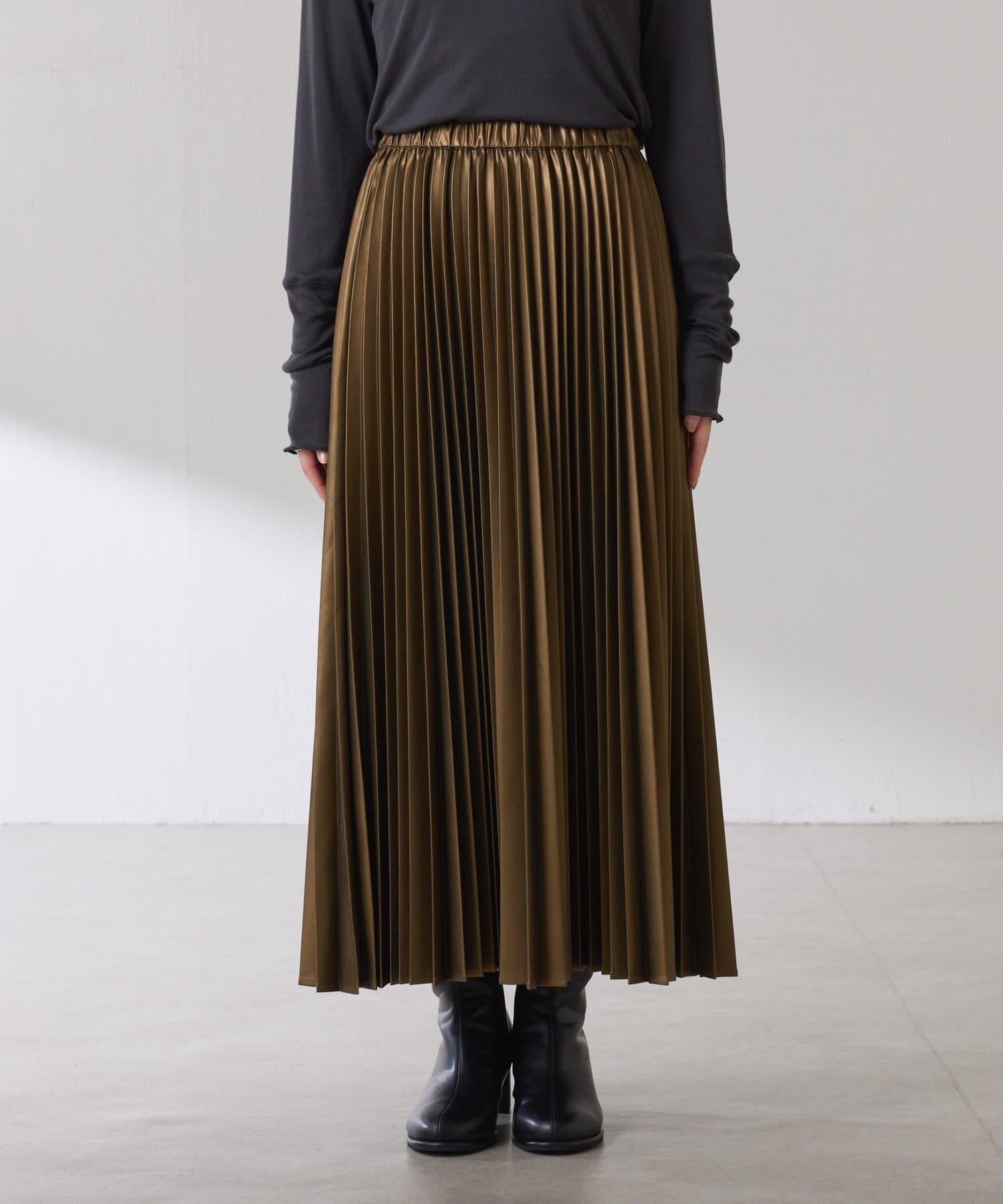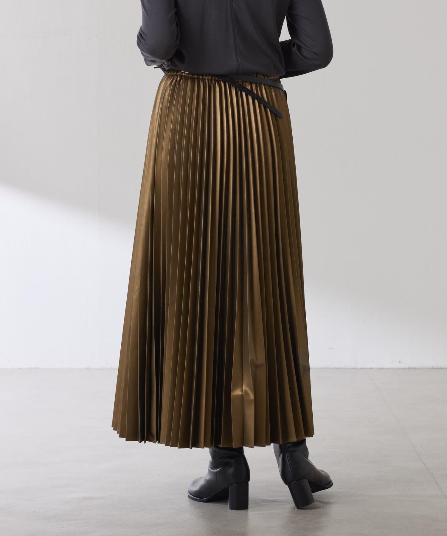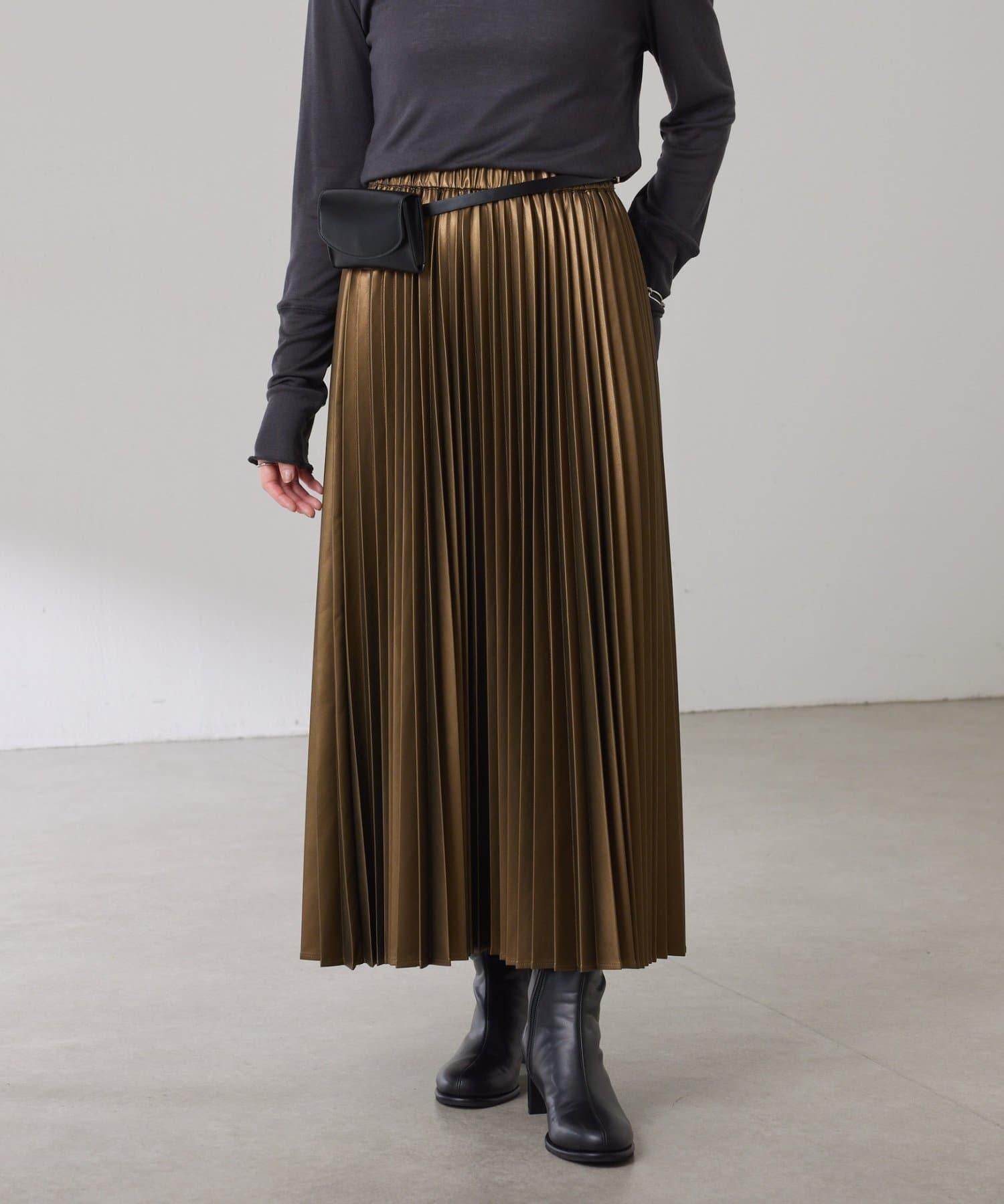 百褶裙由人造皮革製成,具有優雅的光澤和柔軟度。