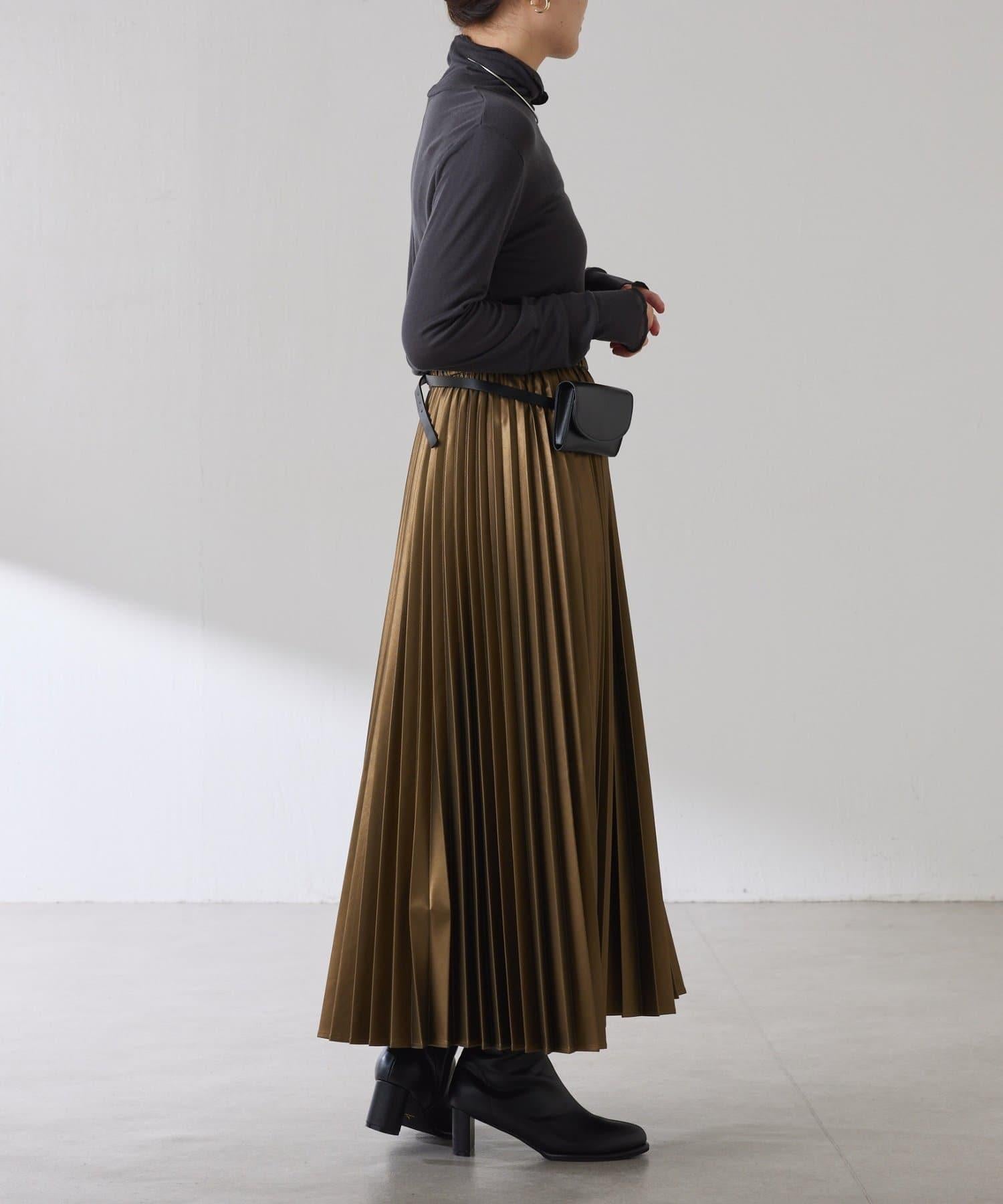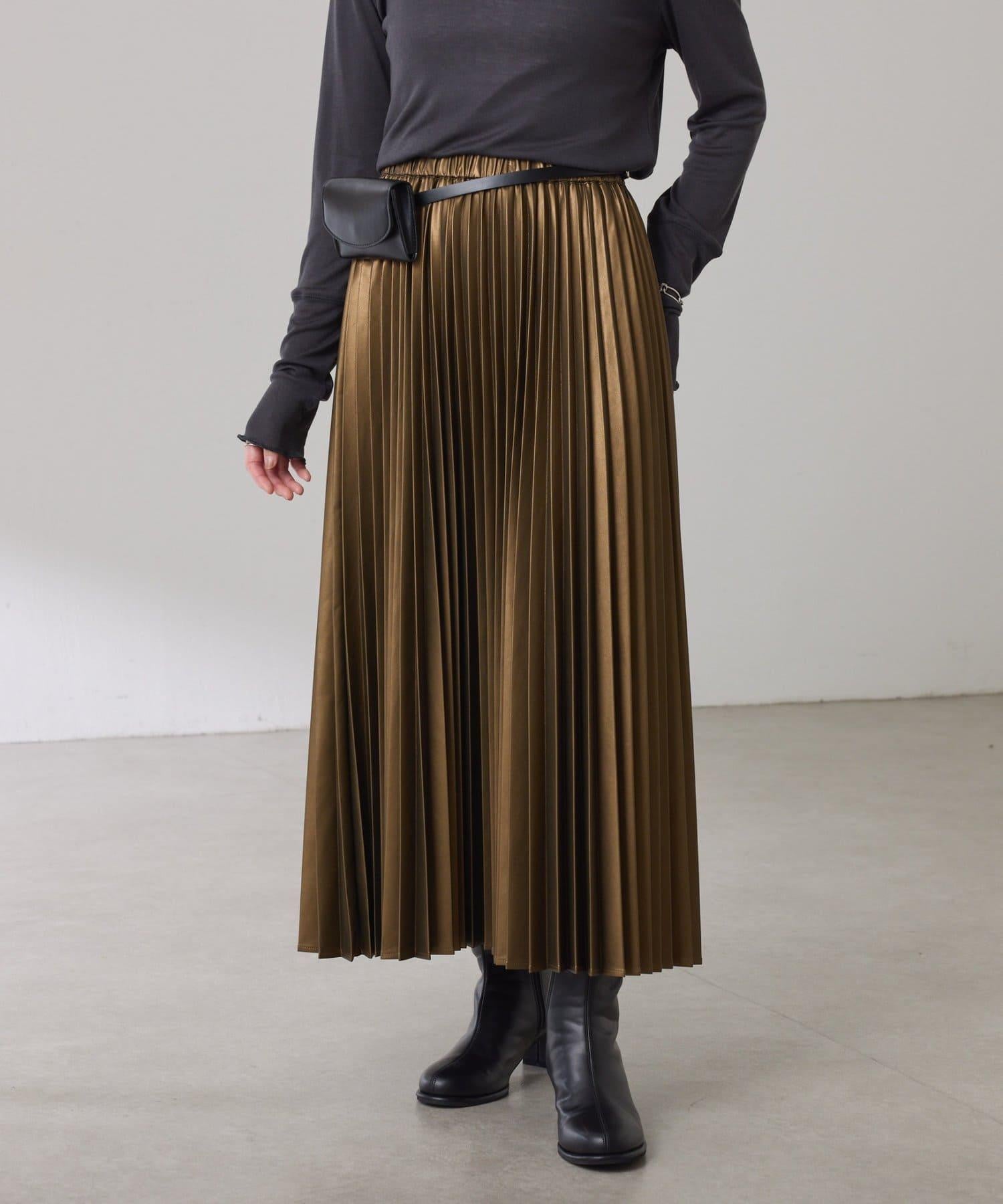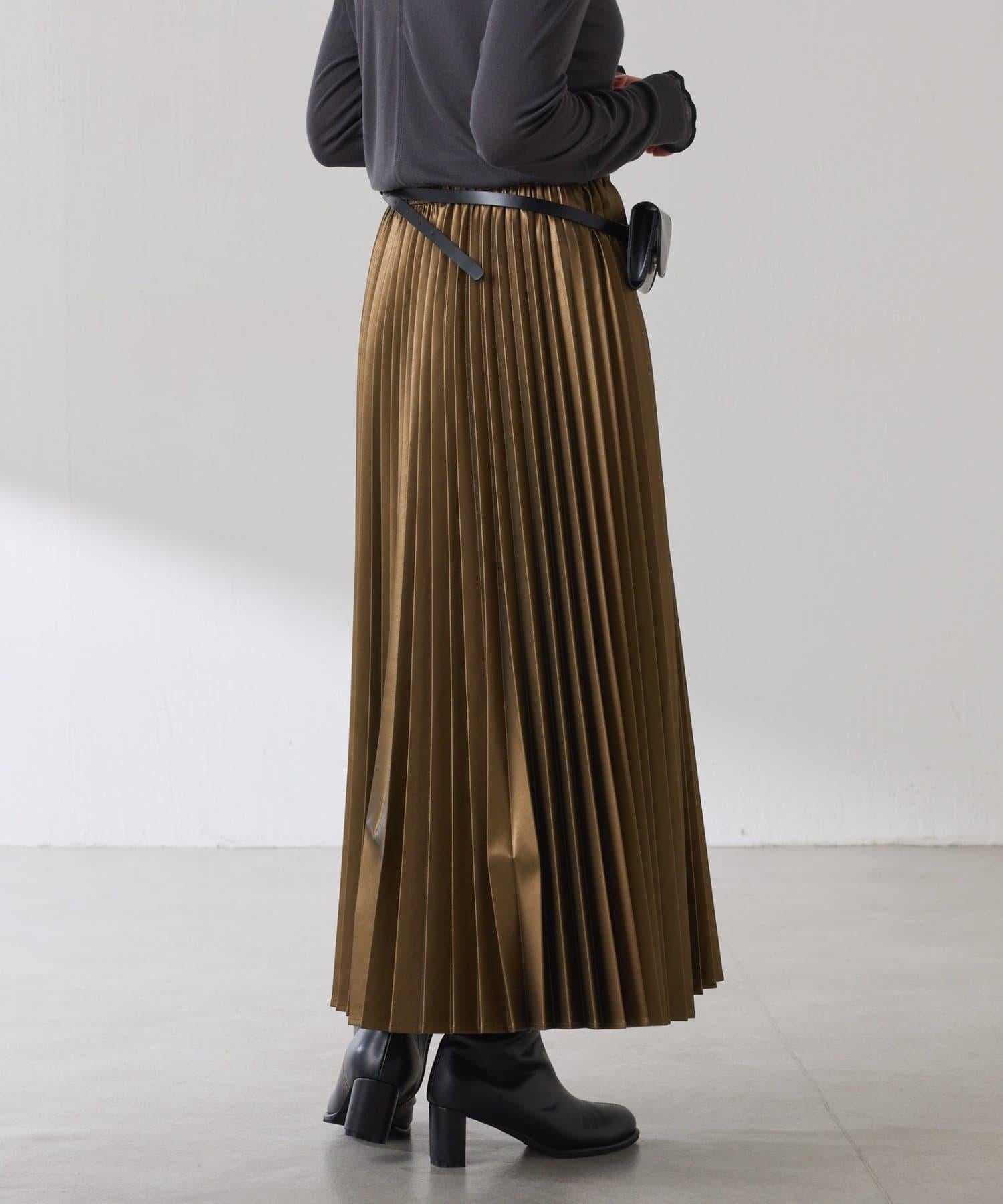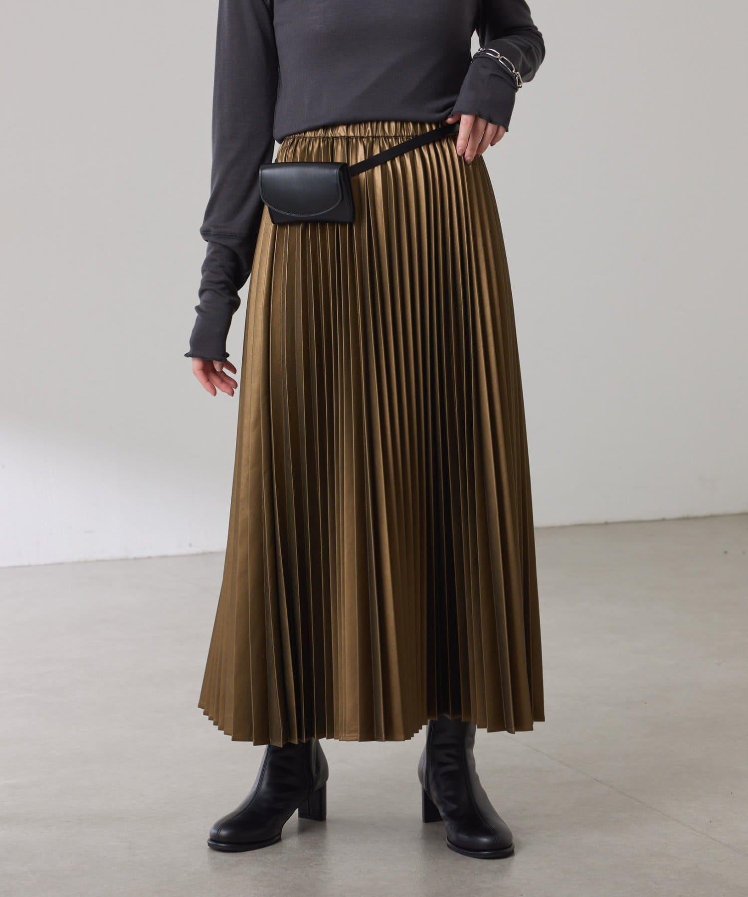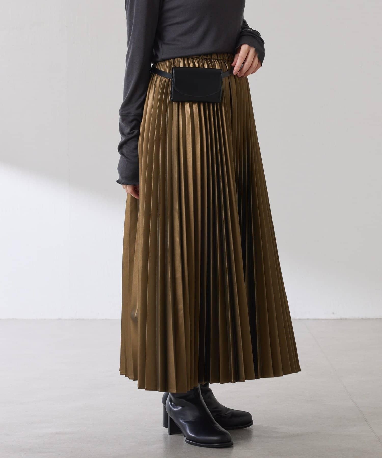 百褶裙由人造皮革製成,具有優雅的光澤和柔軟度。