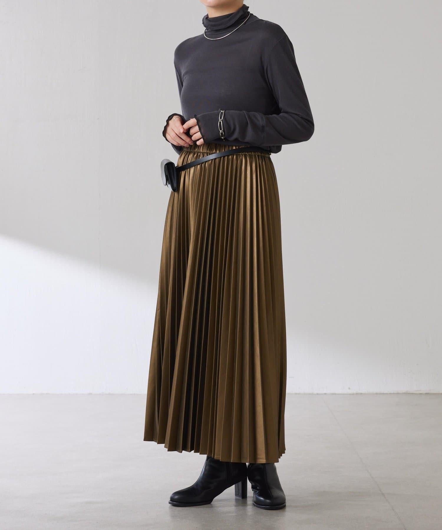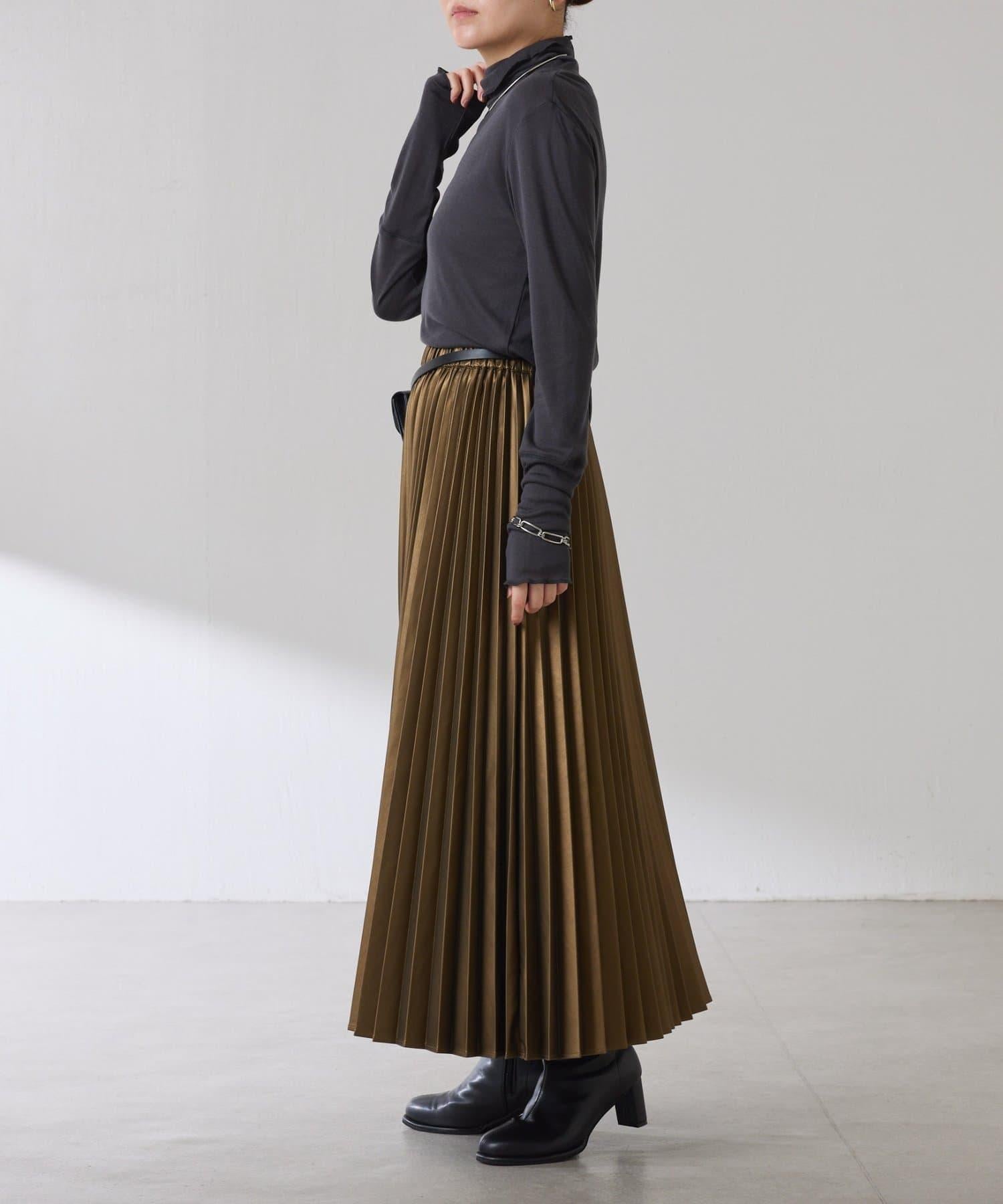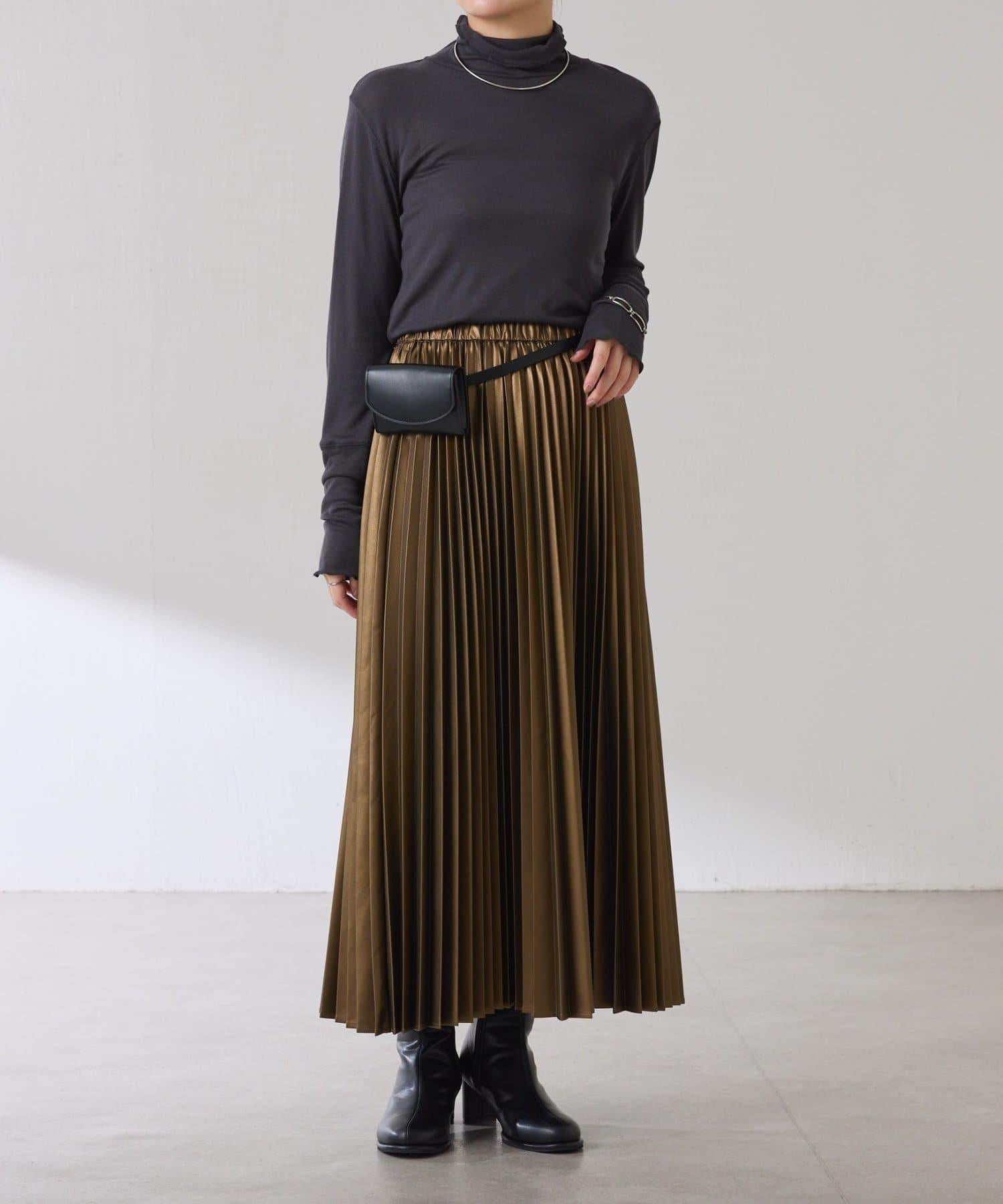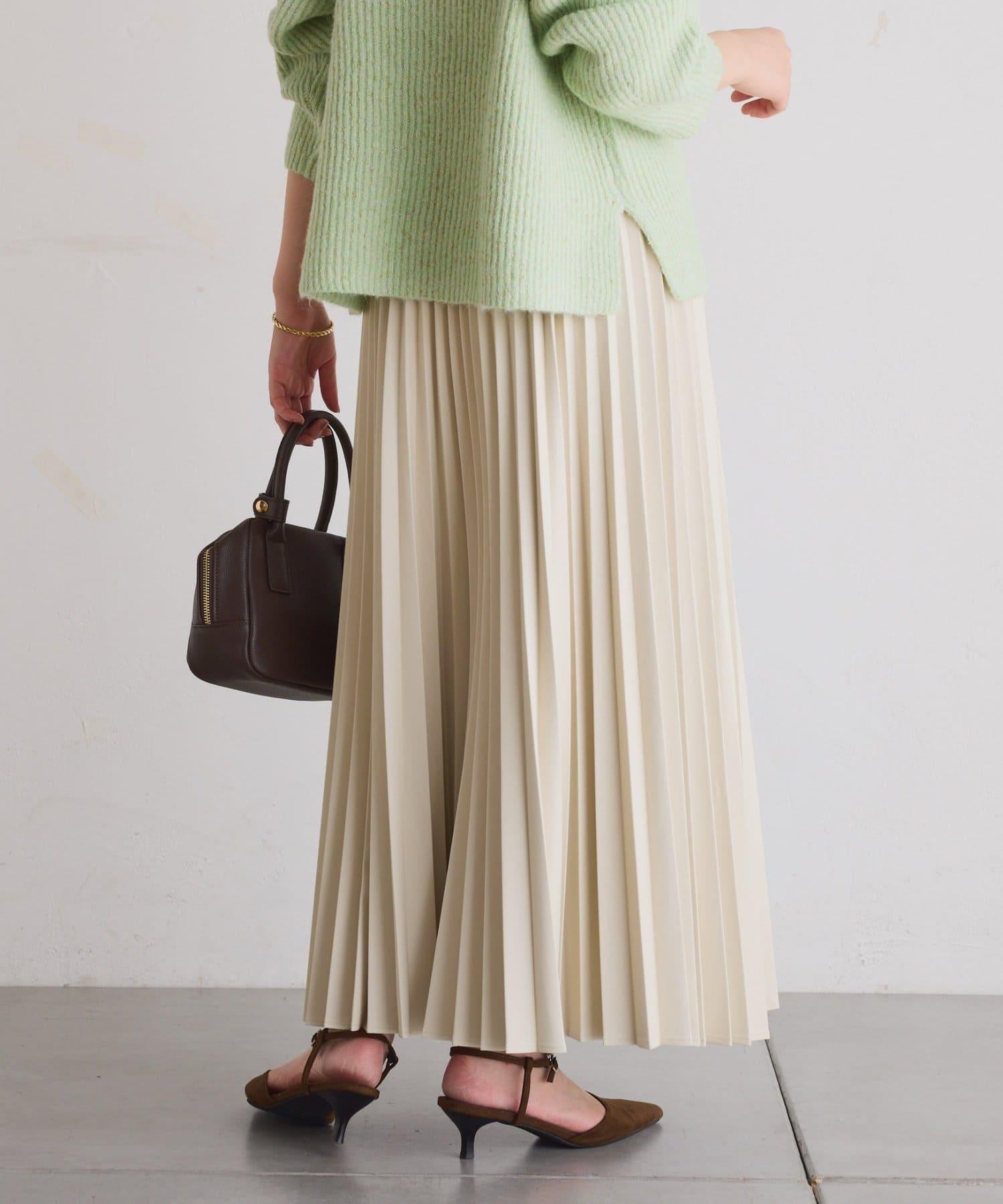 百褶裙由人造皮革製成,具有優雅的光澤和柔軟度。