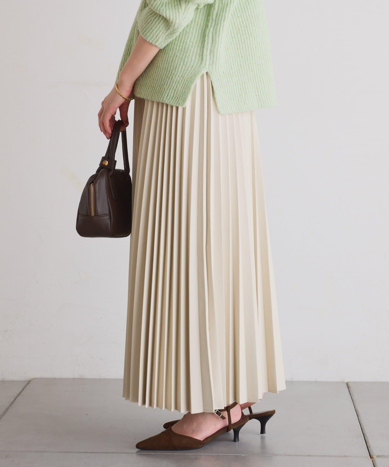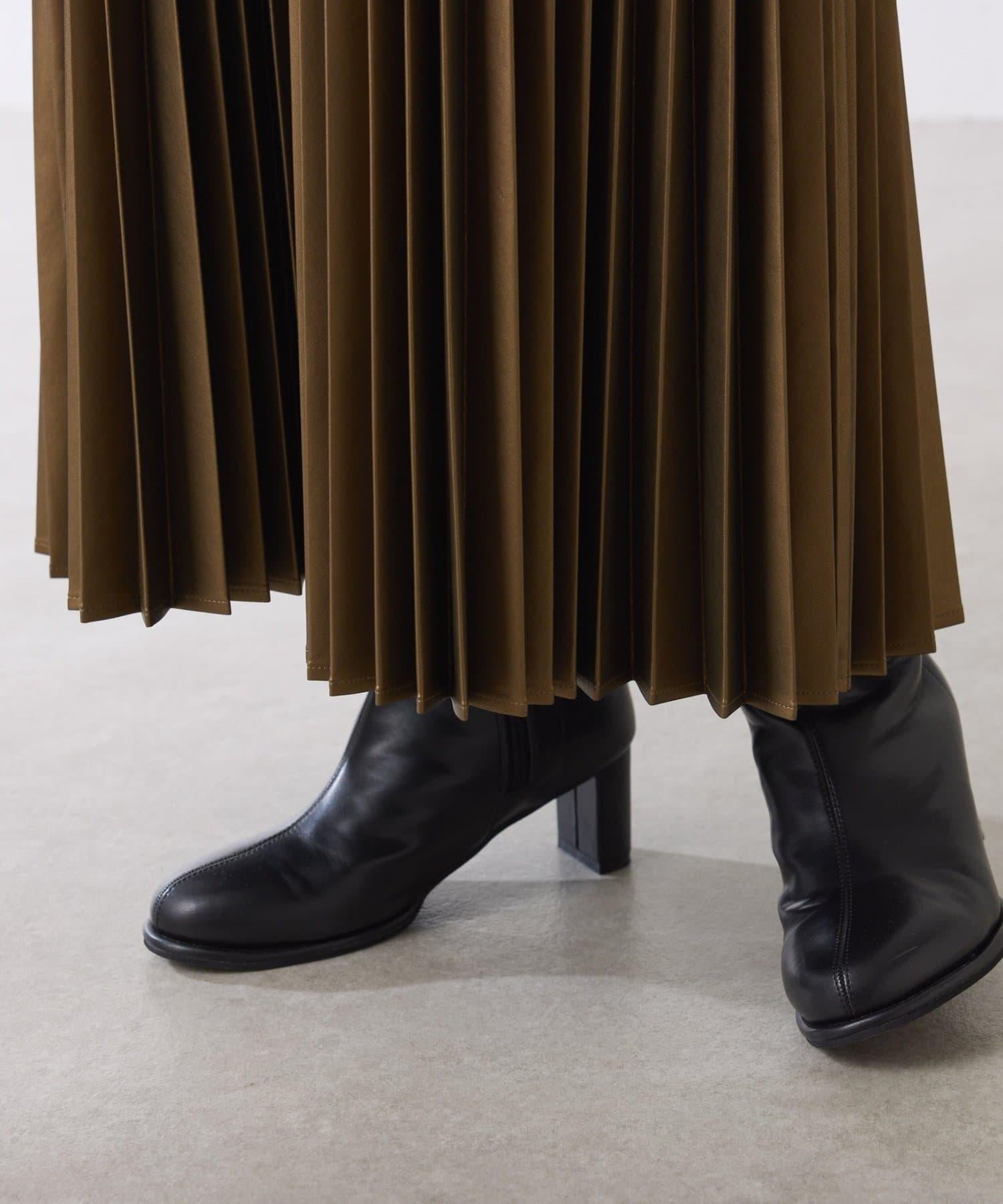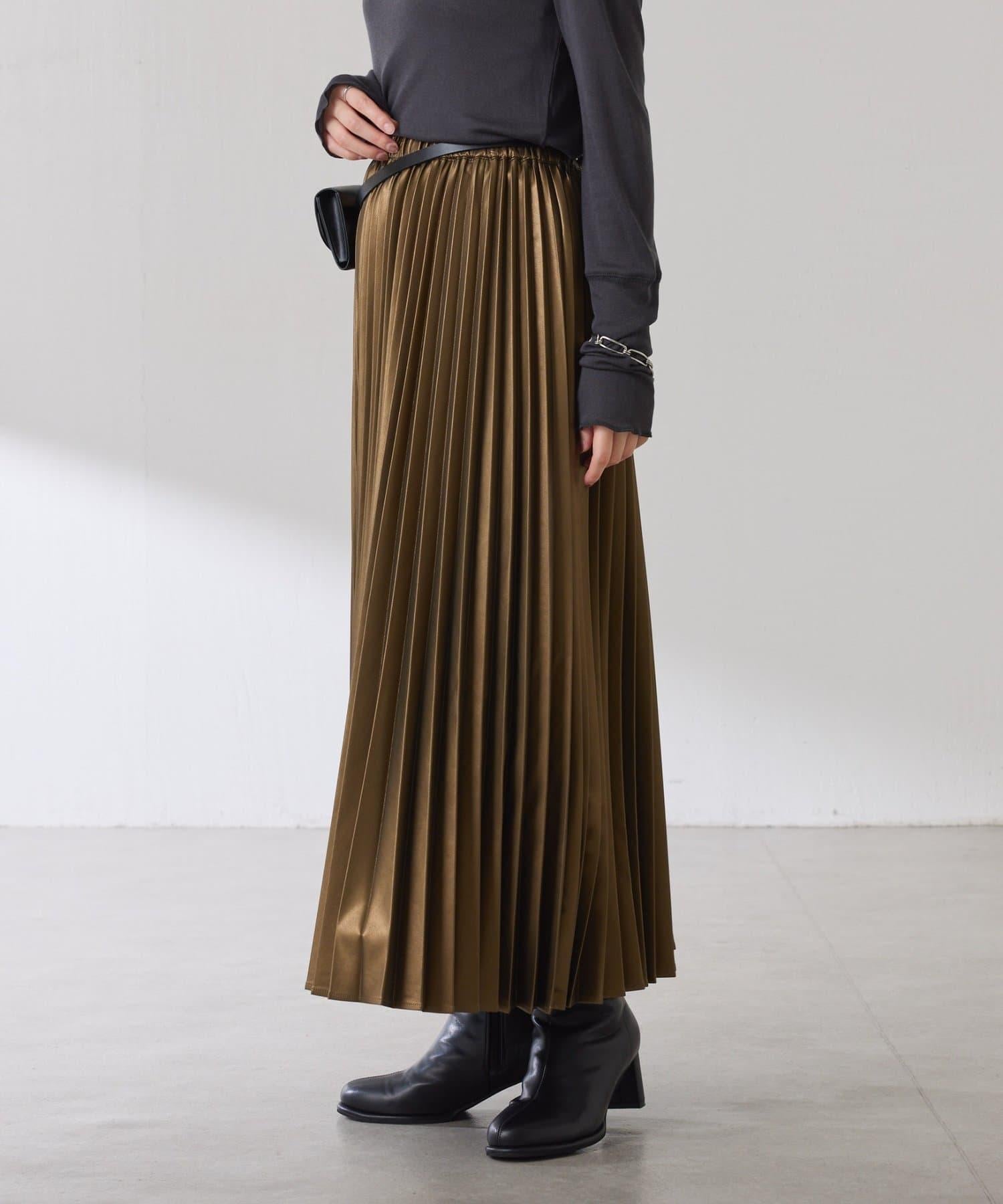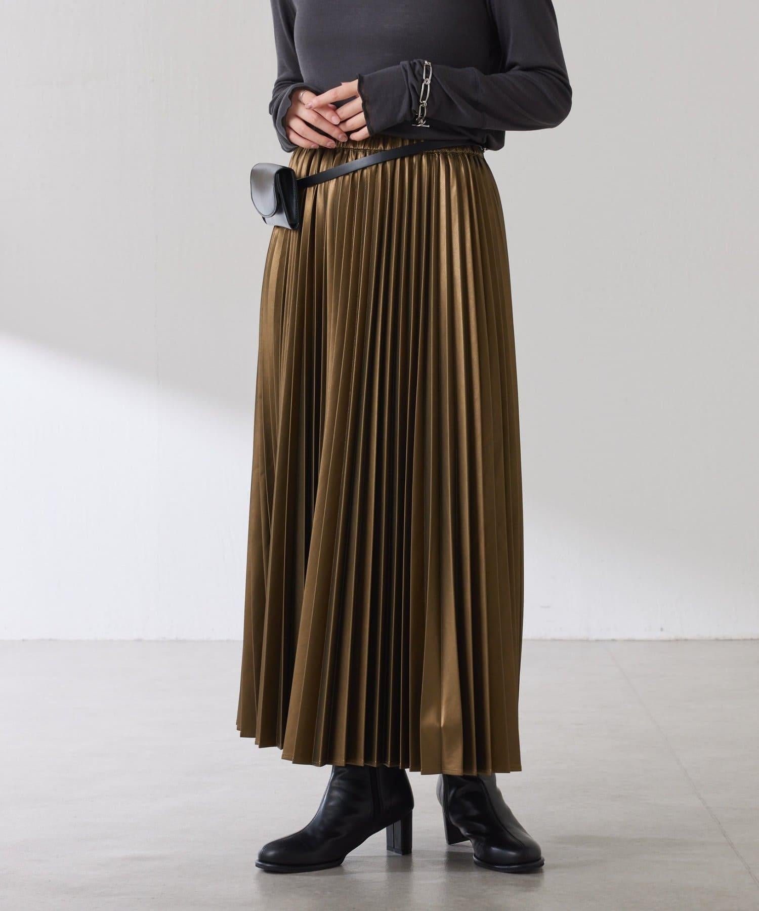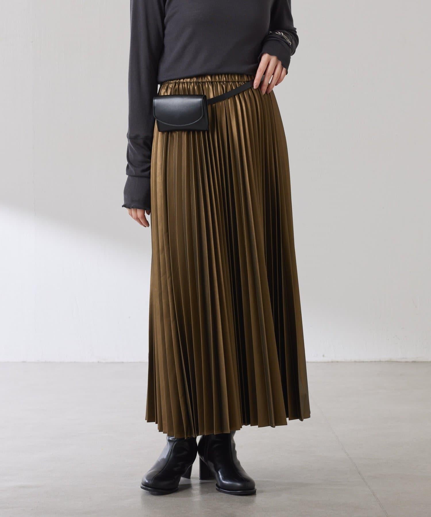 百褶裙由人造皮革製成,具有優雅的光澤和柔軟度。