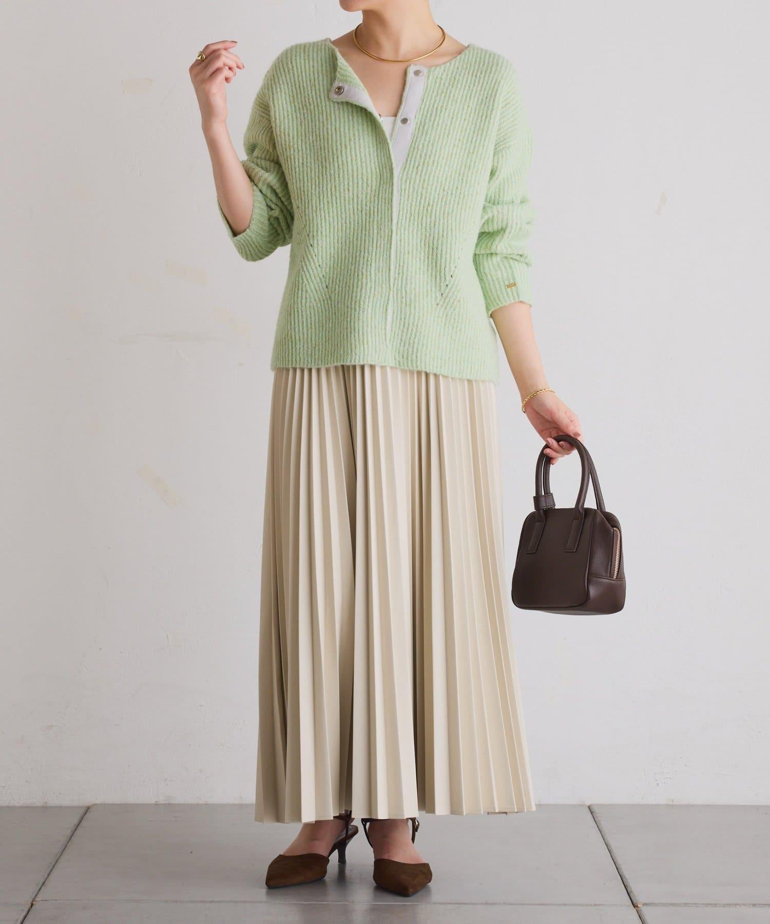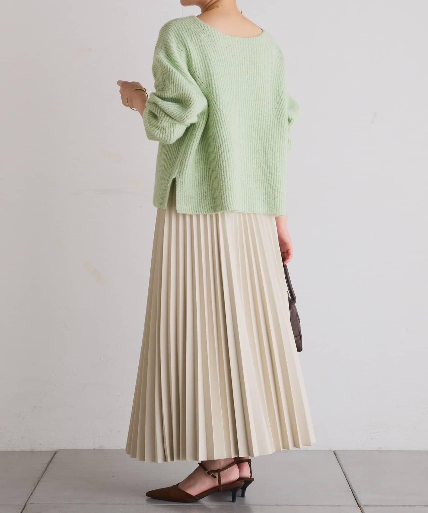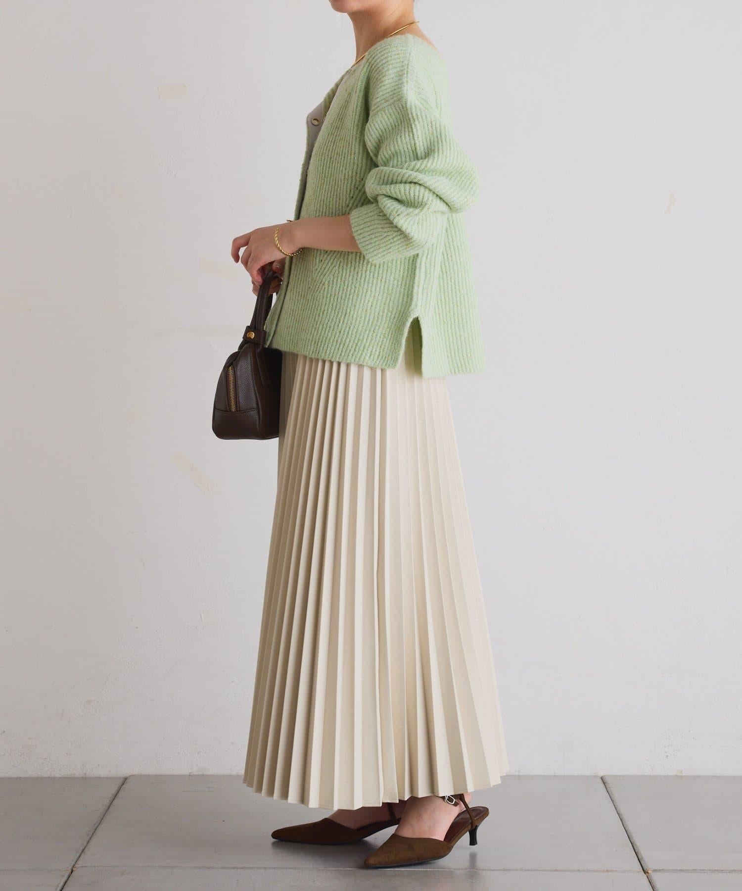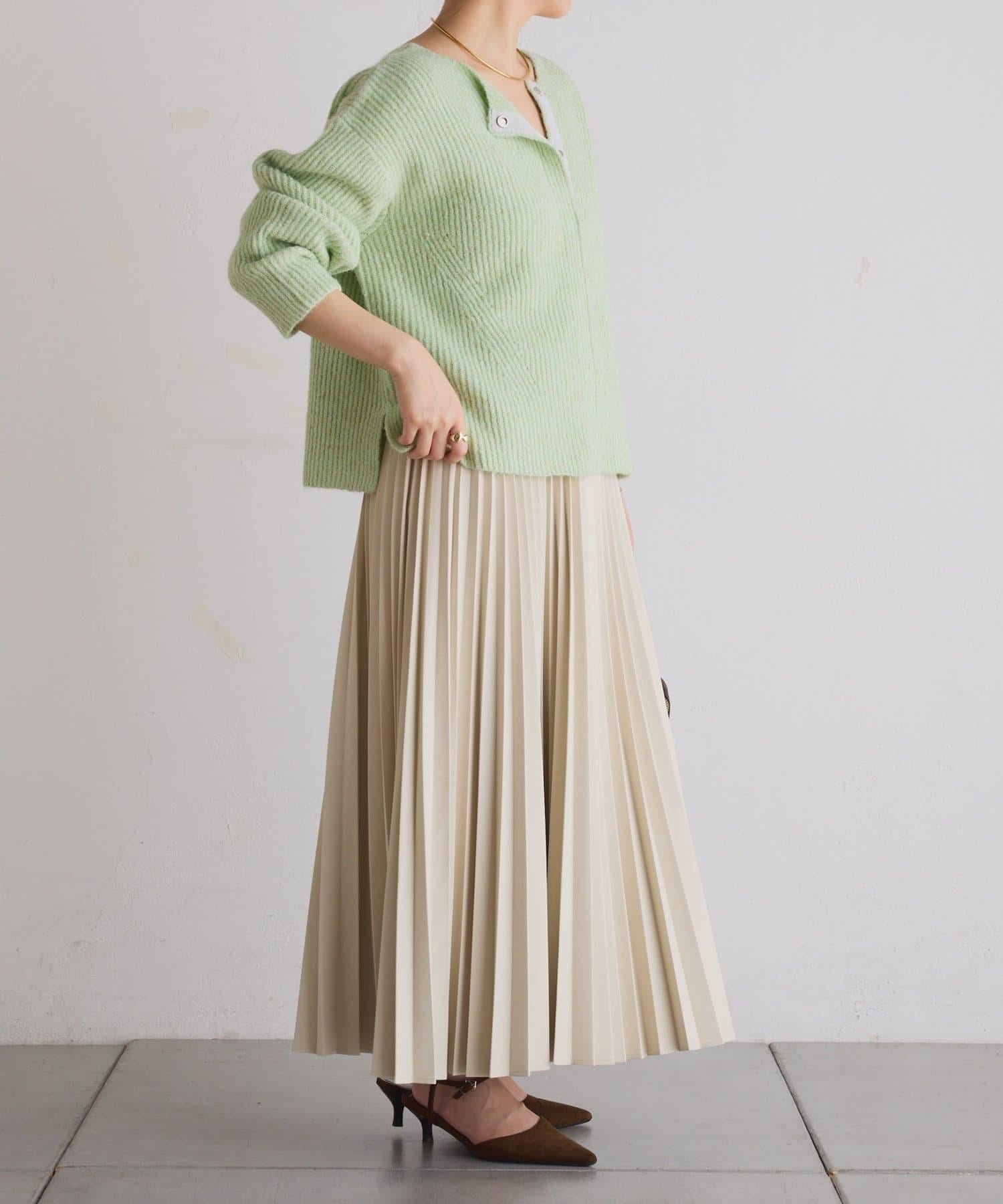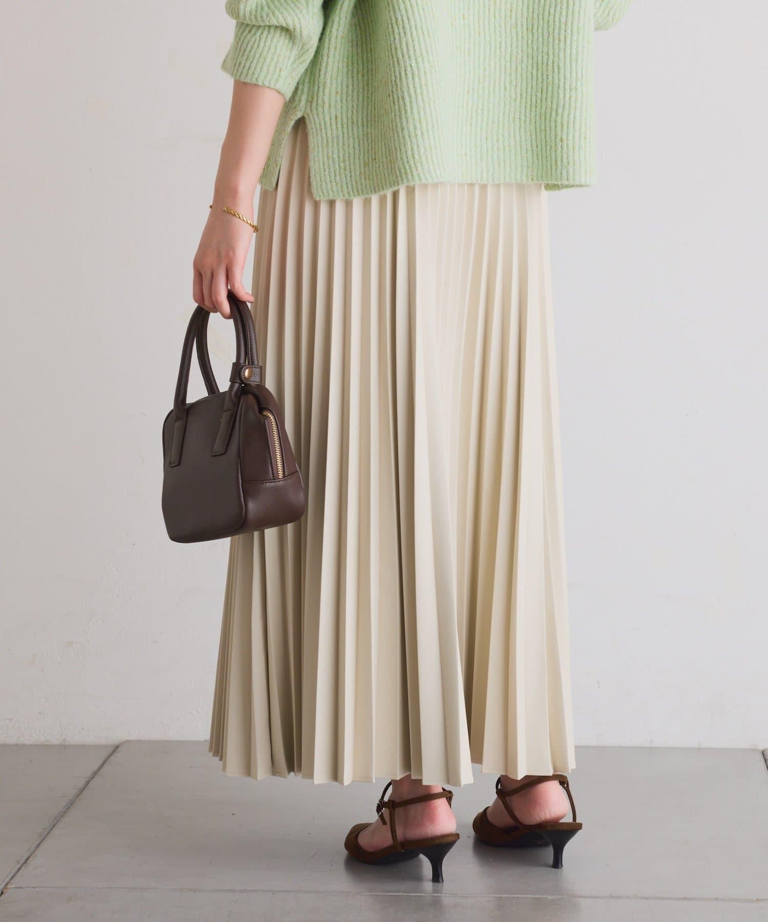 百褶裙由人造皮革製成,具有優雅的光澤和柔軟度。