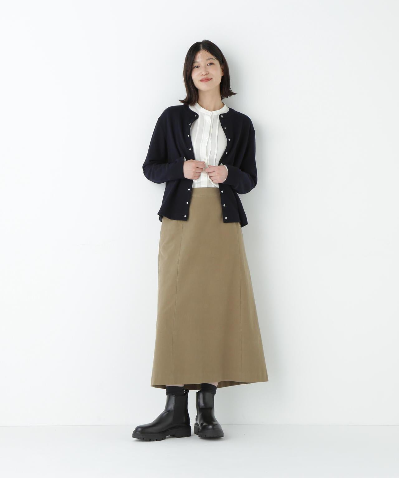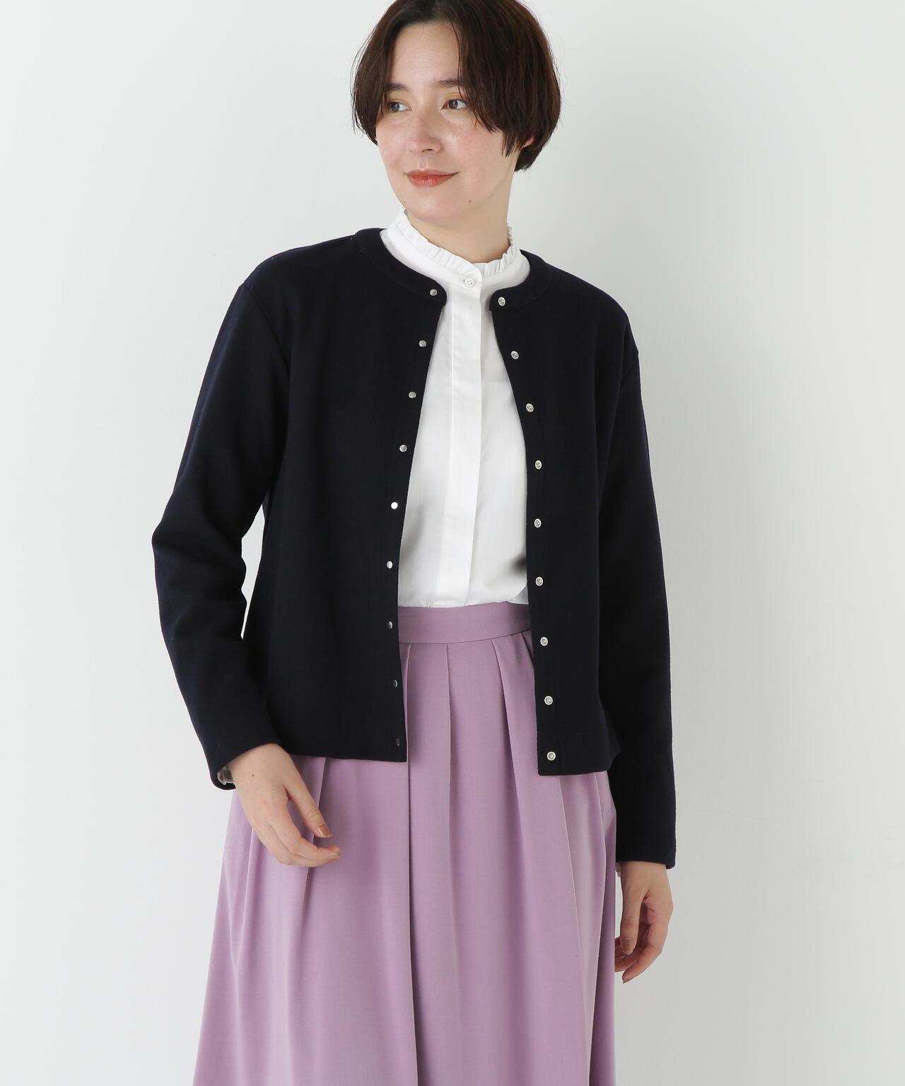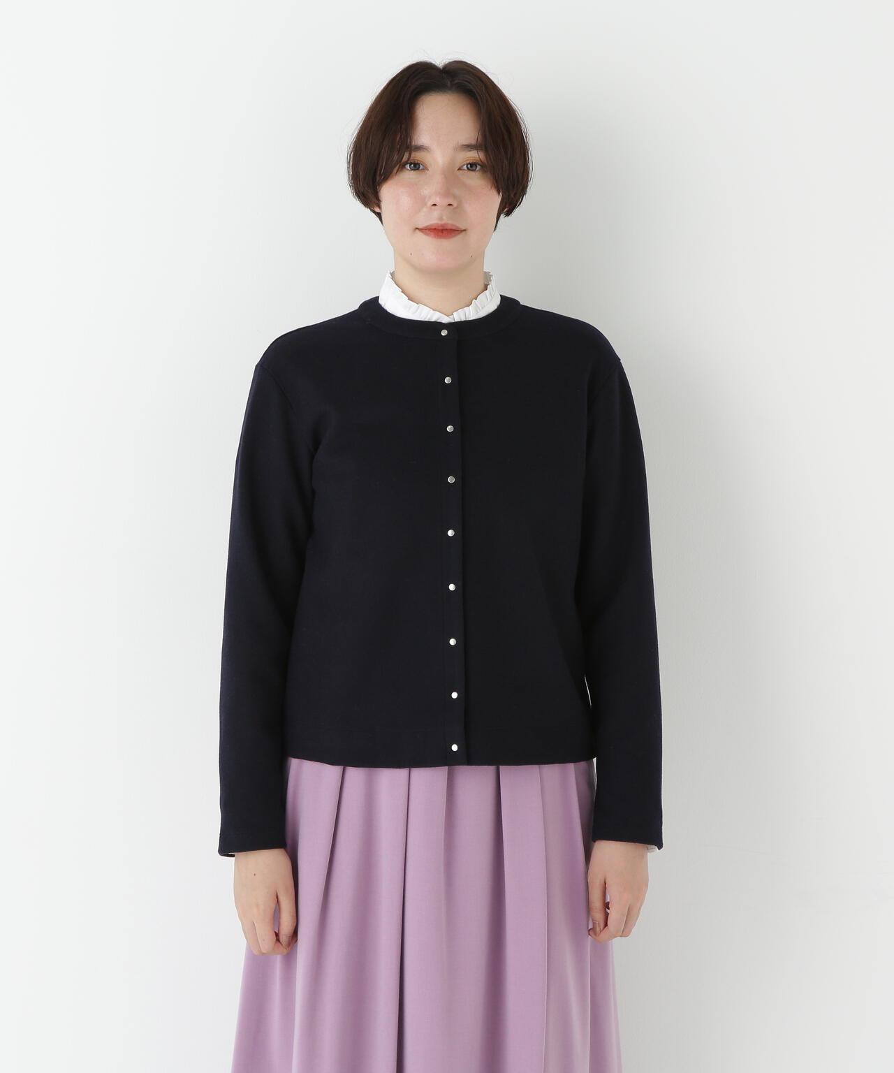 這款開襟羊毛衫是一款易穿的圓領開襟羊毛衫,採用小圓點紐扣設計。面料由壓縮羊毛針織物製成,表面採用棉和人造絲,消除了刺痛感,再現了輕盈透氣的感覺。這種面料可以在家手洗。有五種顏色可供選擇:黑色、咖啡色、摩卡色、海軍藍和鼠尾草色。這款簡潔的開襟羊毛衫可搭配各種下裝,不僅是日常穿著的理想選擇,也是辦公室休閒裝的理想選擇。它不僅可以當斗篷穿,還可以繫上紐扣當套頭衫穿。