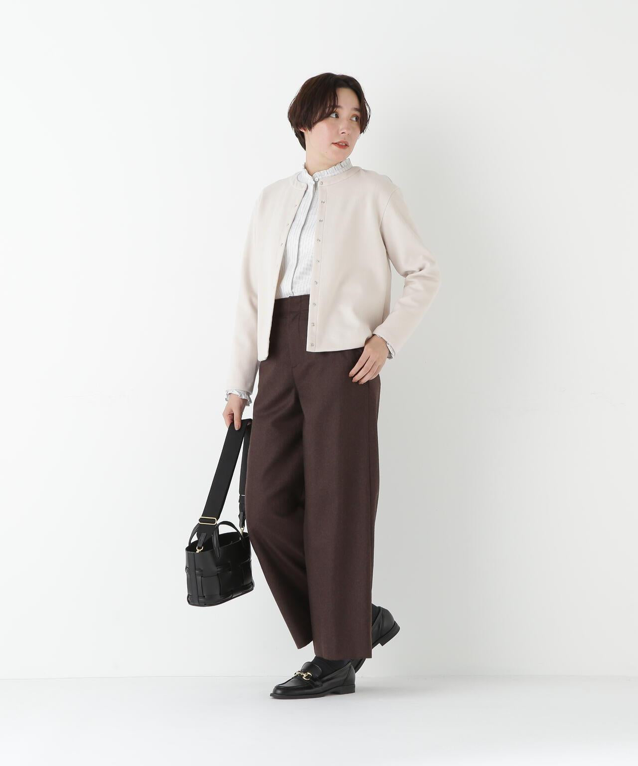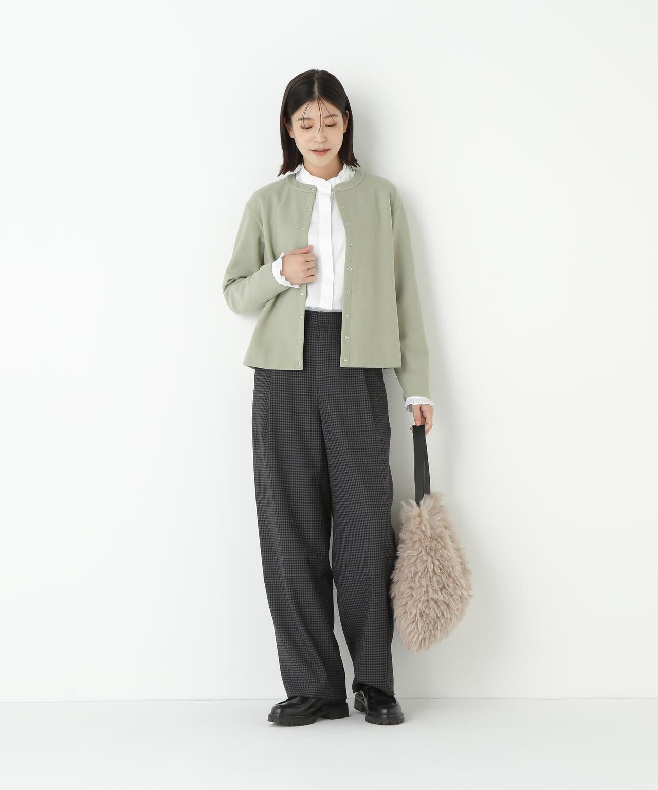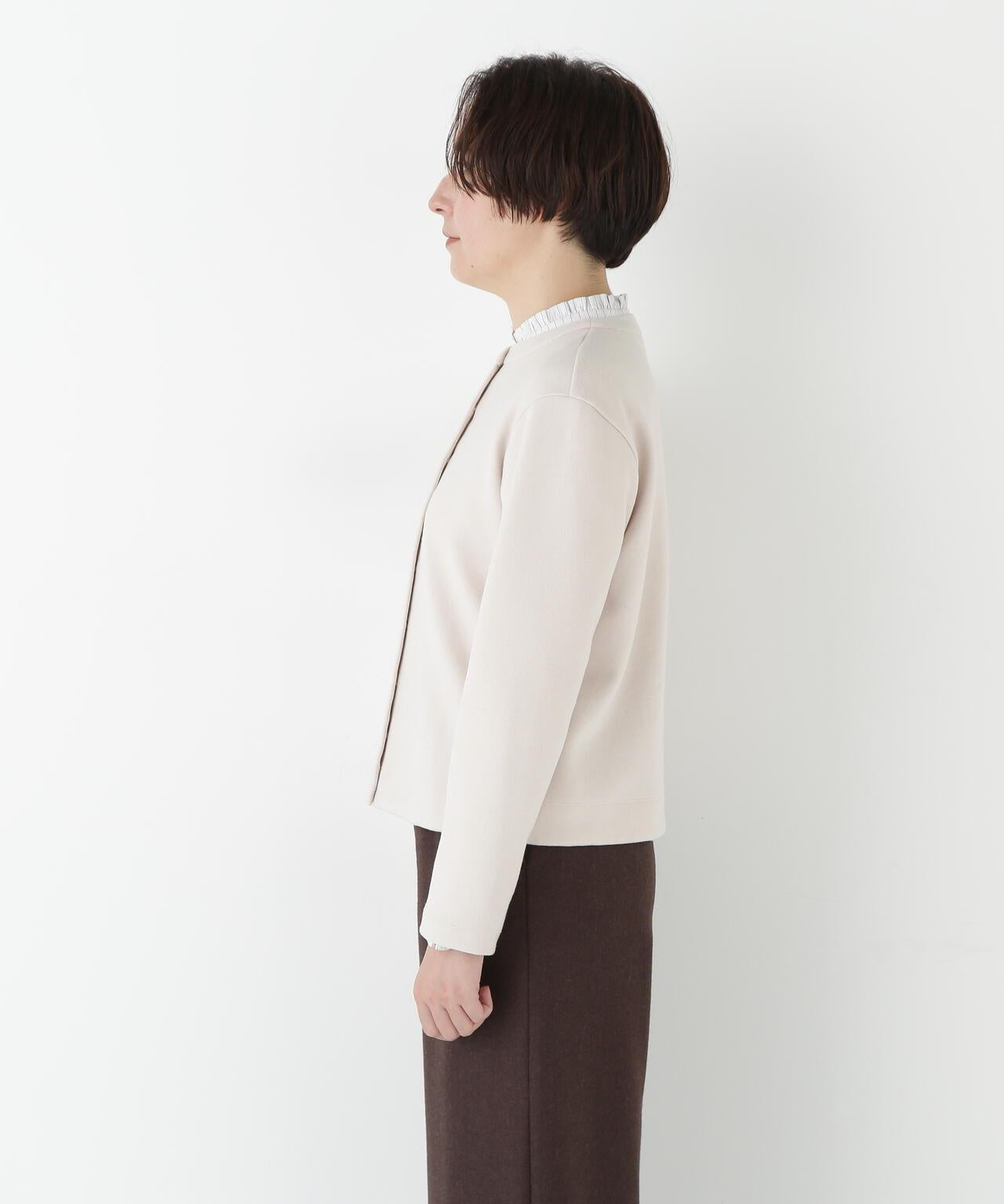 這款開襟羊毛衫是一款易穿的圓領開襟羊毛衫,採用小圓點紐扣設計。面料由壓縮羊毛針織物製成,表面採用棉和人造絲,消除了刺痛感,再現了輕盈透氣的感覺。這種面料可以在家手洗。有五種顏色可供選擇:黑色、咖啡色、摩卡色、海軍藍和鼠尾草色。這款簡潔的開襟羊毛衫可搭配各種下裝,不僅是日常穿著的理想選擇,也是辦公室休閒裝的理想選擇。它不僅可以當斗篷穿,還可以繫上紐扣當套頭衫穿。