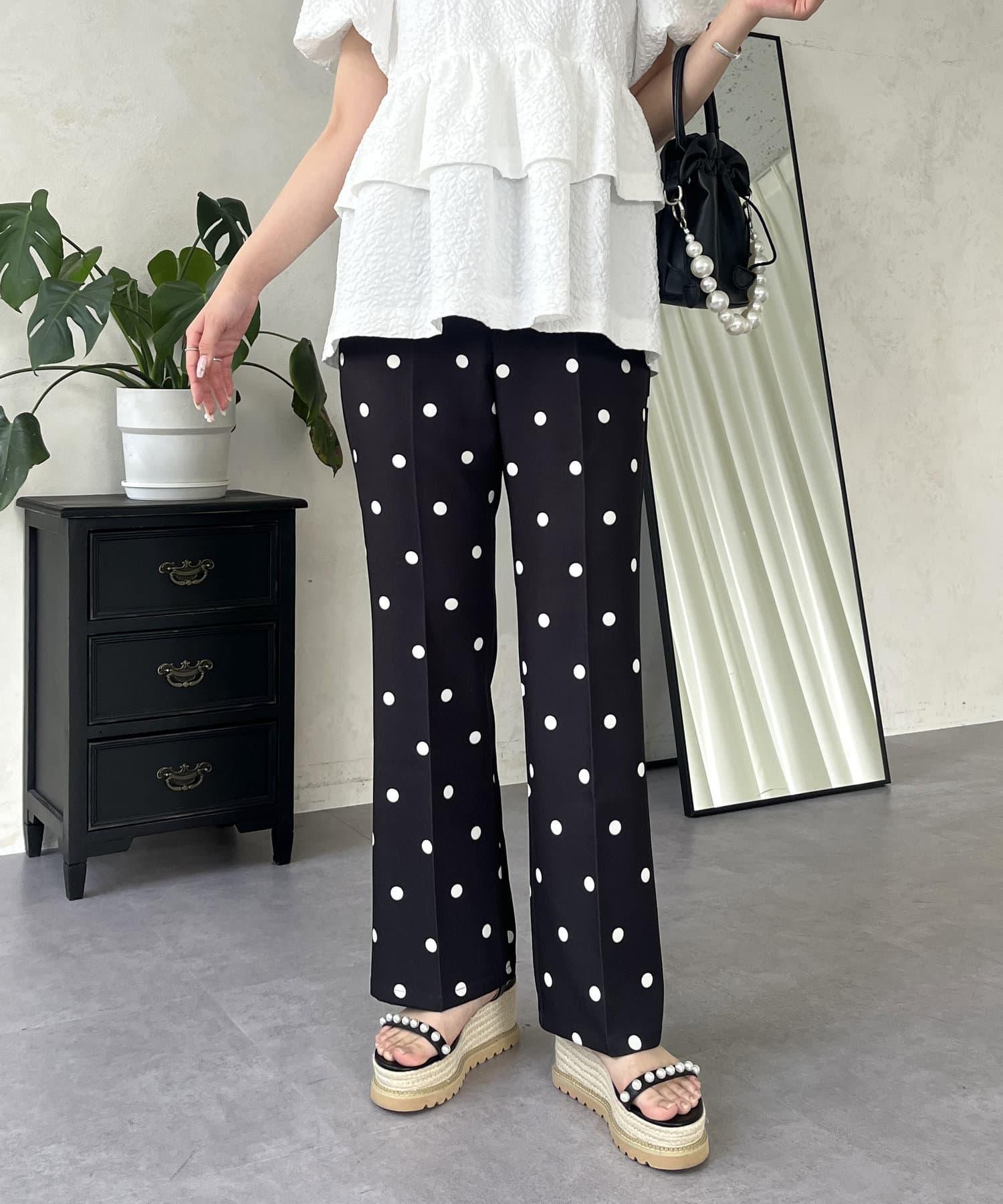 小圓點長褲是突出搭配的完美選擇。