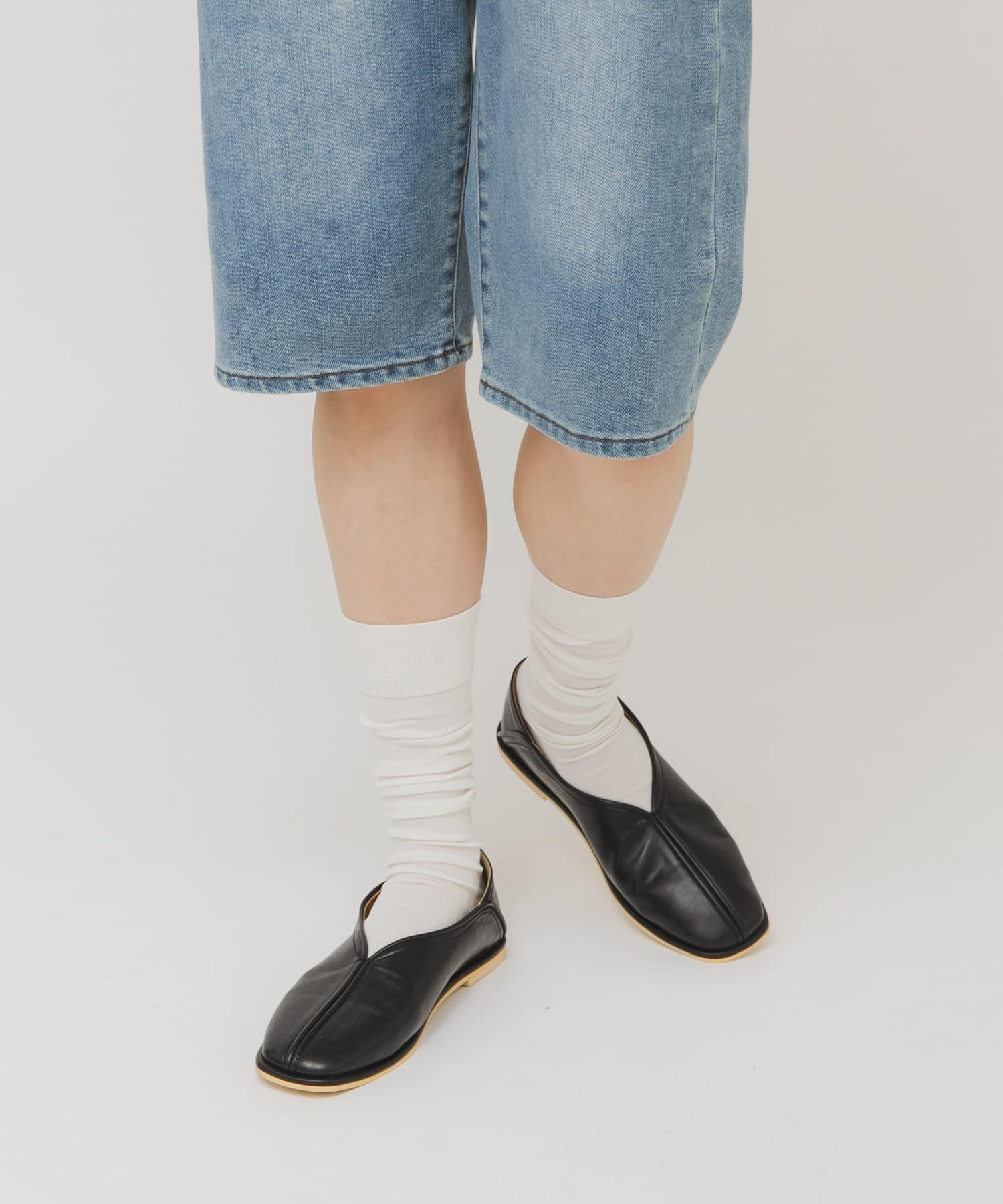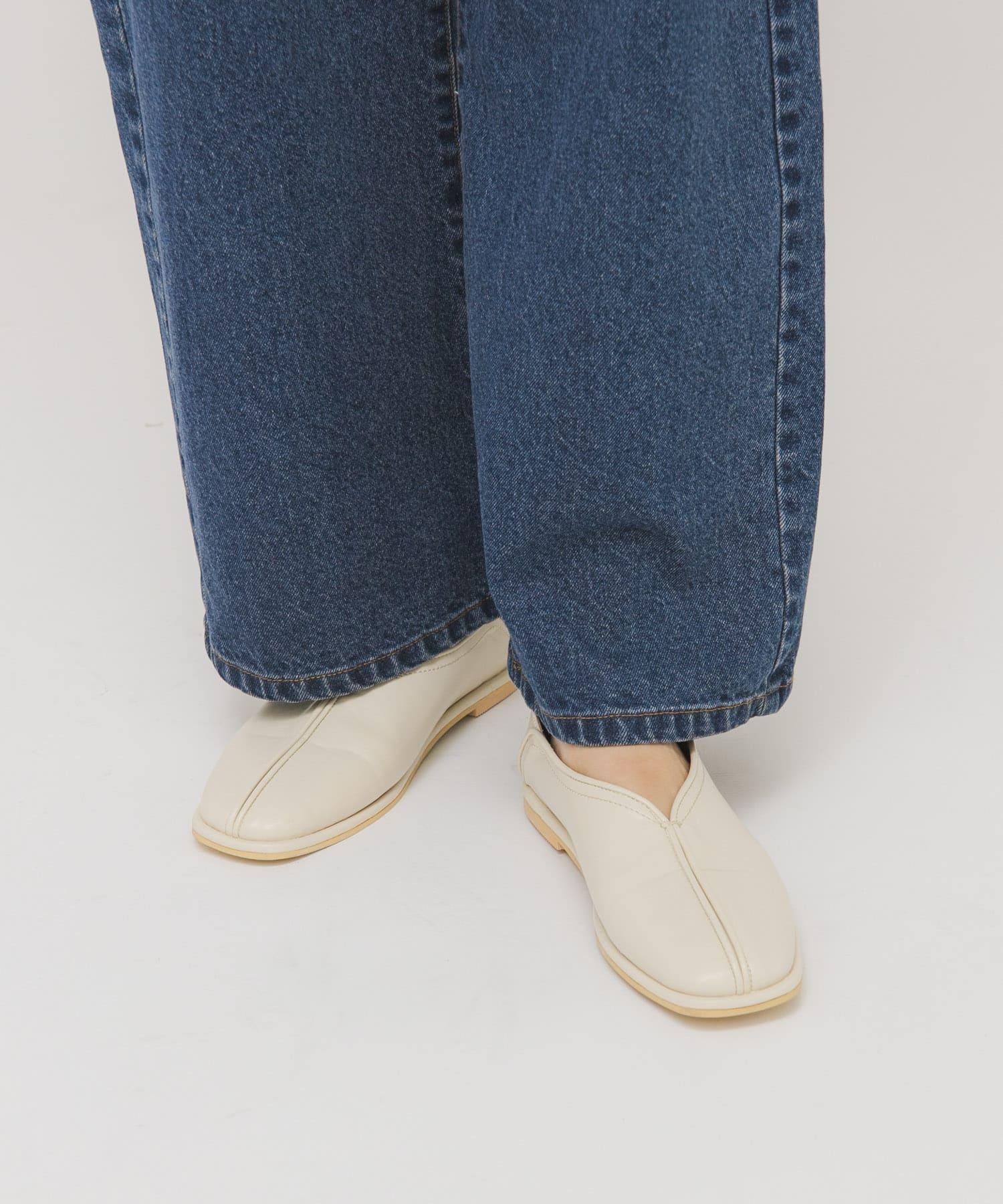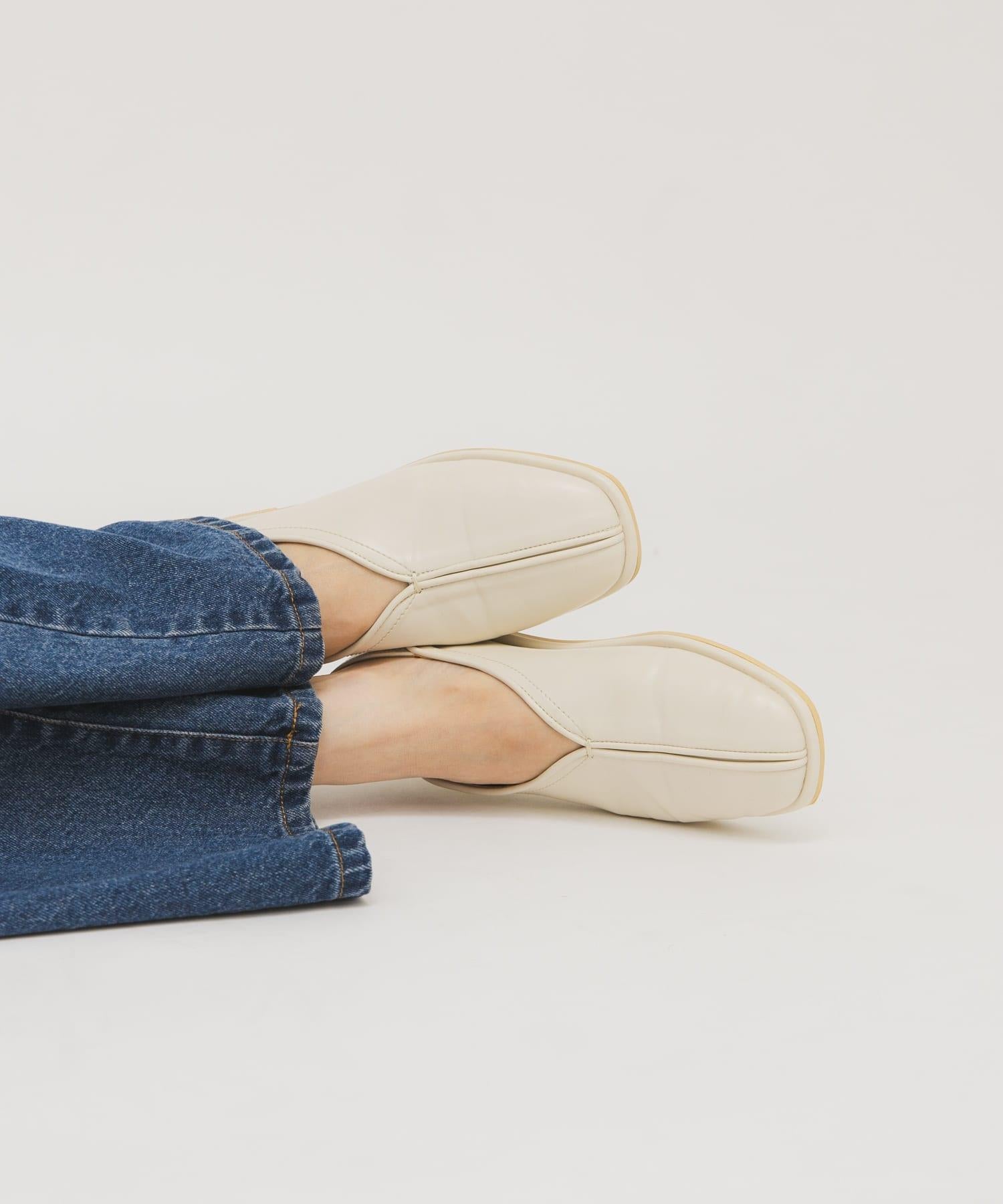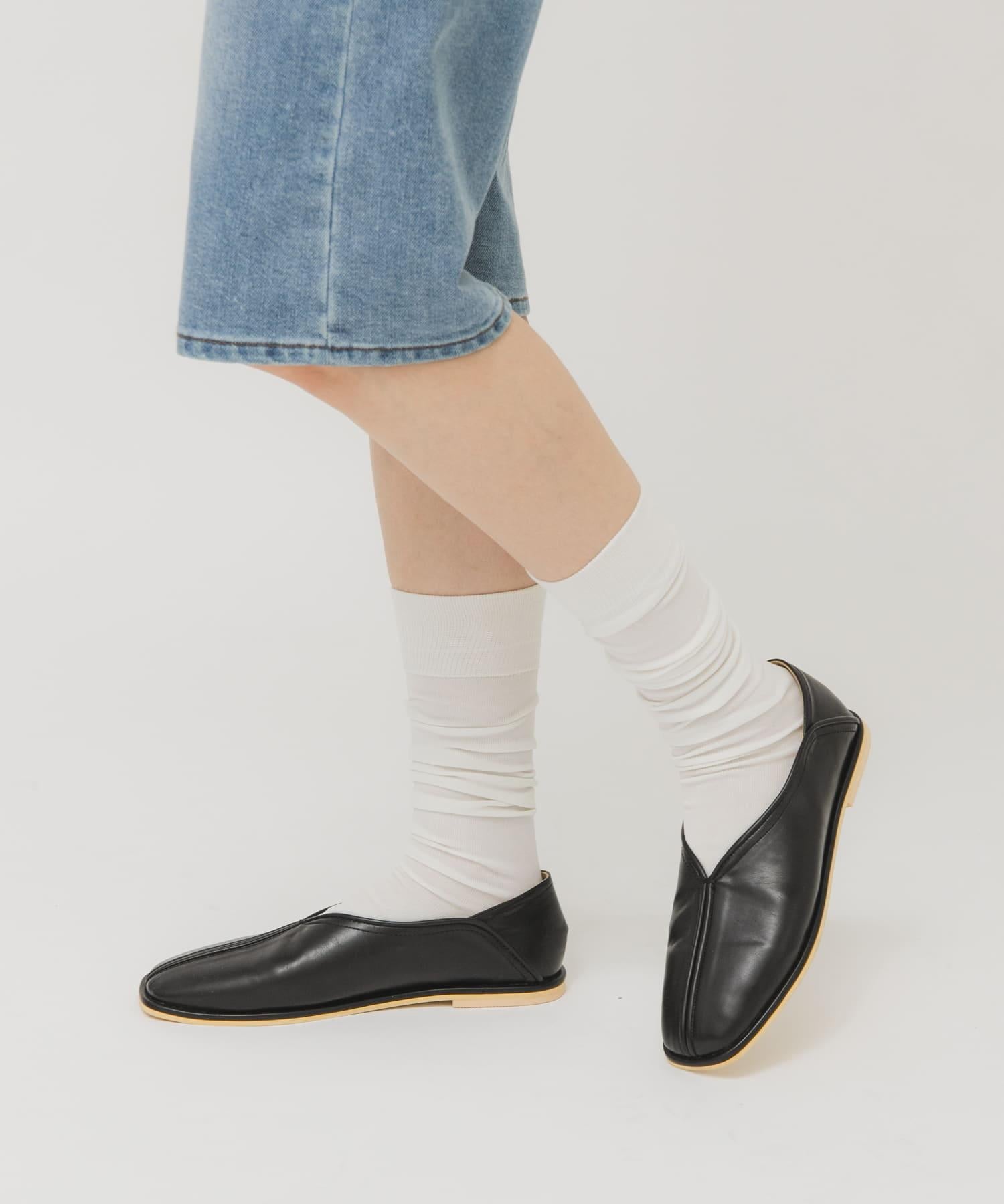 中縫設計的平底鞋。這款平底鞋乍一看很簡單,但從鞋口連接到中心的球形接縫邊緣卻給它帶來了立體效果。鞋跟的設計讓人忍不住想踩上去,柔軟的面料也是一個不錯的亮點。這是一雙易於搭配各種造型的鞋子。