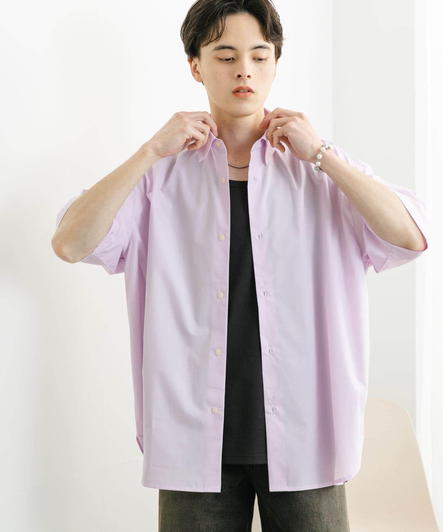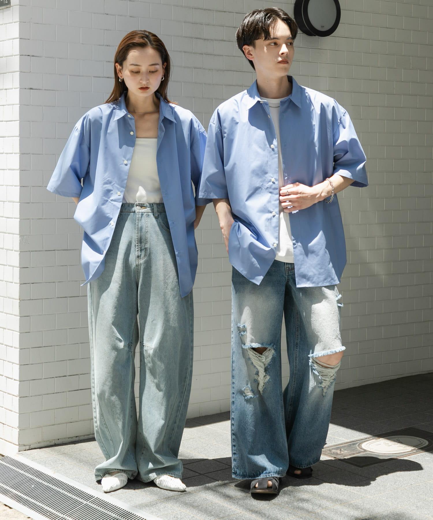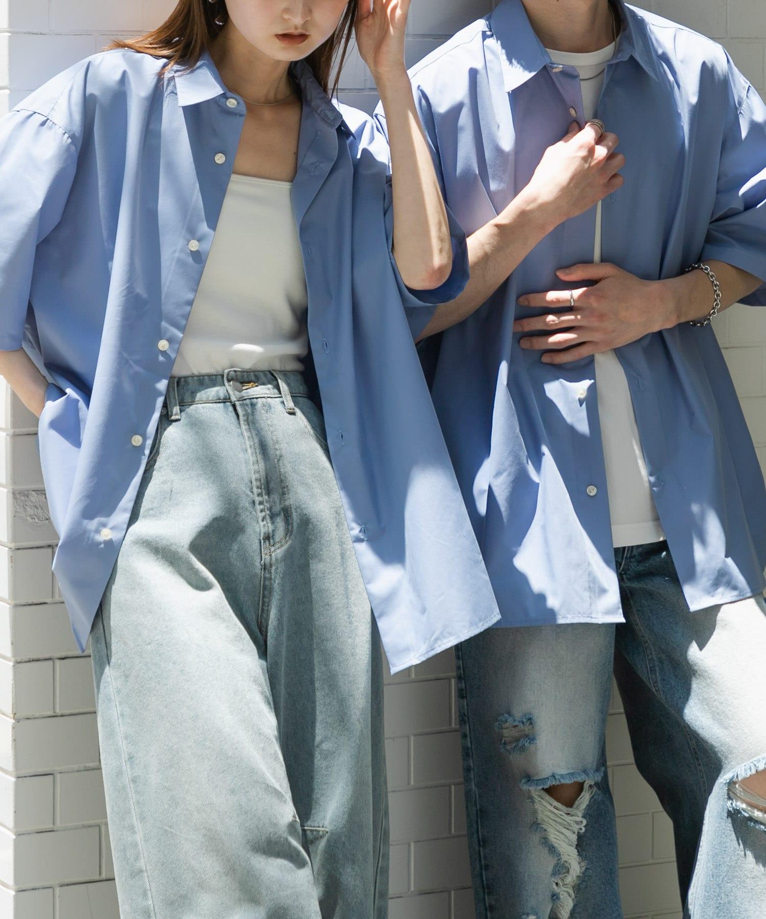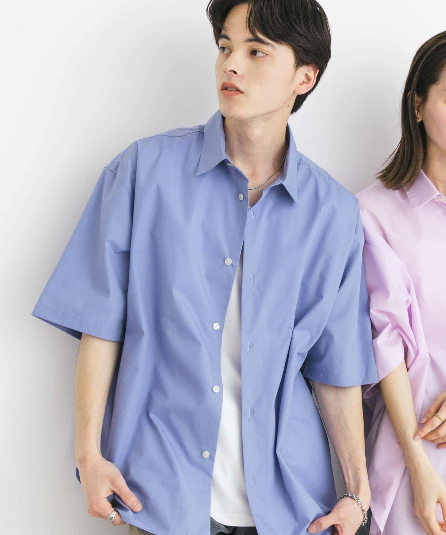 中性寬鬆版常規領短袖襯衫