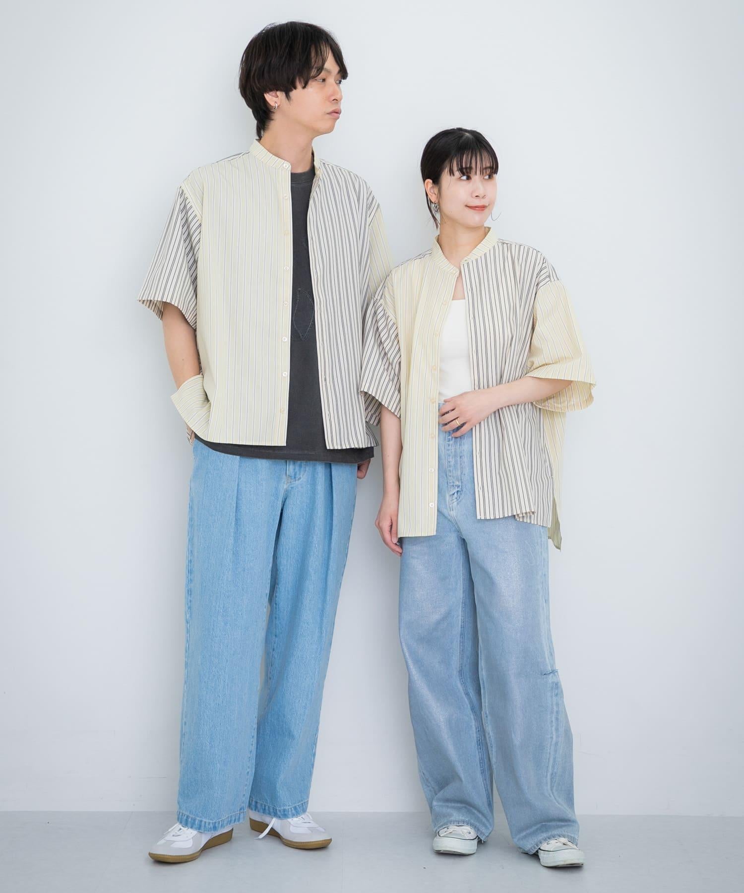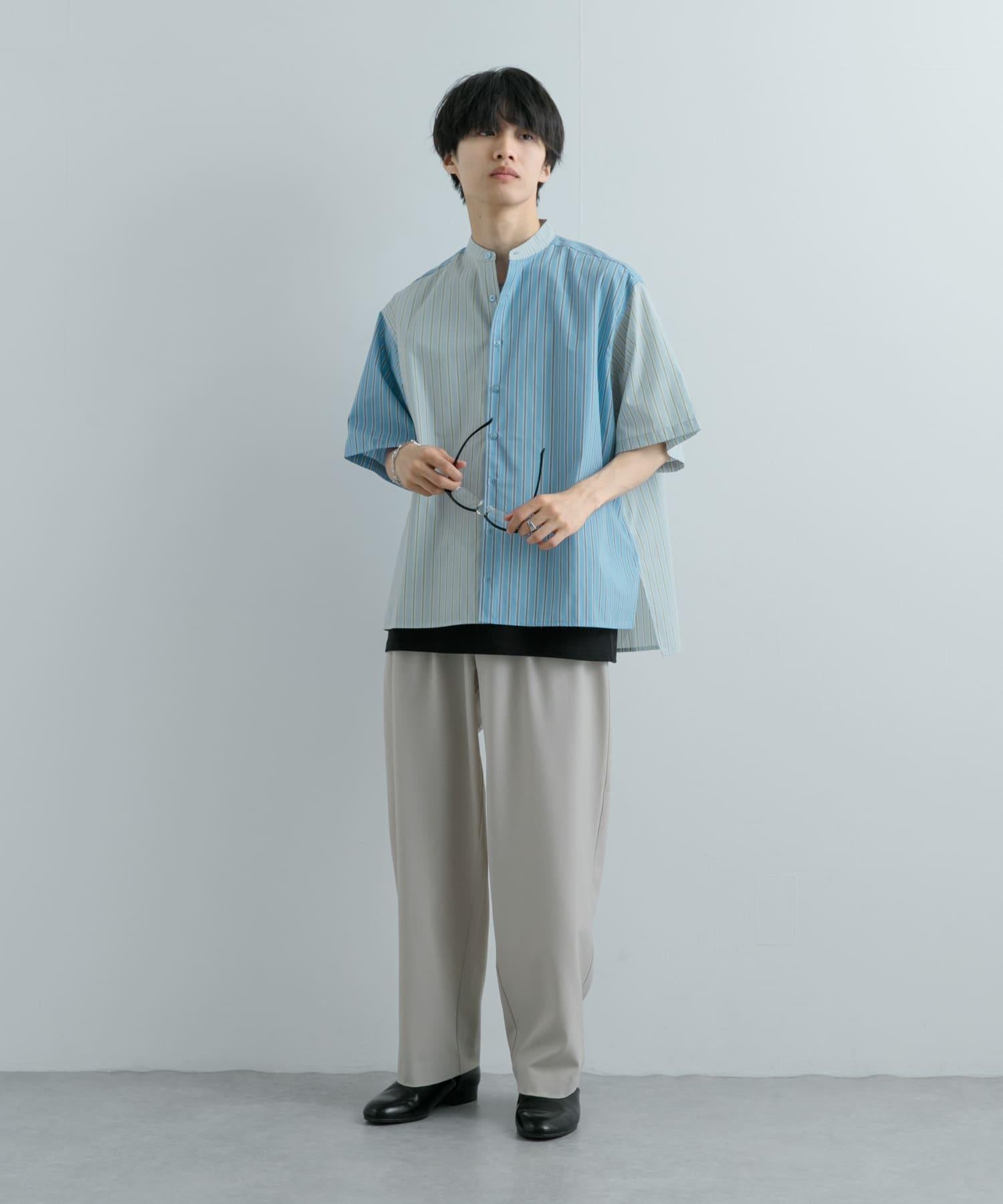 帶狀衣領給人一種乾淨利落的感覺。褲子可搭配漂亮的休閒褲和靛藍色牛仔褲。