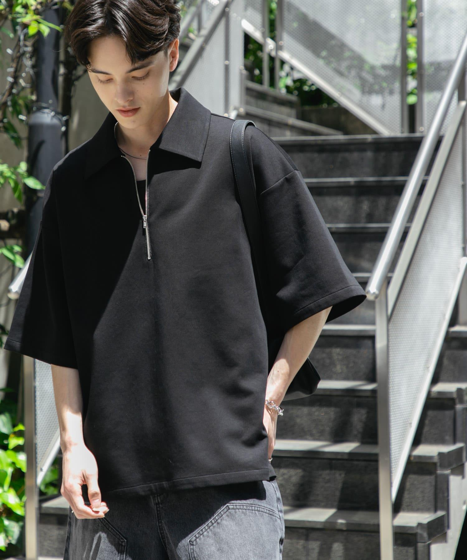 中性款高彈力半拉鍊短袖T恤