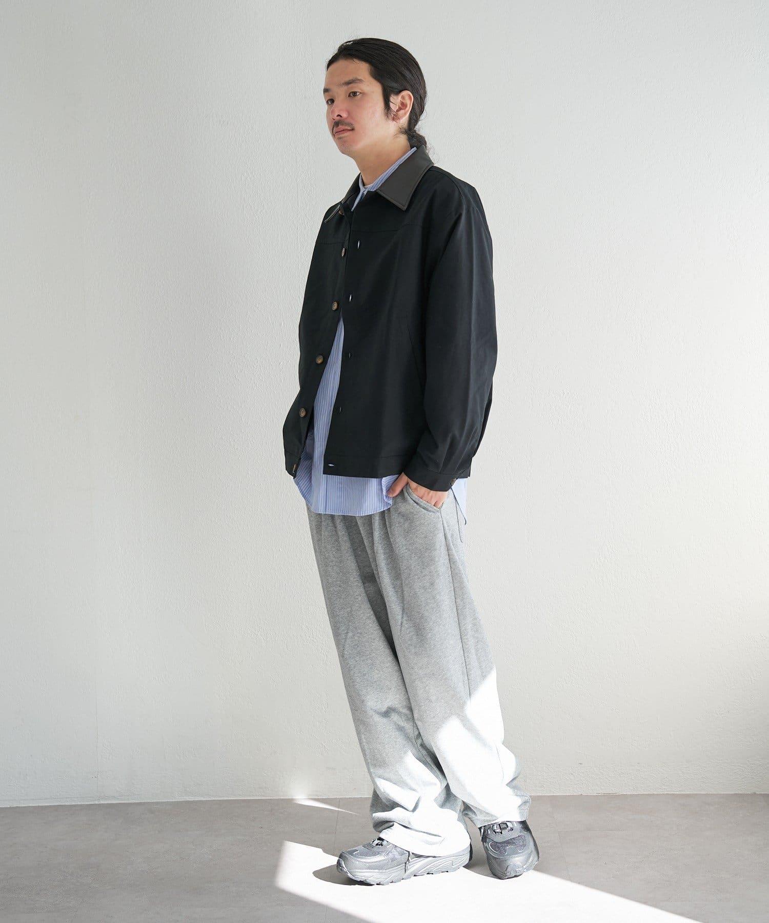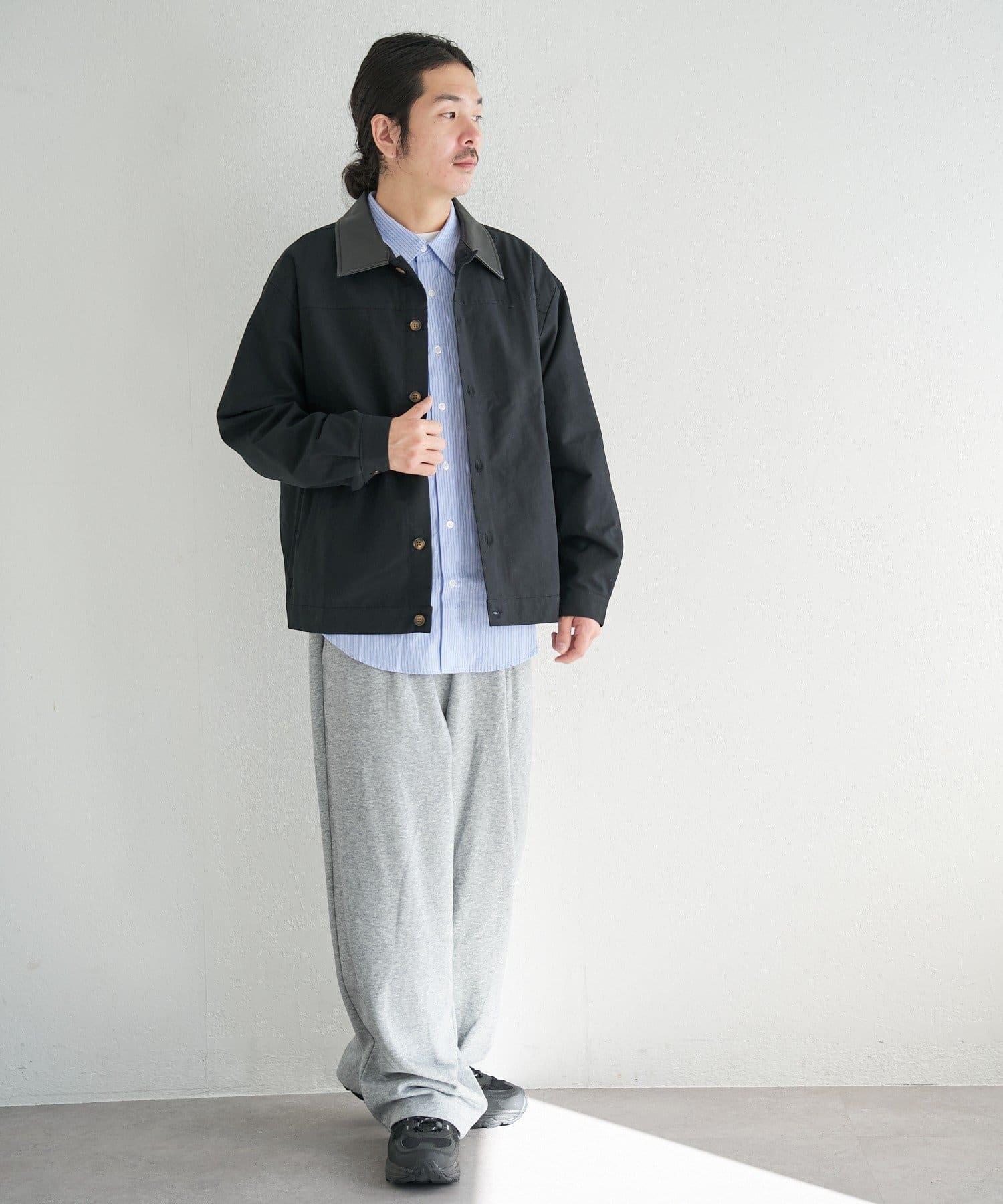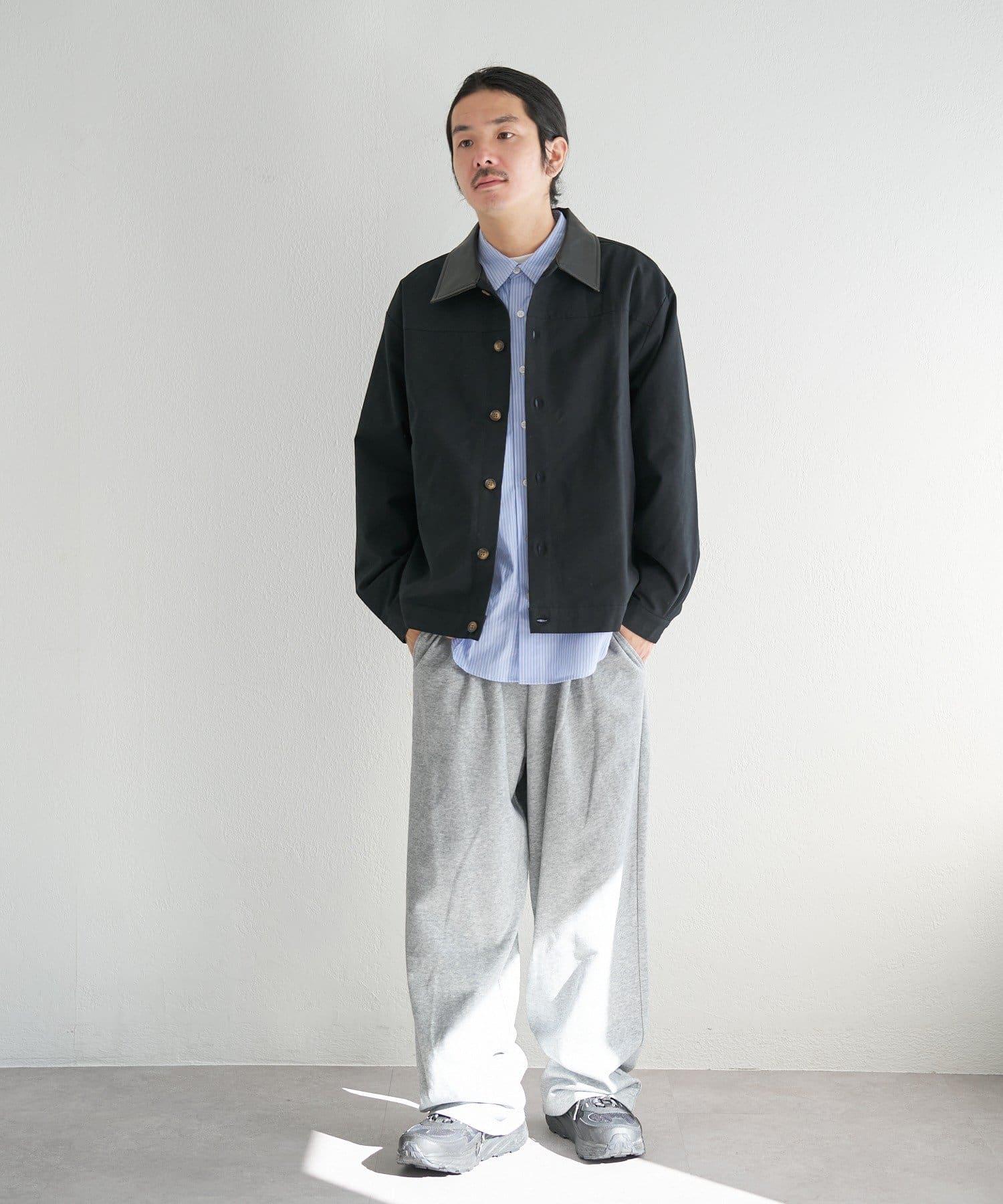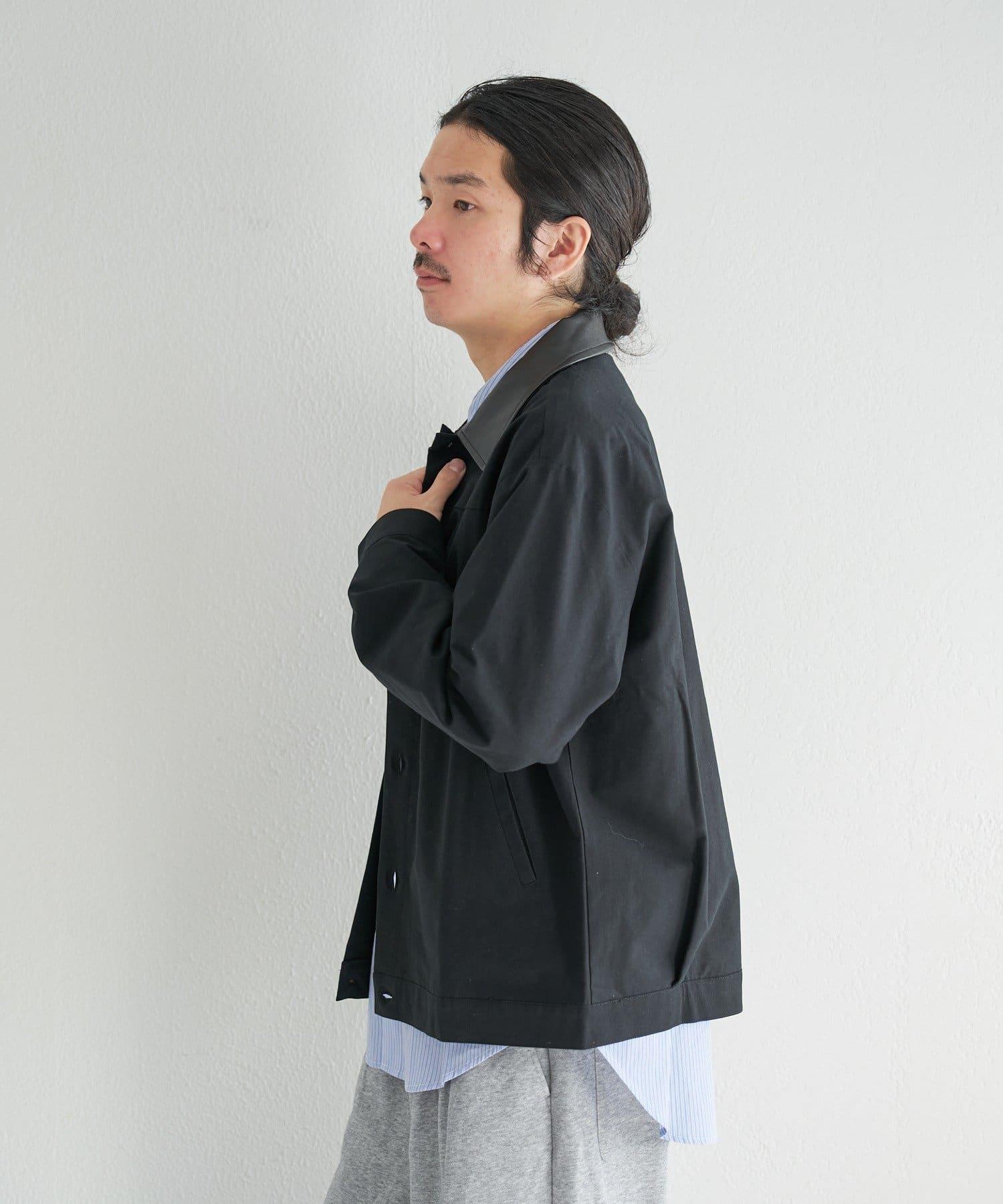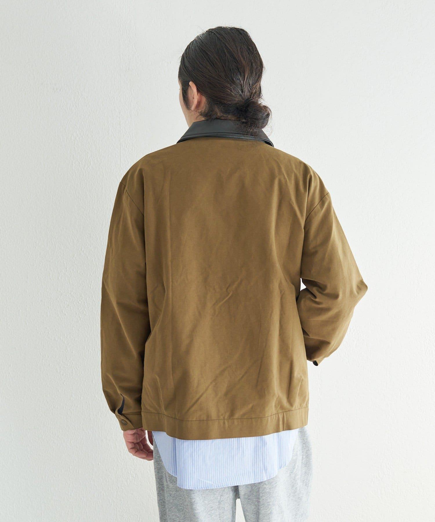 不同材質的設計,將罩衫與仿皮材質衣領相結合