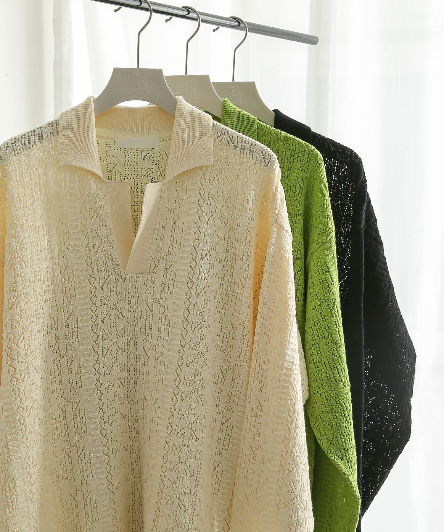 中性蕾絲針織POLO衫
