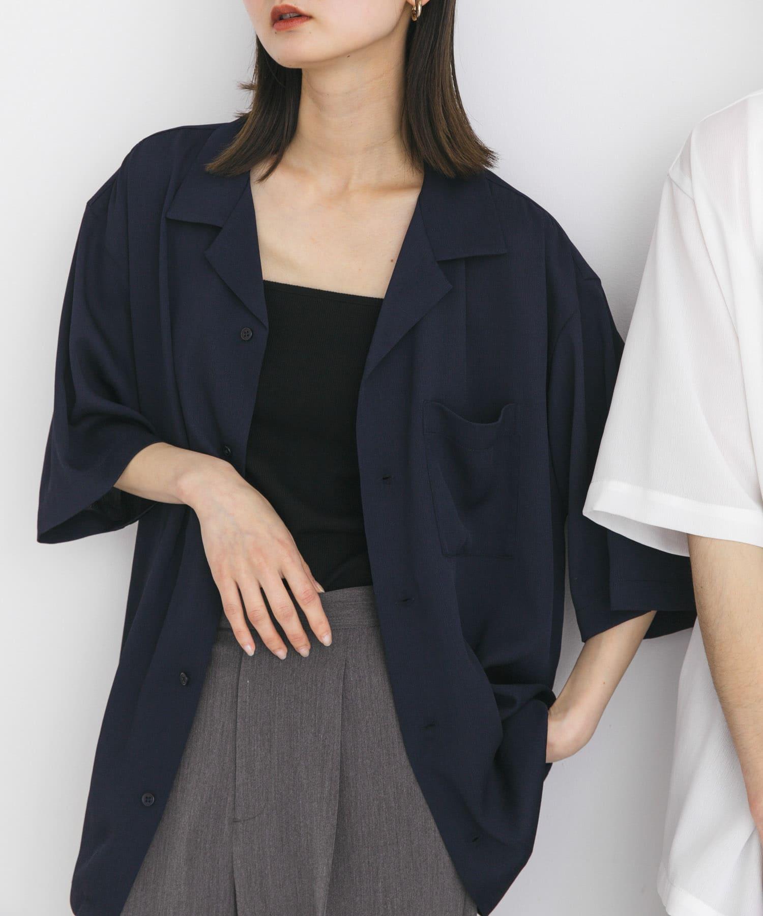 中性透視褶皺開領襯衫